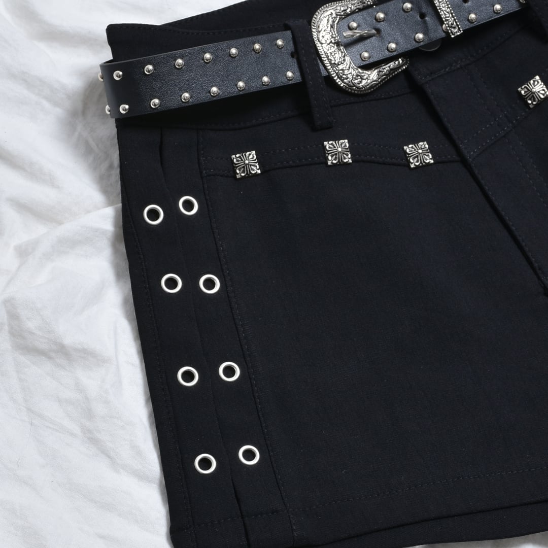 【12/8新着】2点セット★ベルト付きスタッズショートパンツ