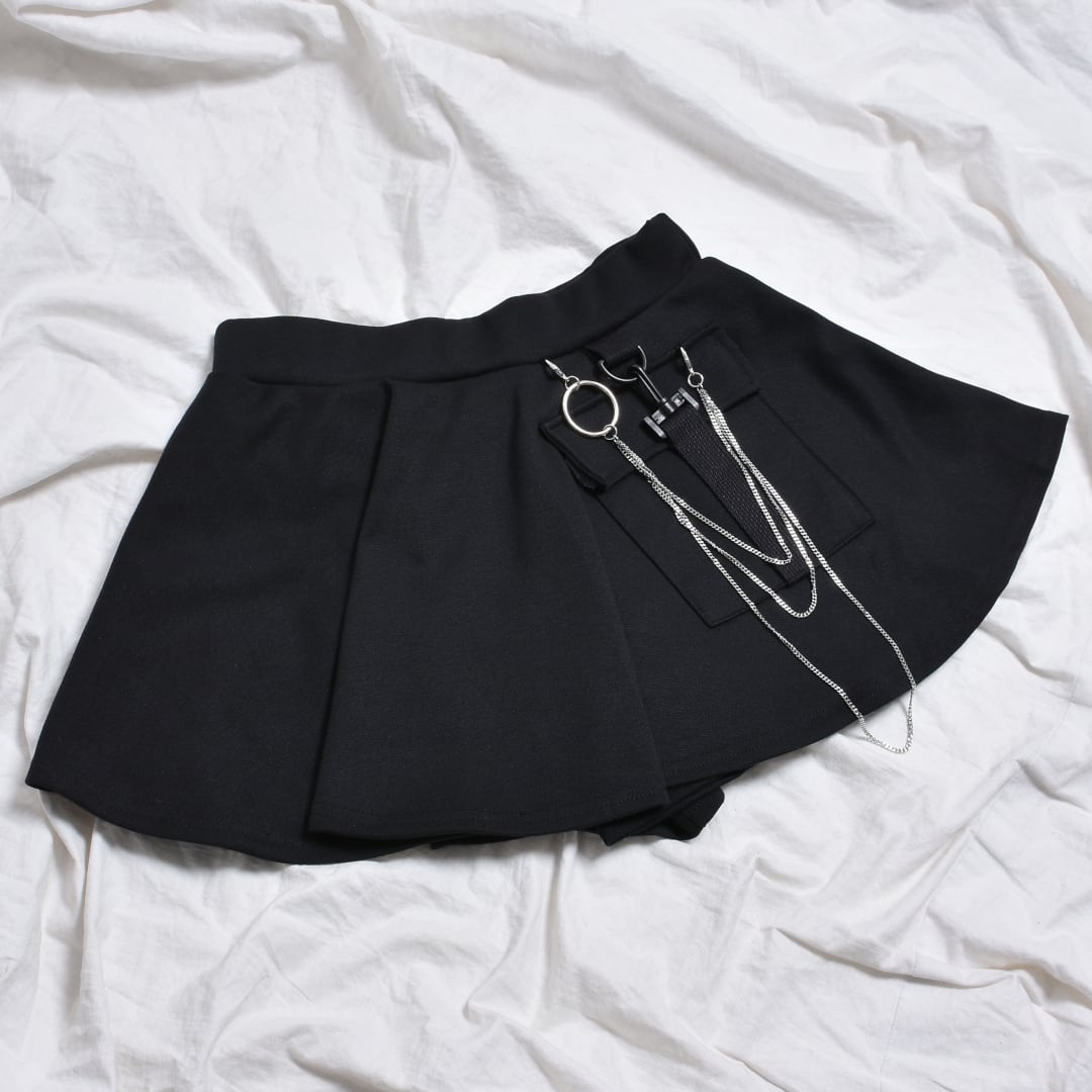 ウエスト:64cm〜 /ヒップ:(スカート)114cm (インナーのショーパン)81cm /総丈:34cm /裾周り:166cm
