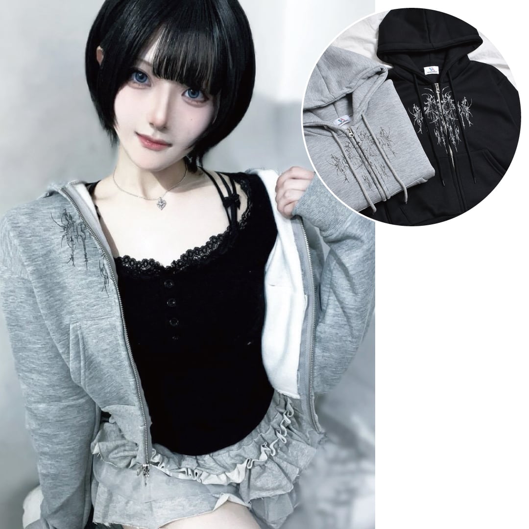 【12/23新着】トライバル ショート丈ZIPパーカー(裏起毛)