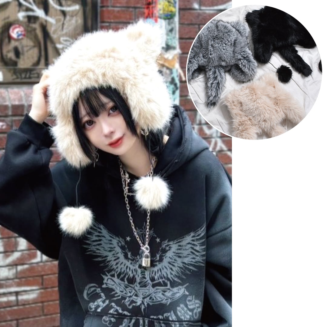 【12/19新着】耳×しっぽ付き フライトファー帽