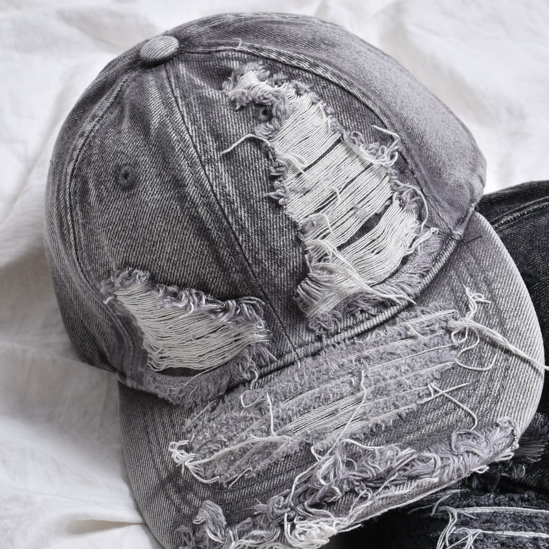 激しいダメージ加工が見る目を奪うデニムキャップ