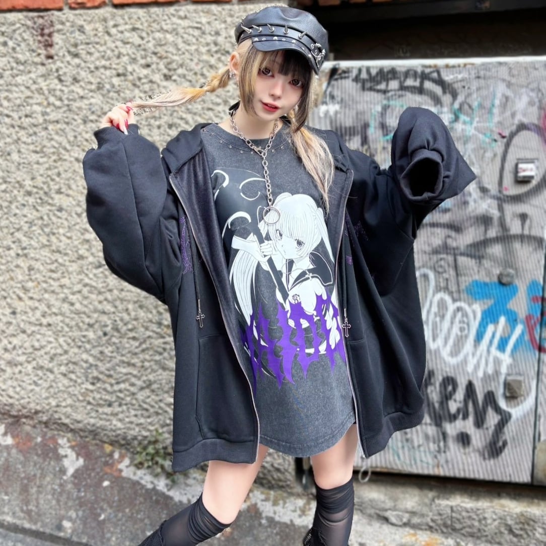 セーラー服を着たサブカルな女の子、ゴシックな雰囲気が印象的。