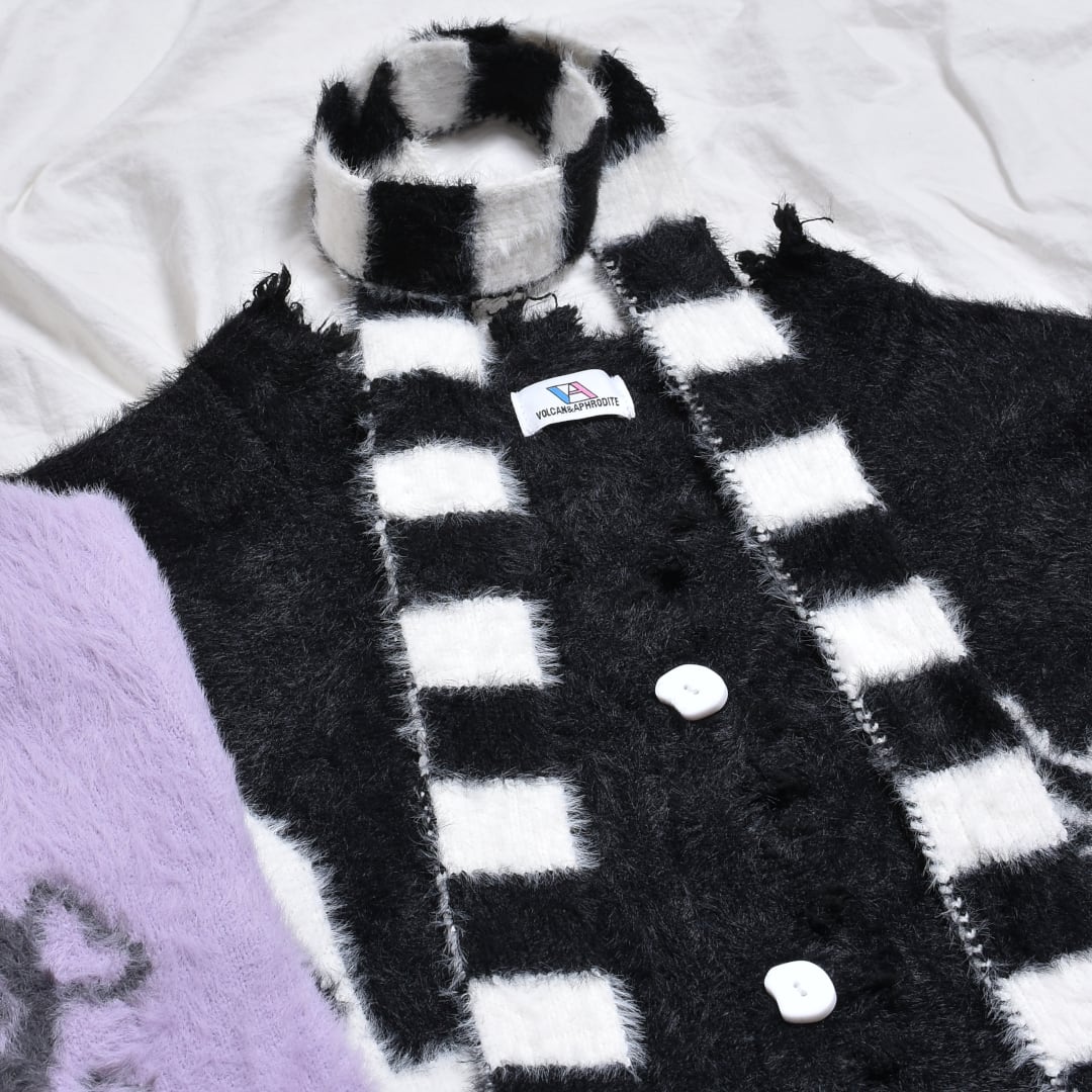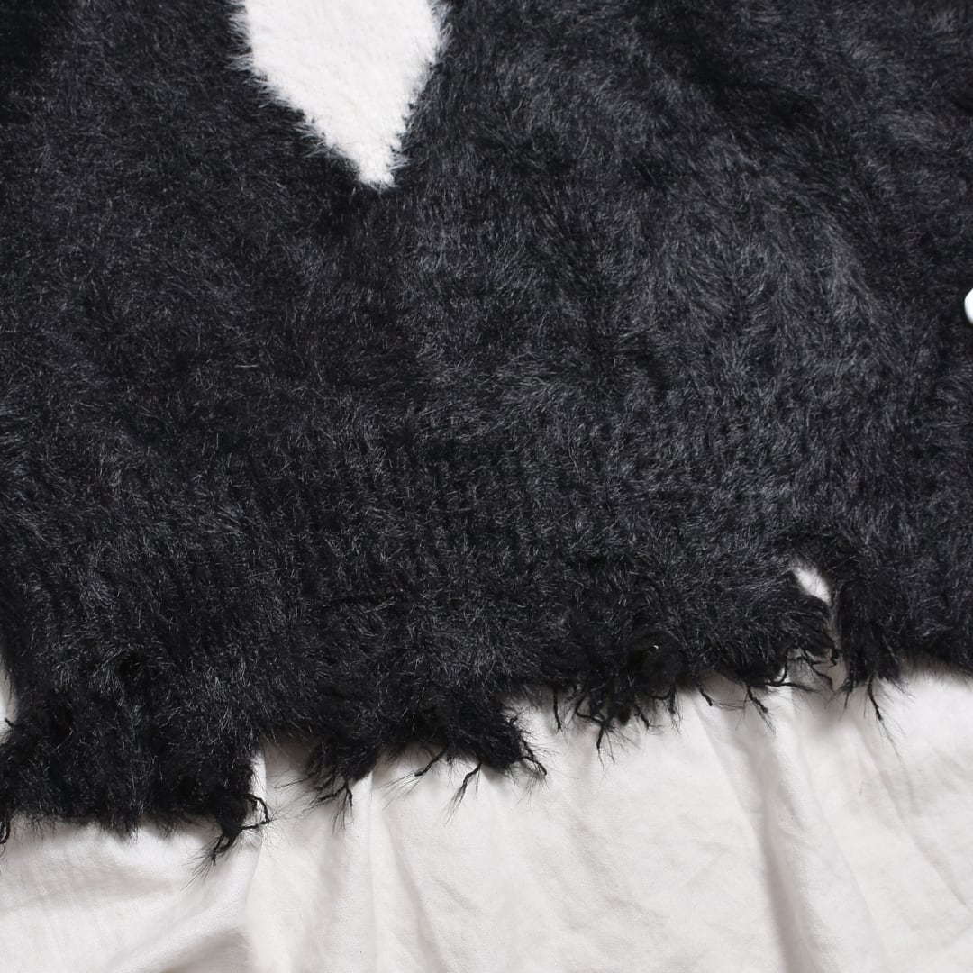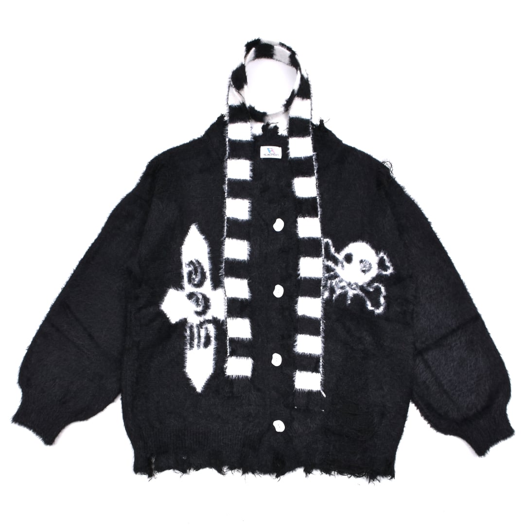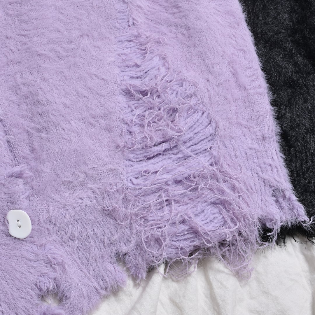 【12/12新着】2点セット★ストール付き ダメージニットカーディガン
