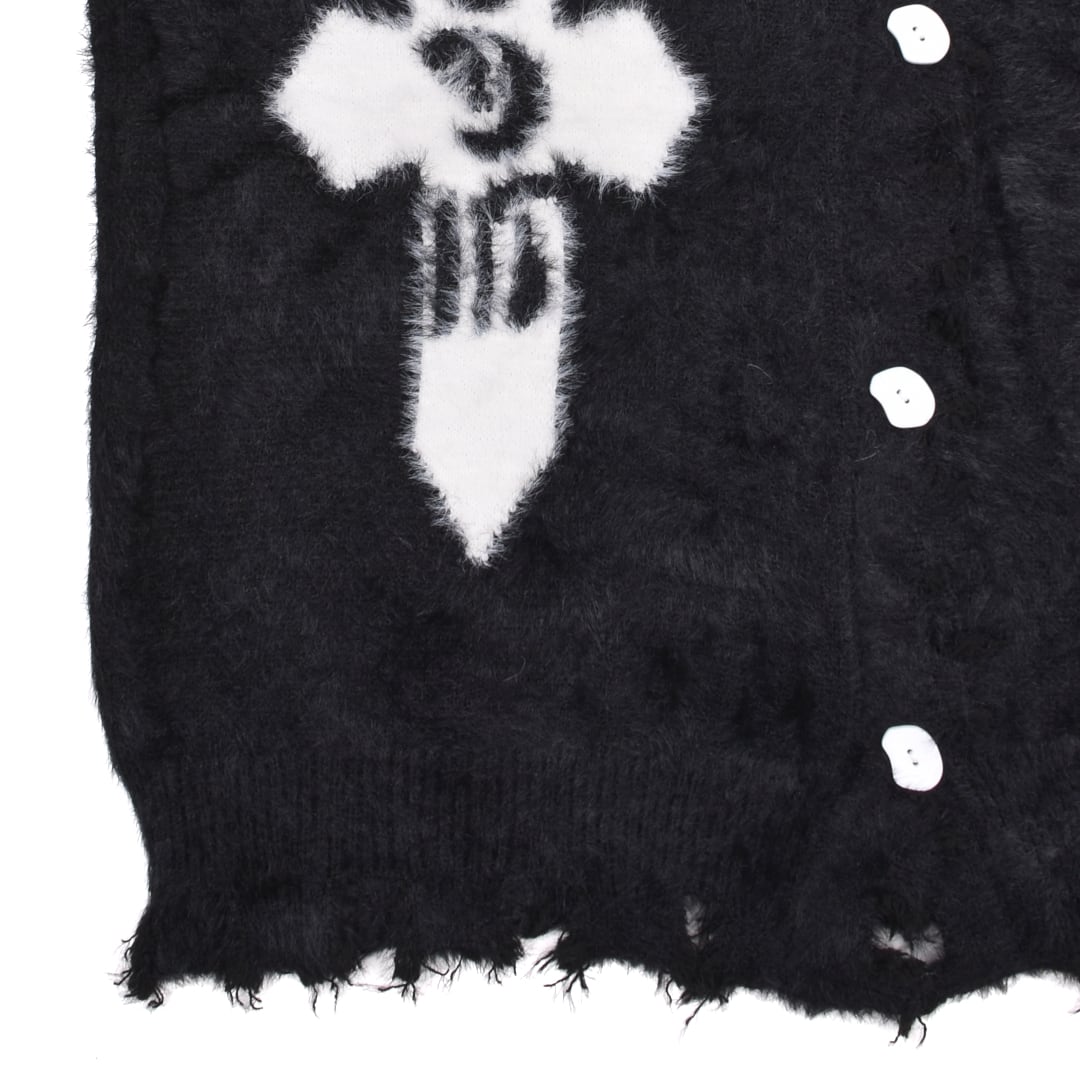 クロスとスカルのPOPなイラスト、いびつなシルエットのボタンなど遊びの効いたデザイン