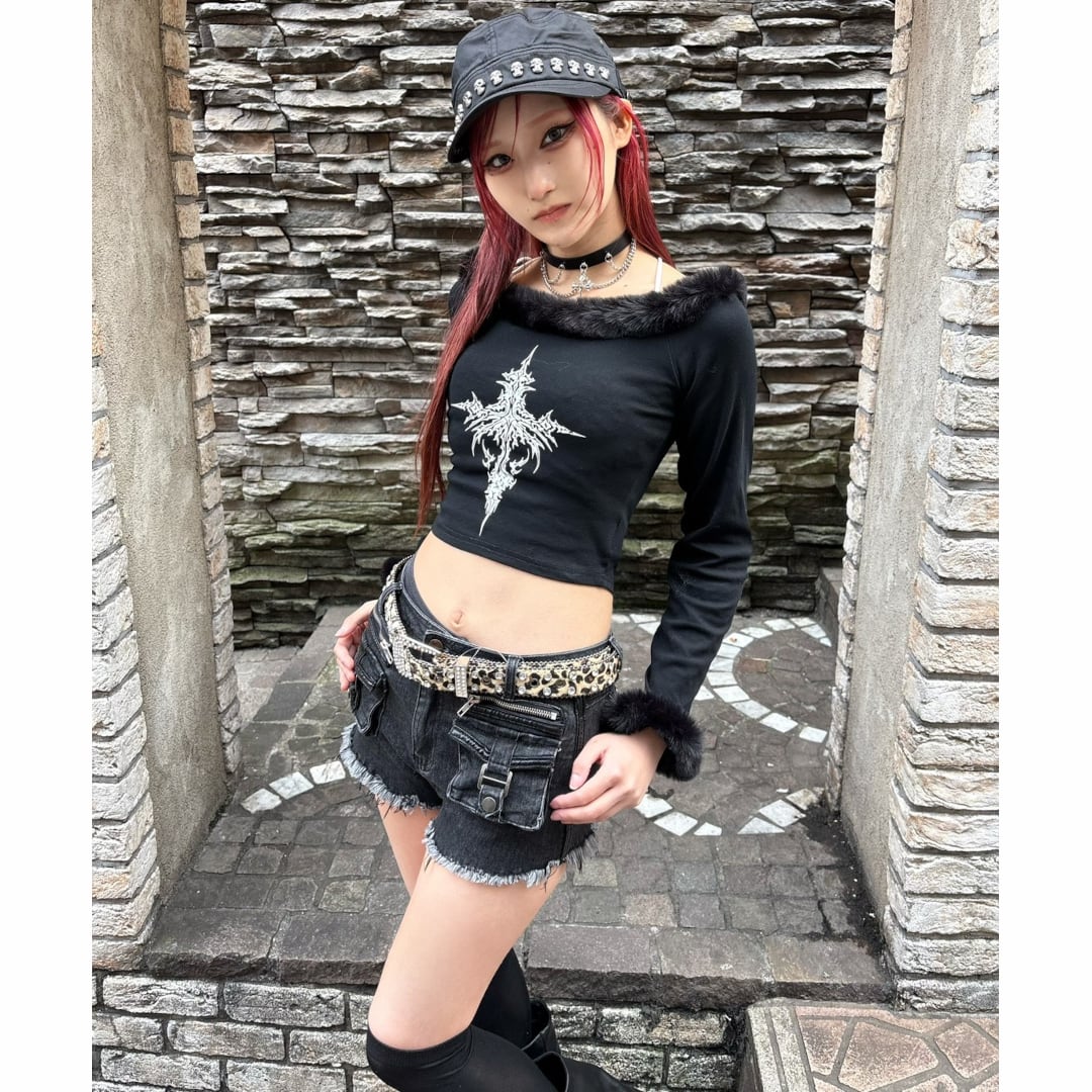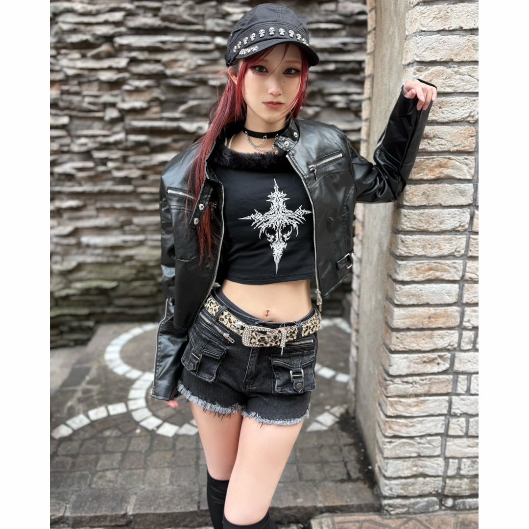 【12/18新着】W ポケット×ZIP ダメージショートデニムパンツ