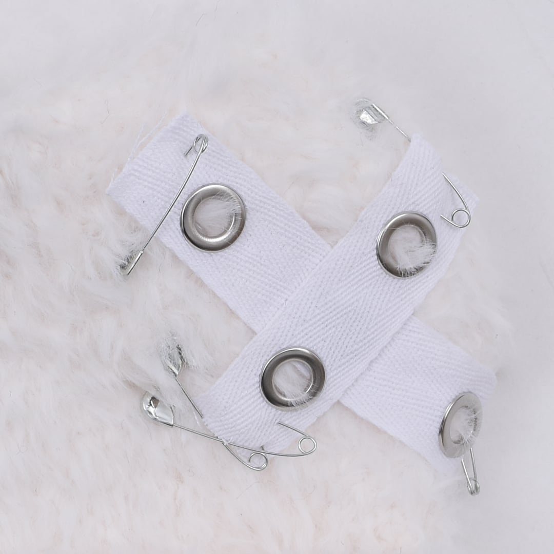 多数の安全ピンやクロスのチャーム、天使の羽をイメージしたモチーフが可愛い。