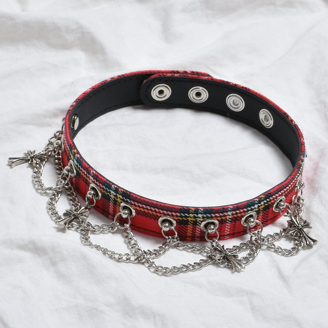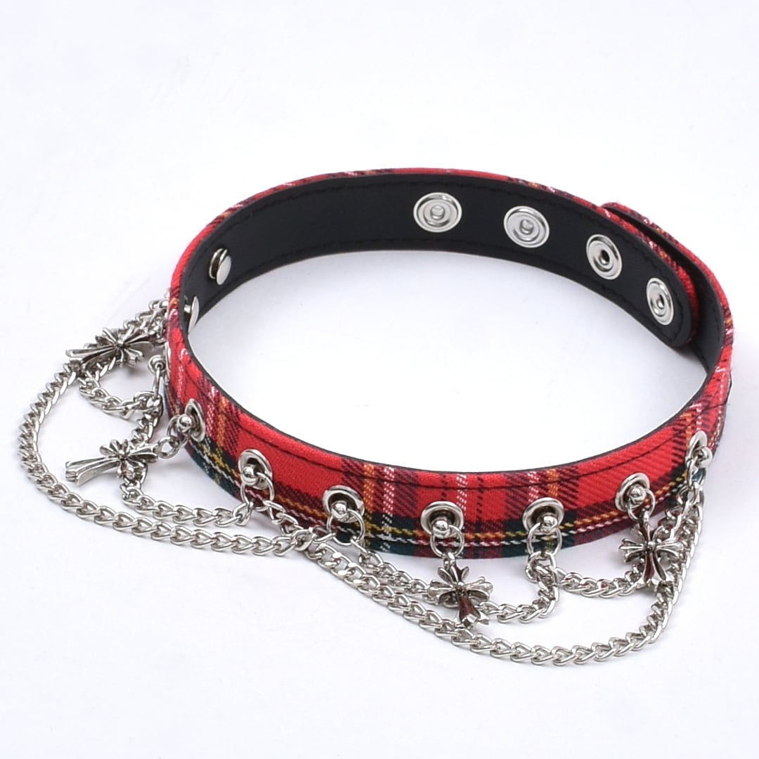 【12/23新着】赤チェック★4クロスチェーンチョーカー