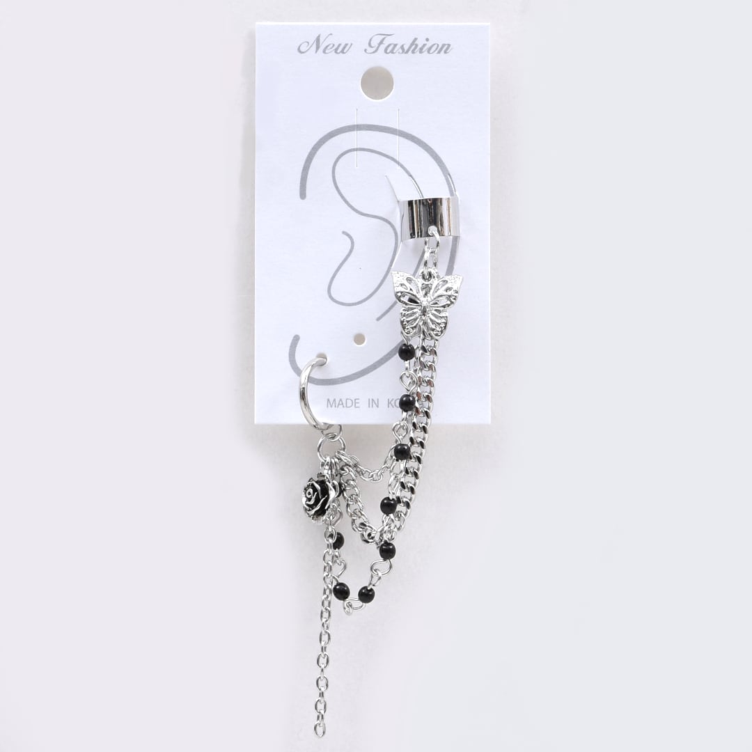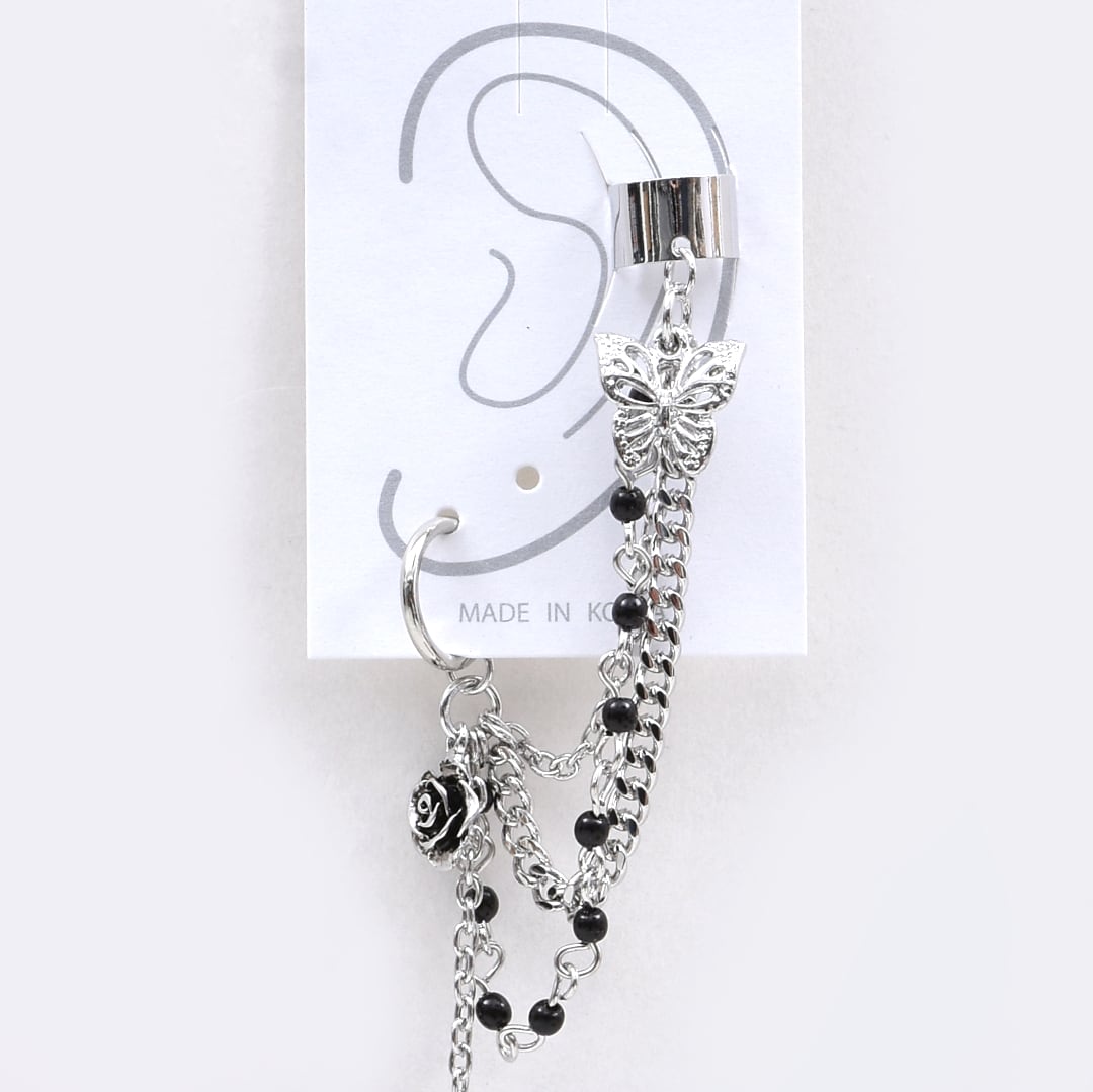 【12/24新着】バタフライ×ローズチェーン イヤカフイヤリング
