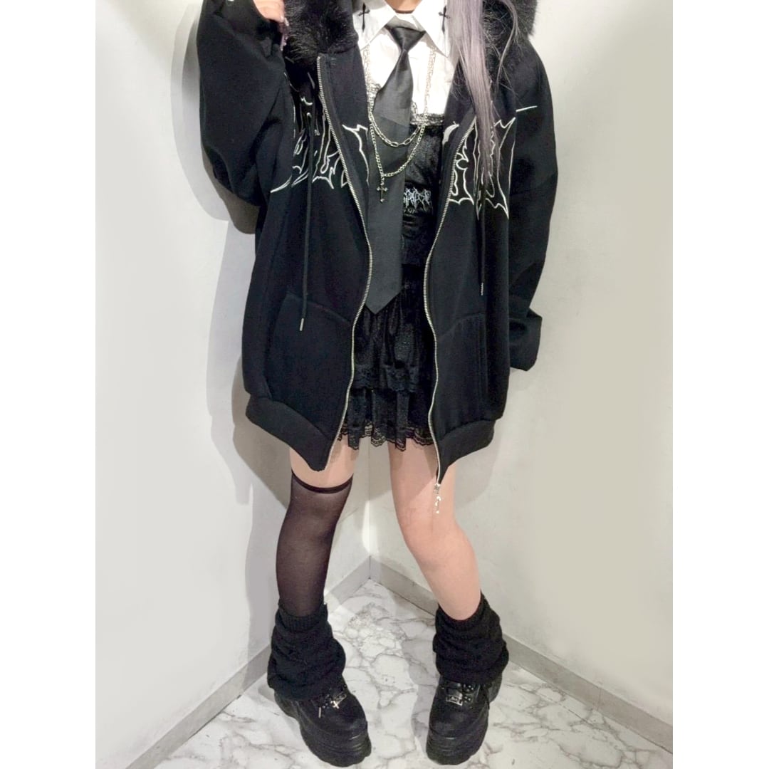 【2/25 完売WHITE再入荷!】新作★メタルクロスフードファーZIPパーカー(裏起毛)