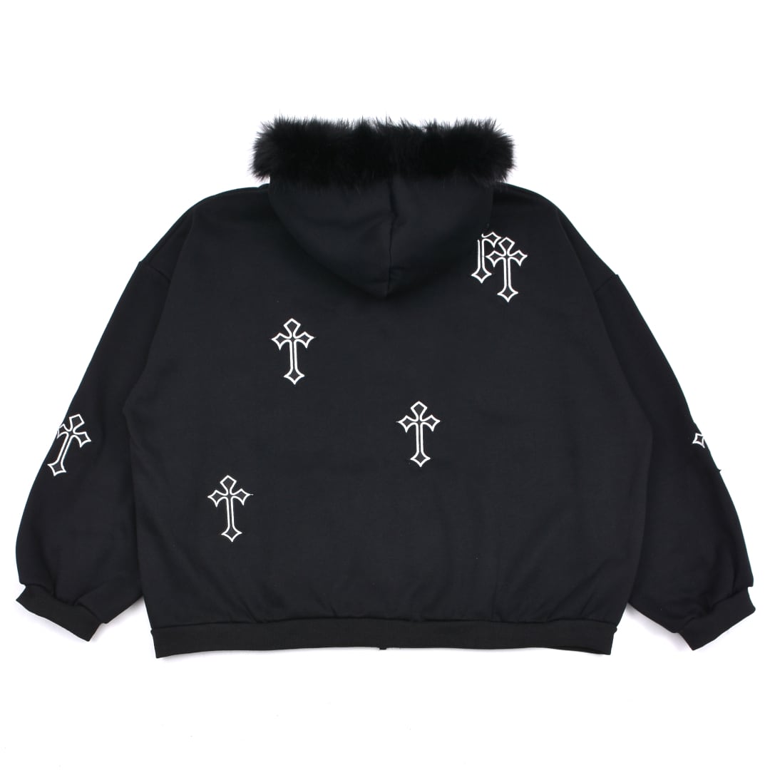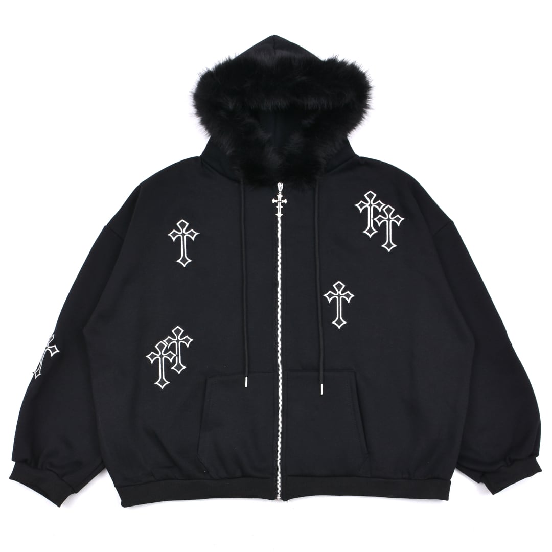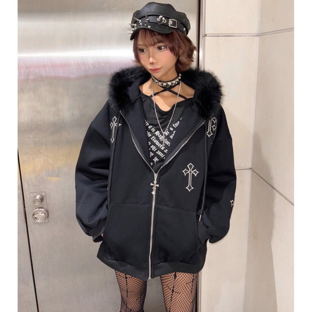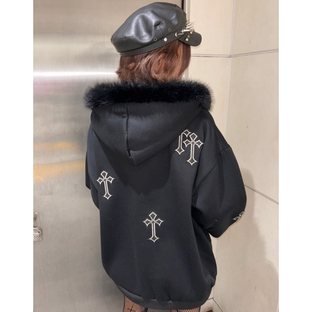 クロスパッチフードファーzipPK◆