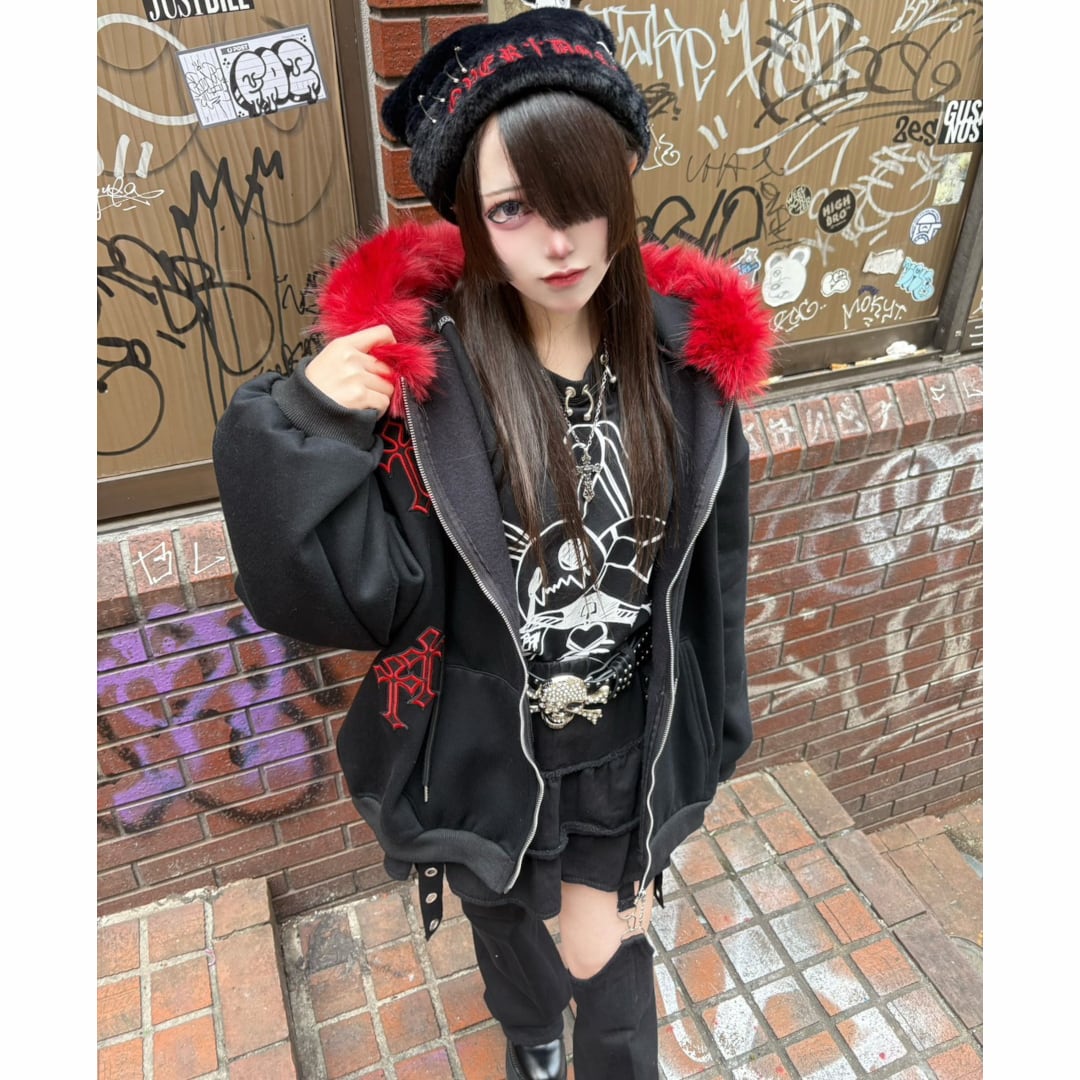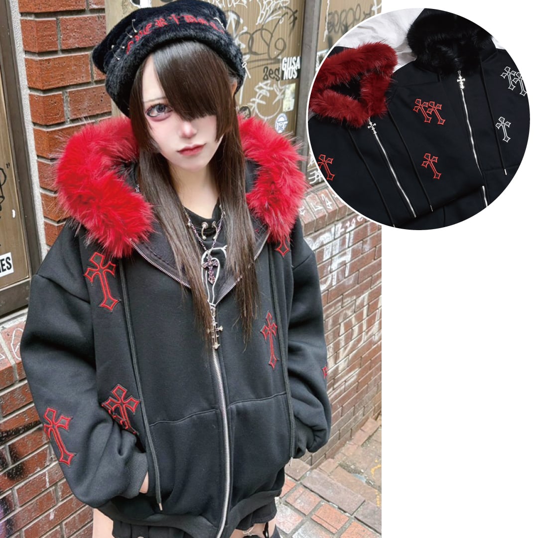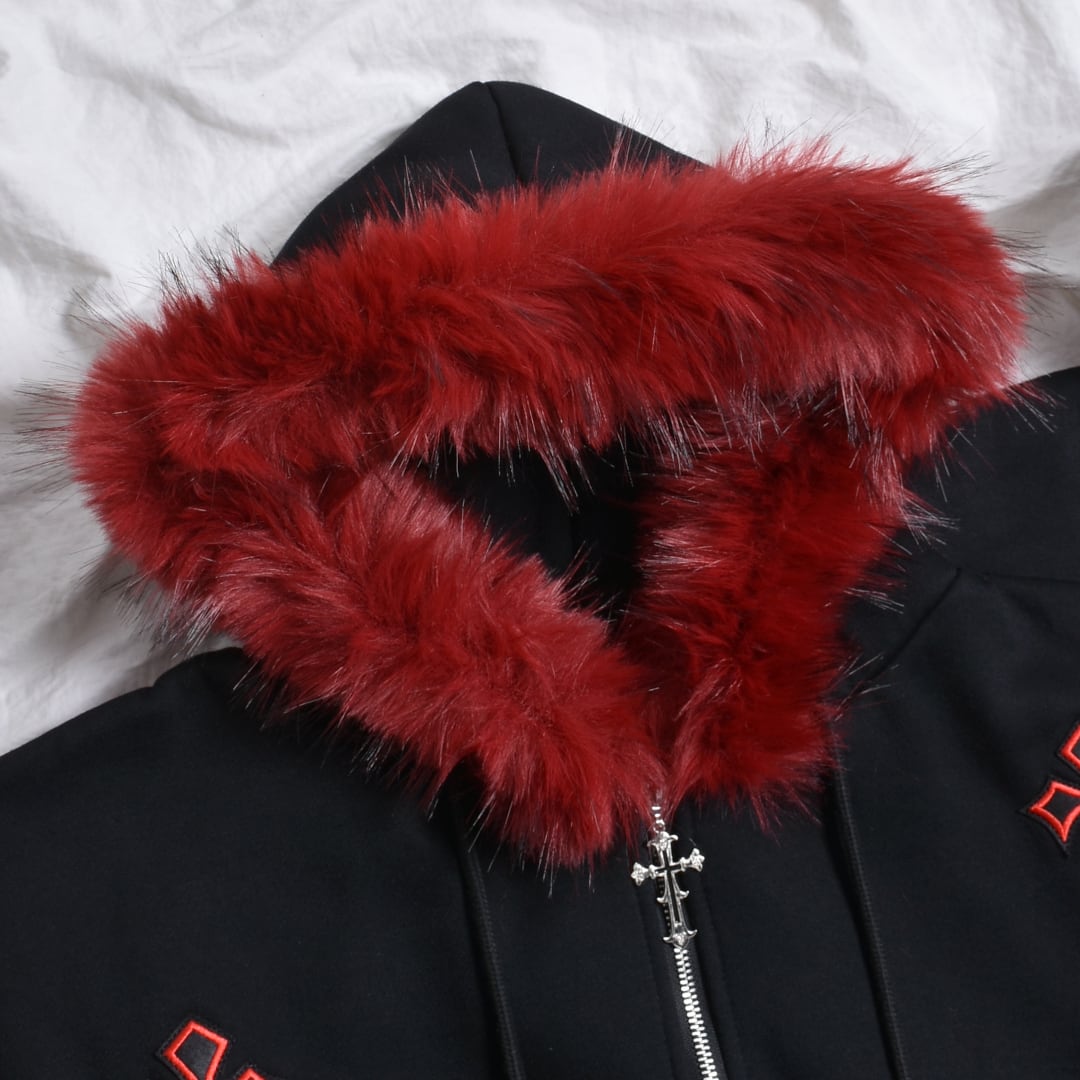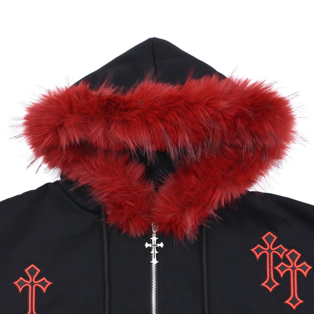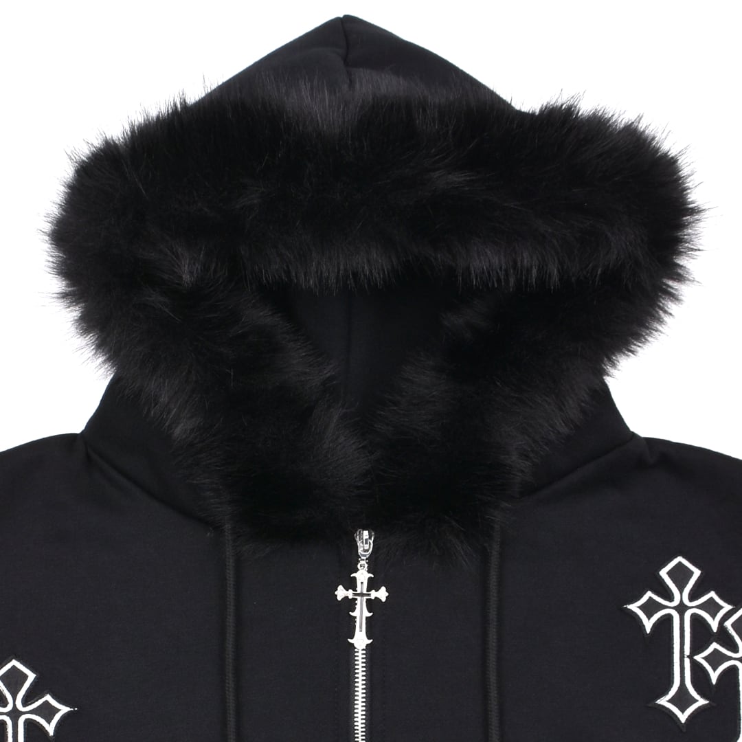 クロスパッチフードファーzipPK◆