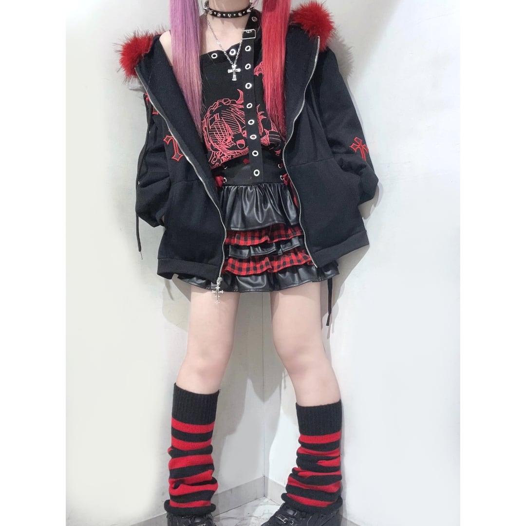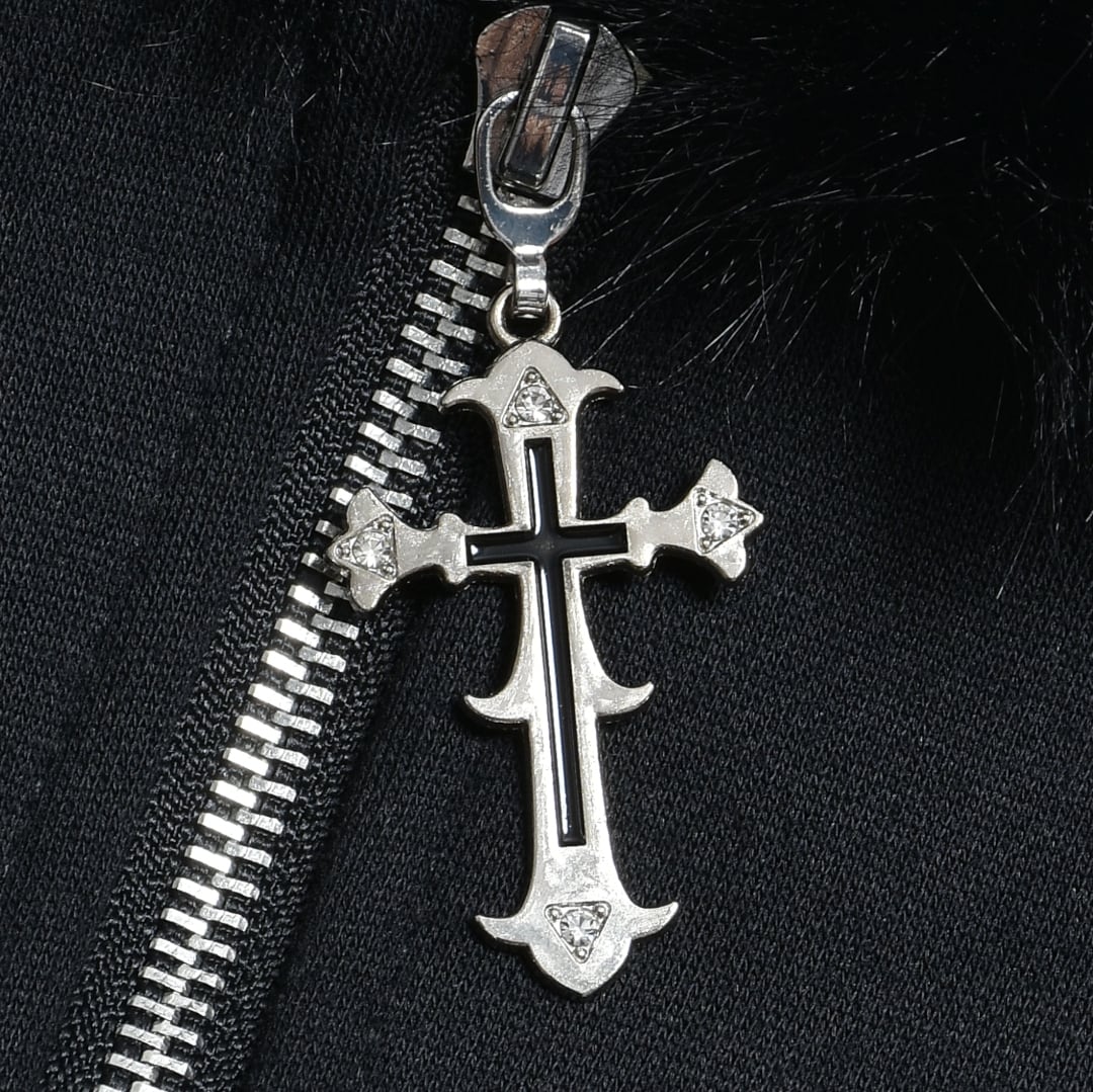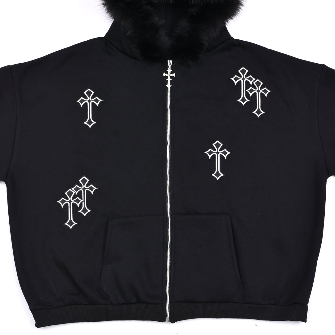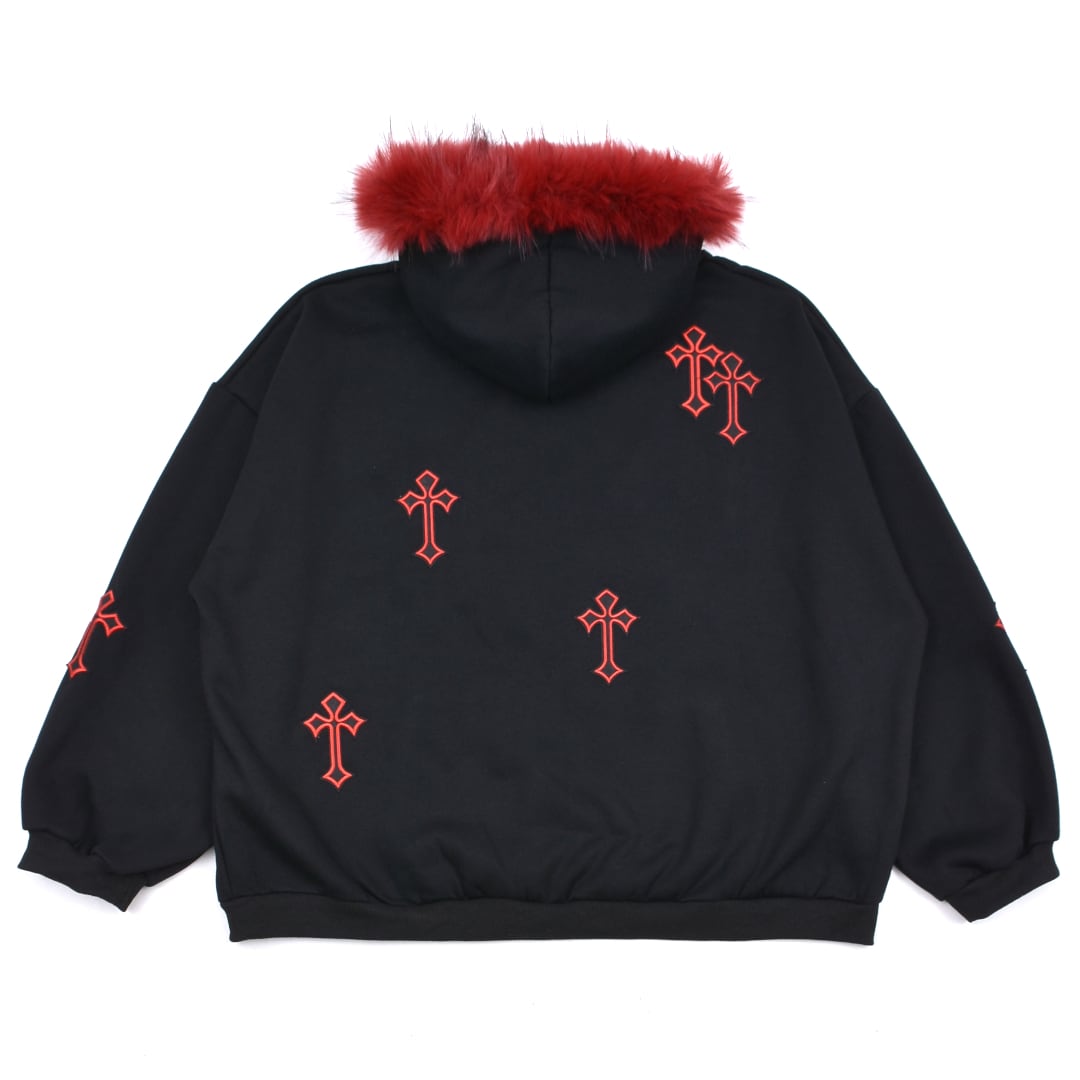 クロスパッチフードファーzipPK◆