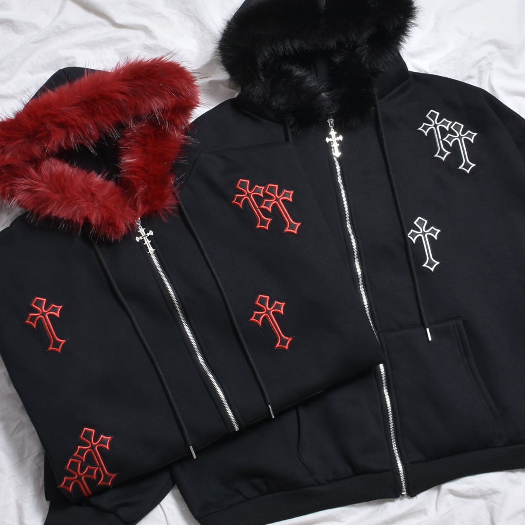 【12/29新着】クロスパッチフードZIPパーカー(裏起毛)