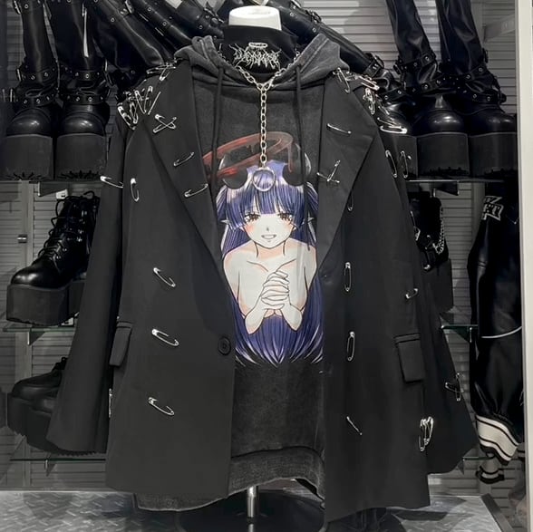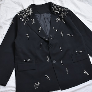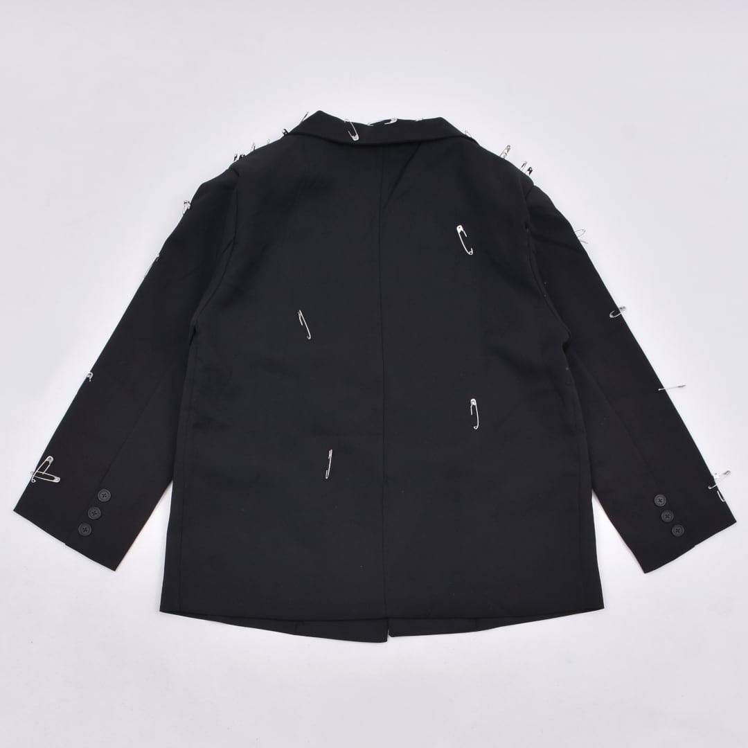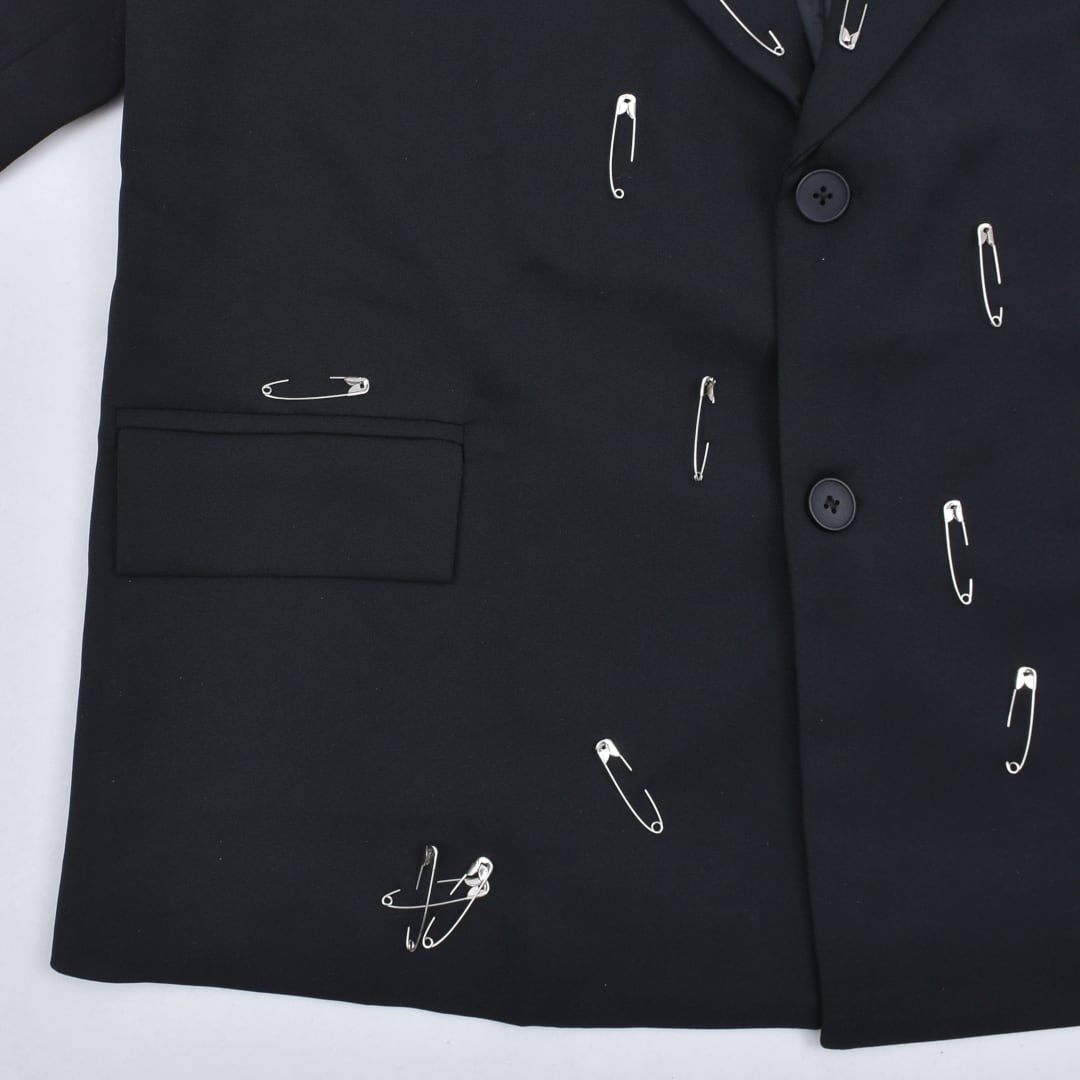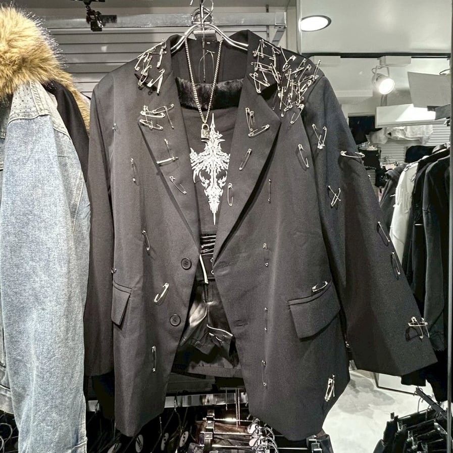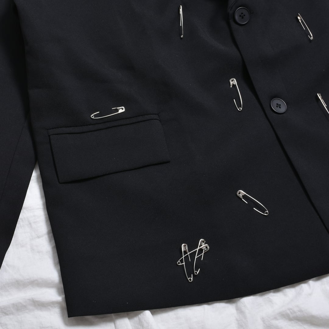 ランダムに配置された無数の安全ピンが思わず目を奪う一品。