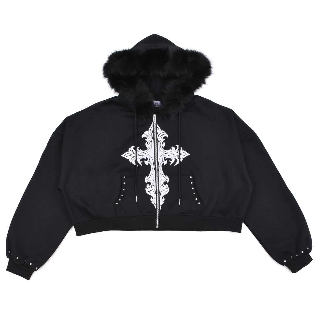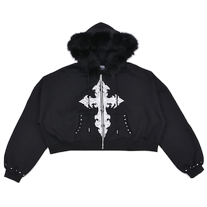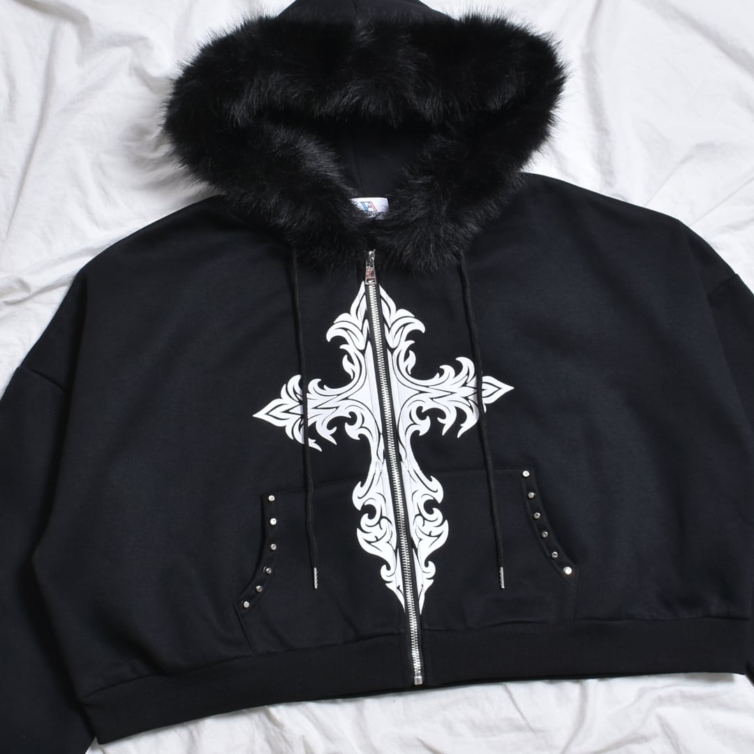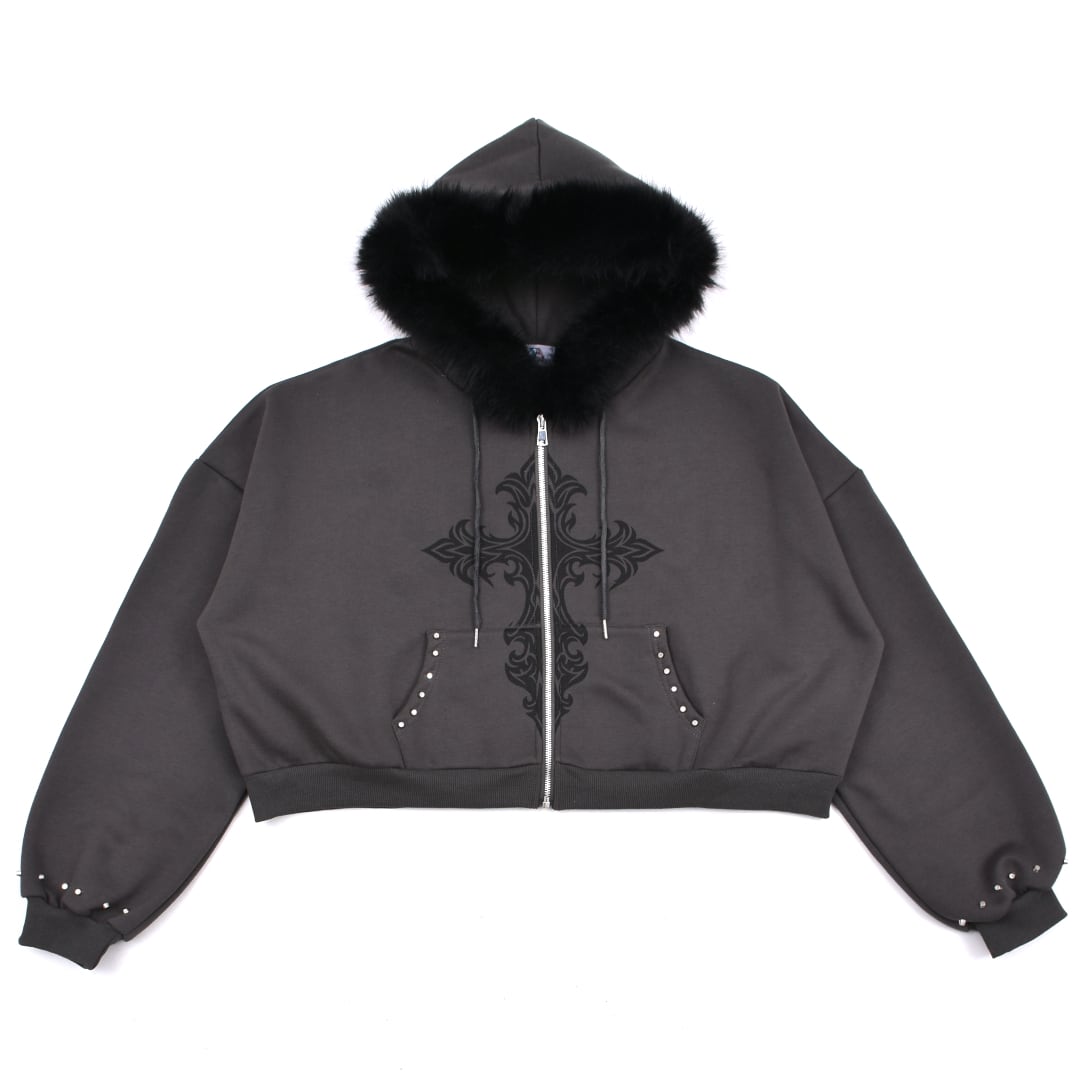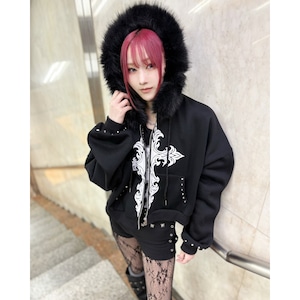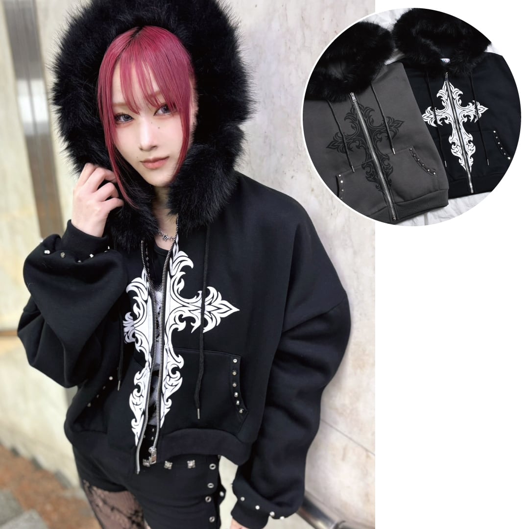 【1/3新着】ショート丈 クロススタッズファーZIPパーカー(裏起毛)