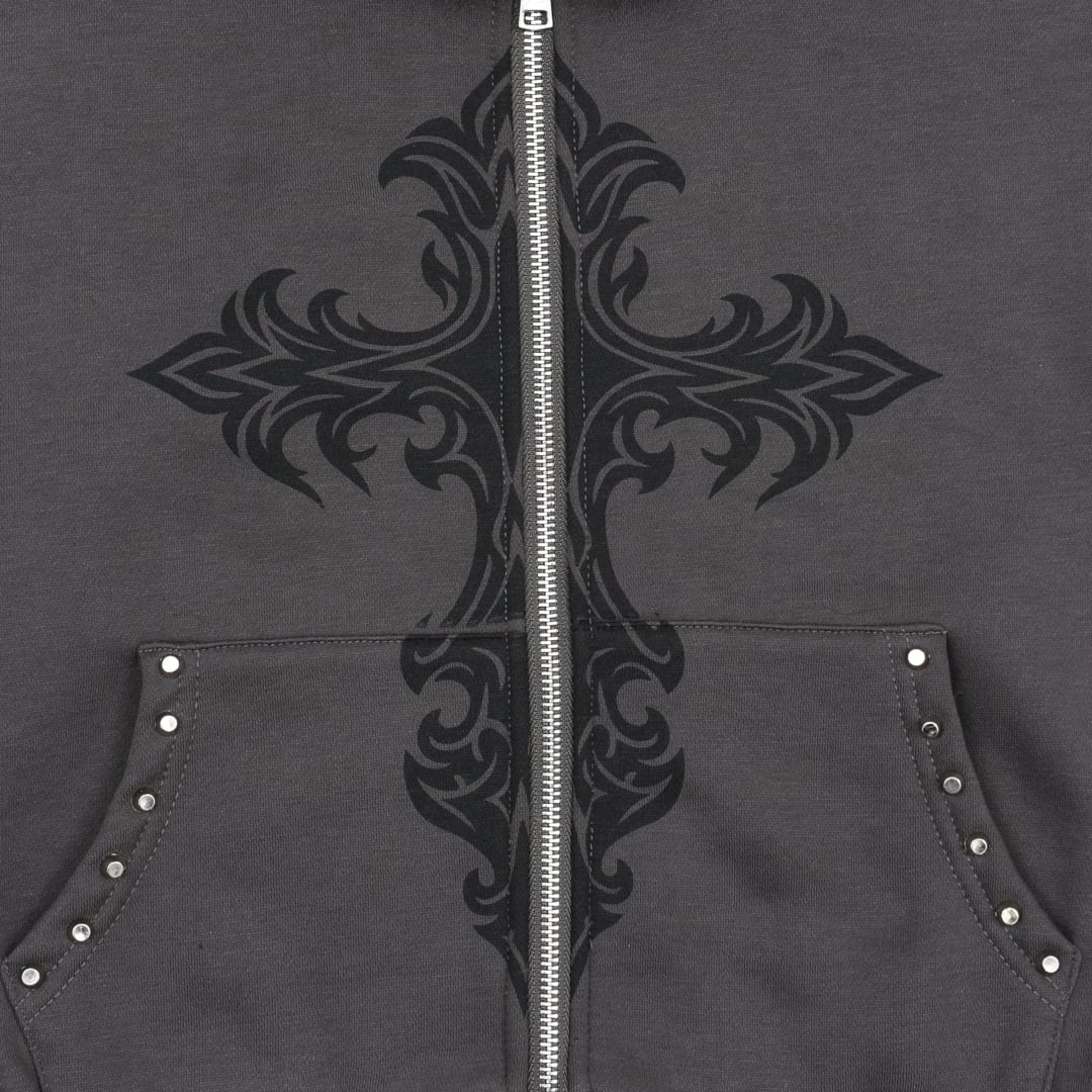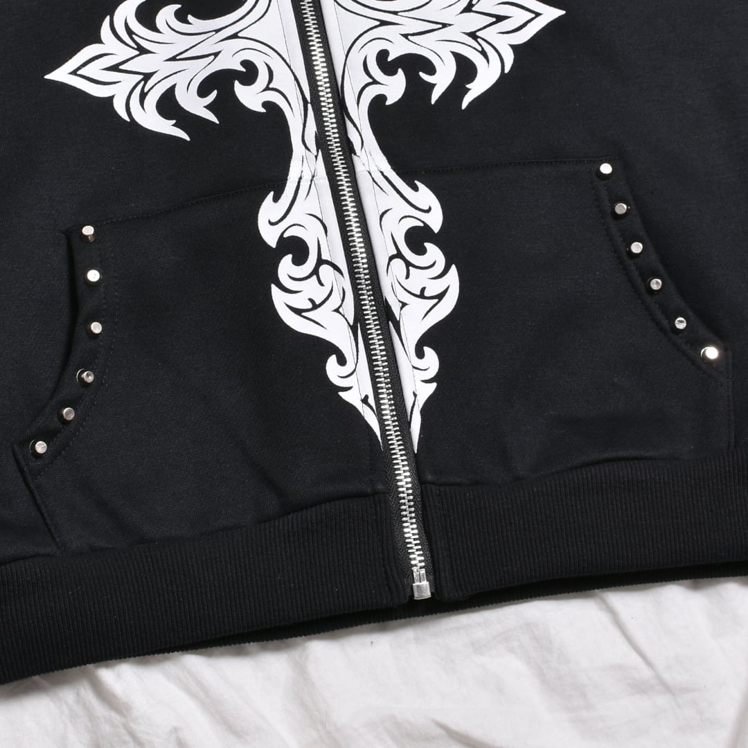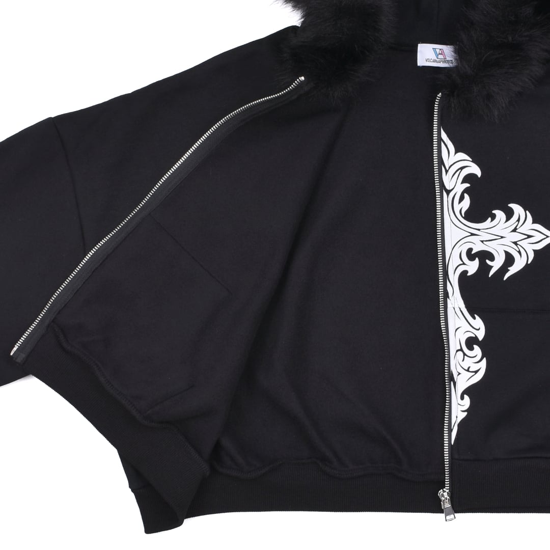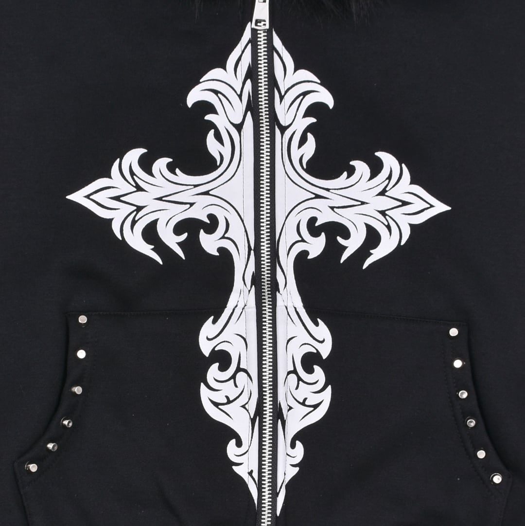 【1/3新着】ショート丈 クロススタッズファーZIPパーカー(裏起毛)