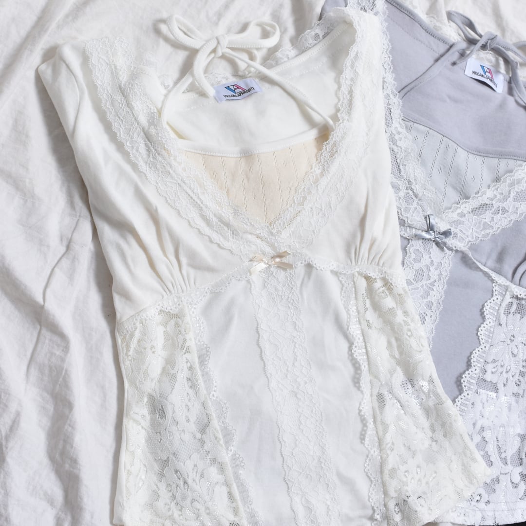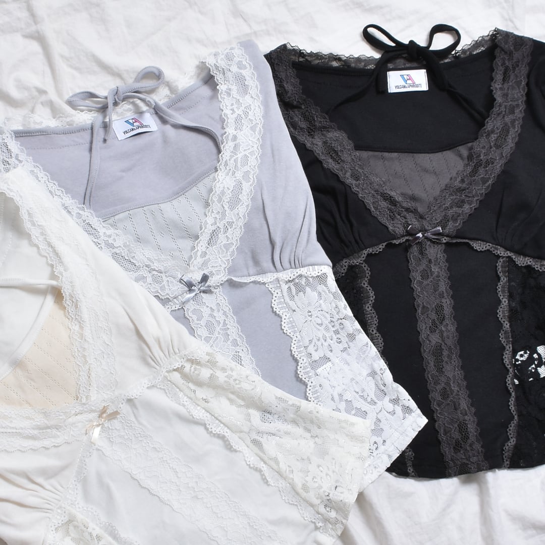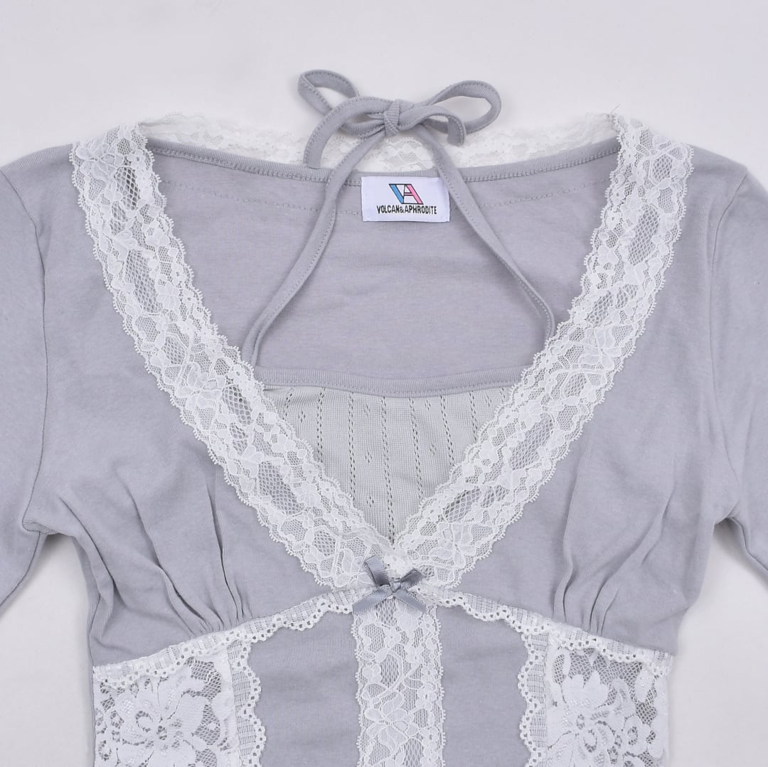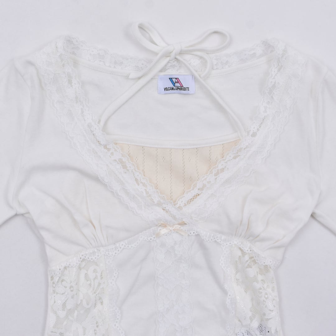 随所に施したレースやフロントのリボンが可愛いアクセント