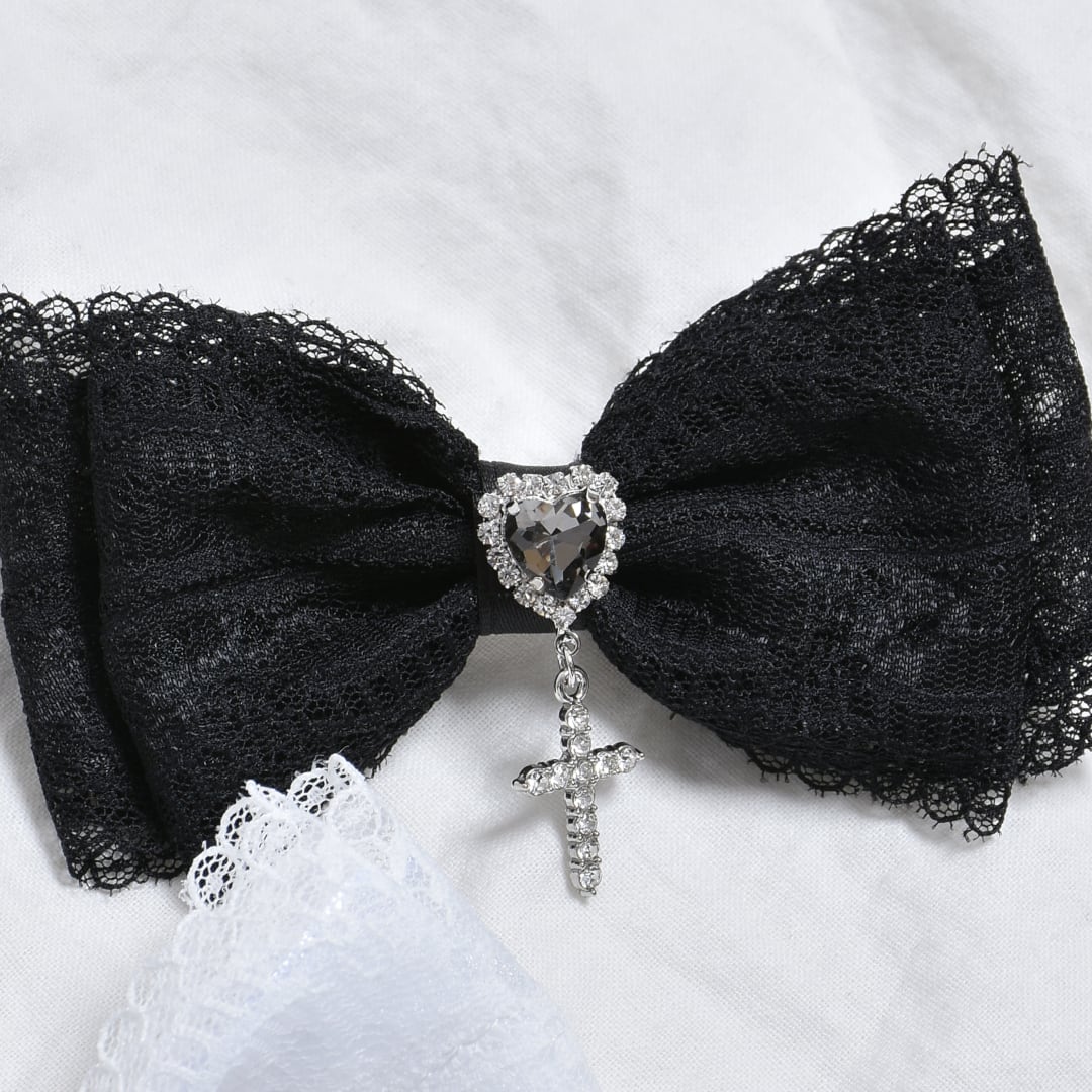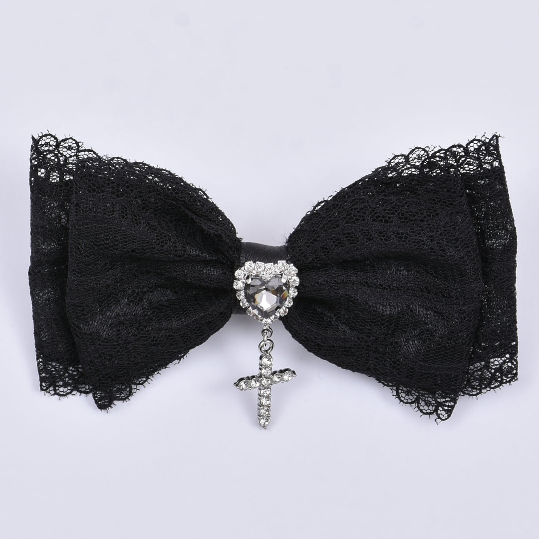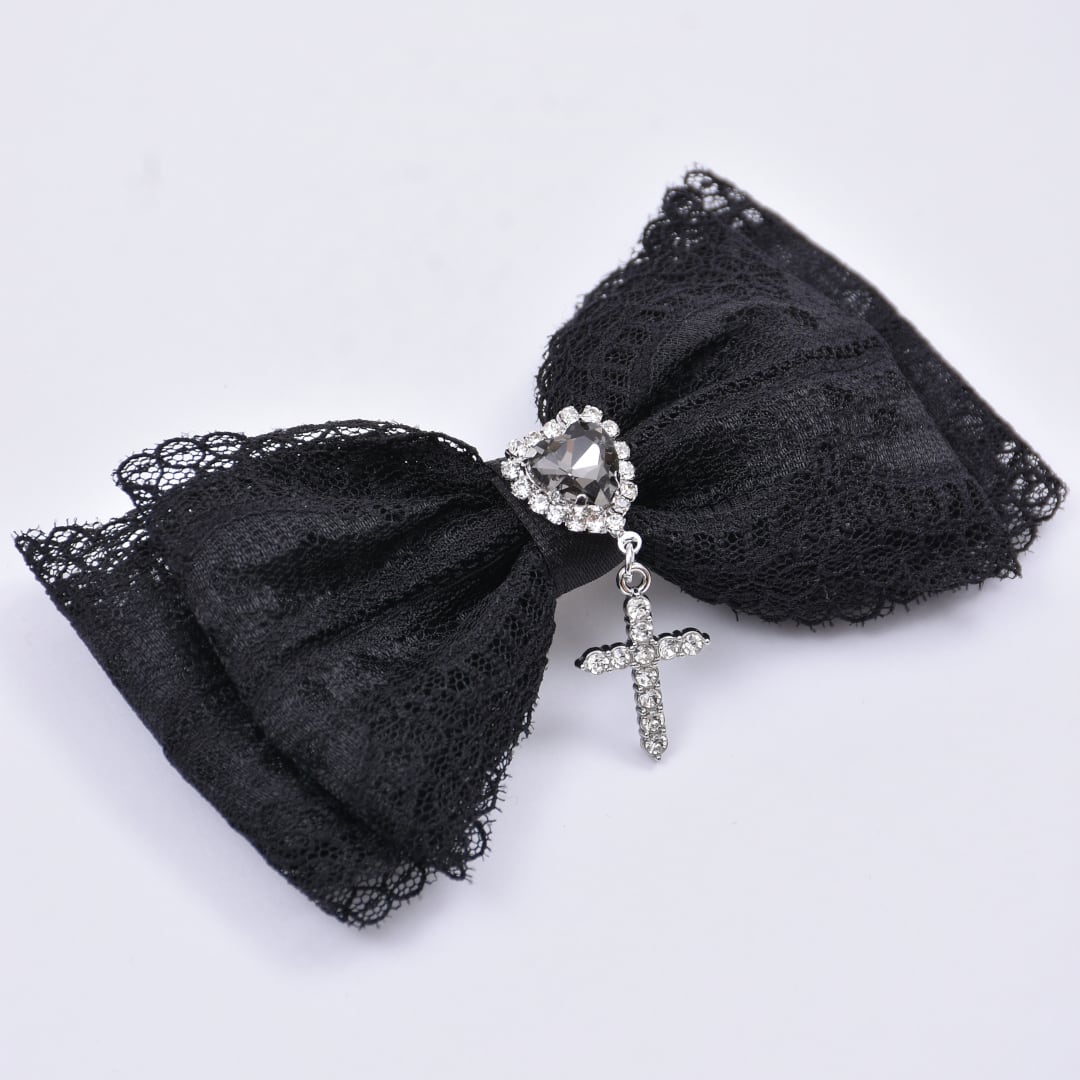 レースリボンハートクロスヘアピン
