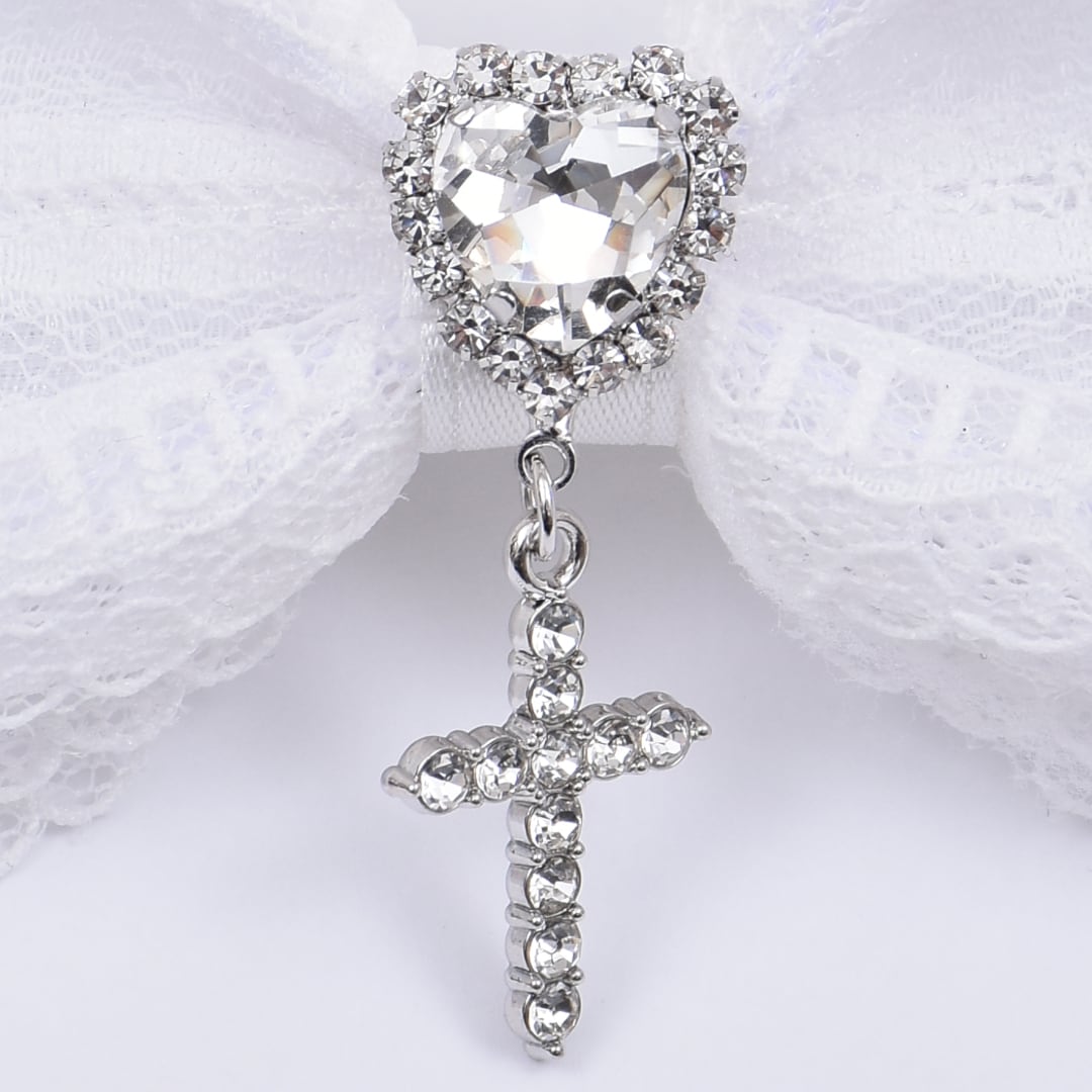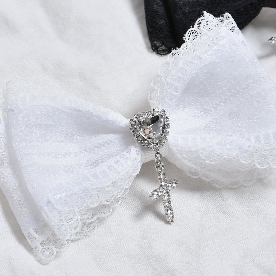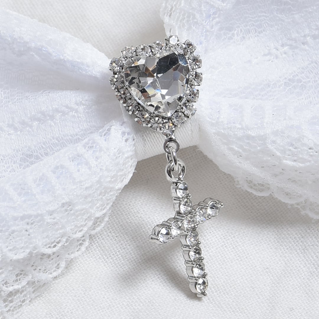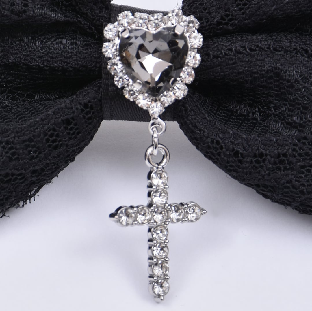 レースリボンハートクロスヘアピン