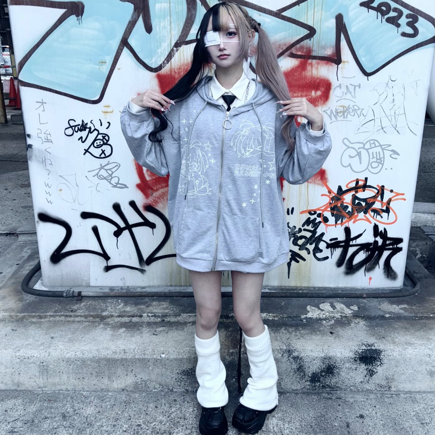 人気のガールプリントと、アスキーアートをイメージした記号・絵文字・顔文字をランダムに散りばめた遊び心のあるデザイン