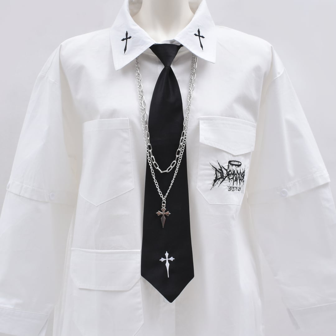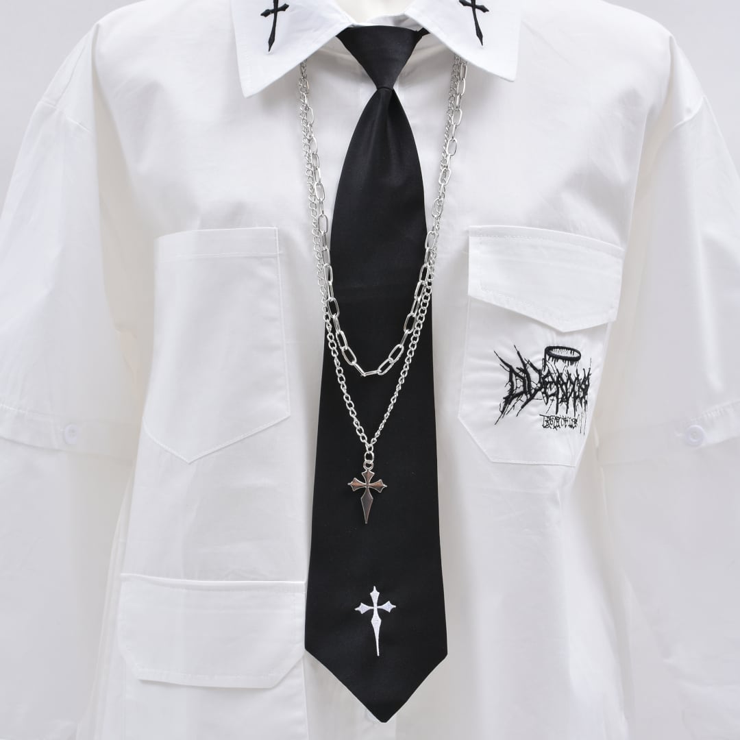【1/30新着】2点セット★ネクタイ×ネックレスセット(クロス刺繍)