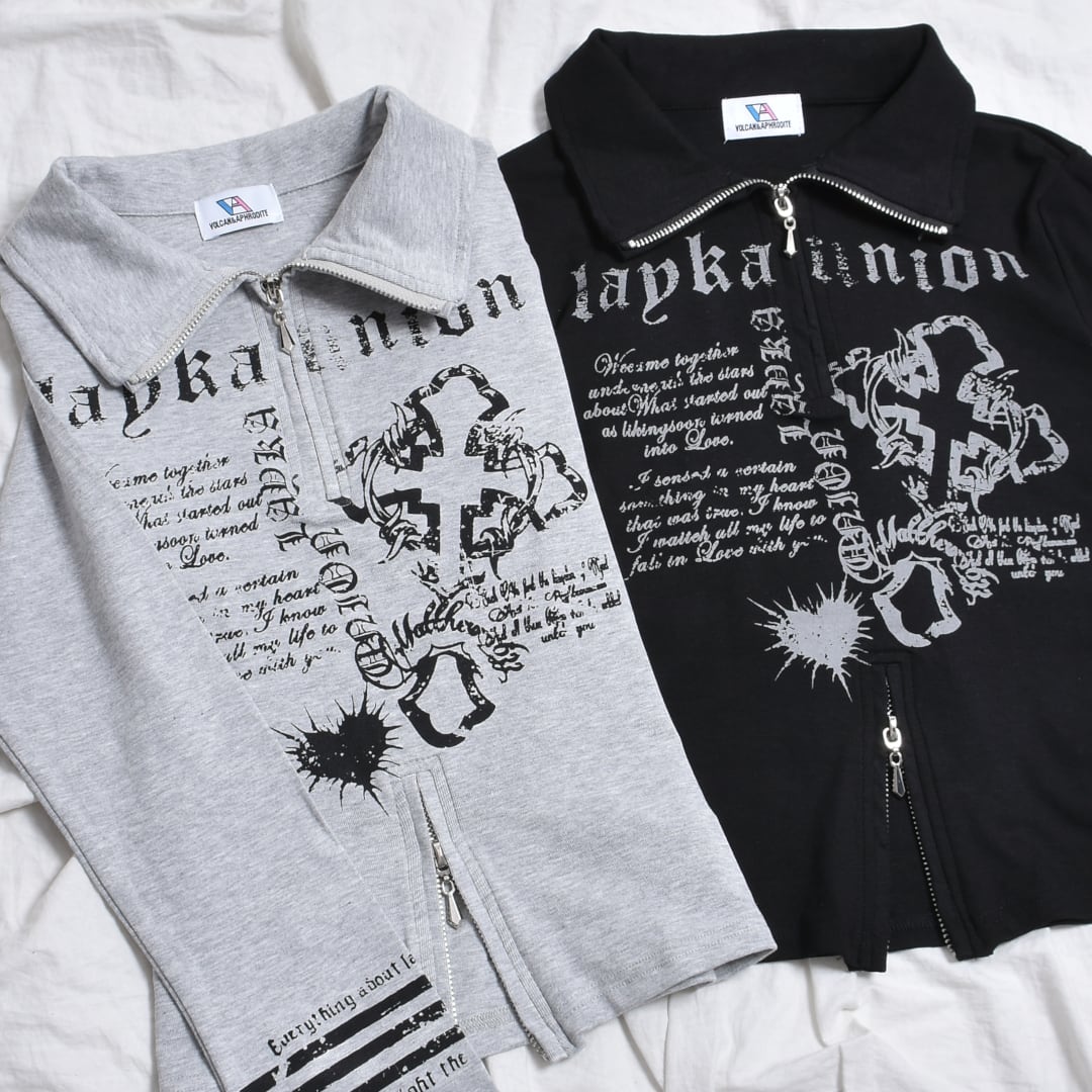 クロスモチーフのプリントや袖のラインデザインもアクセント