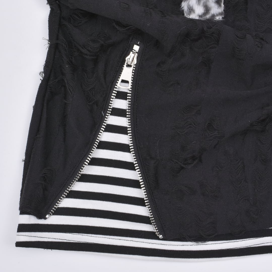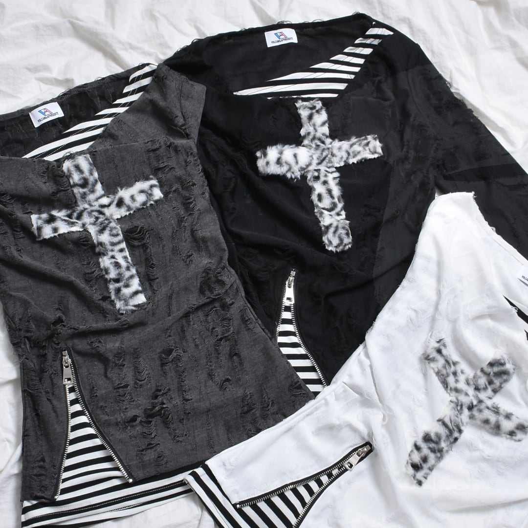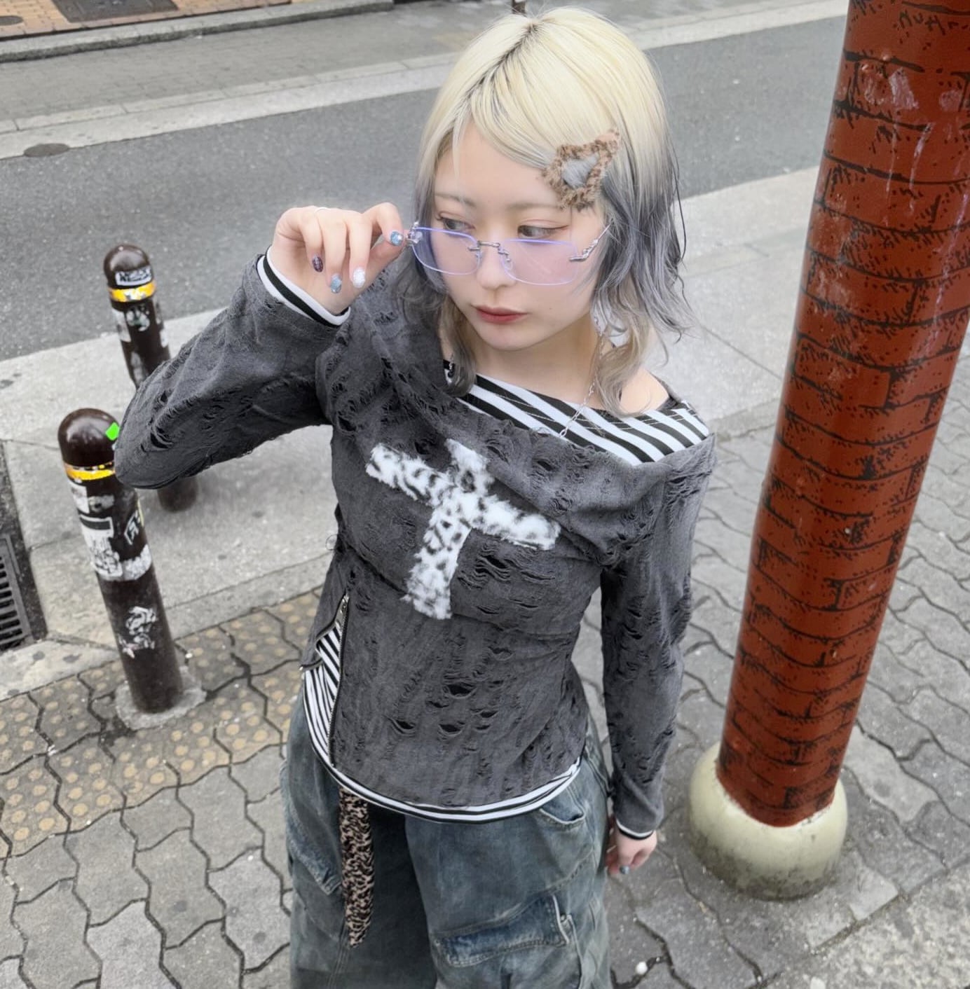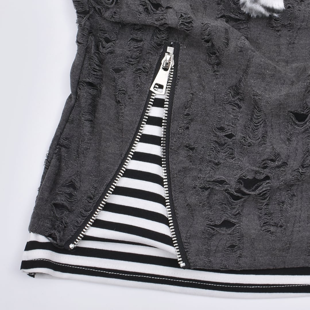 ボーダーカットソーとダメージ系カットソーのフェイクレイヤードデザイン