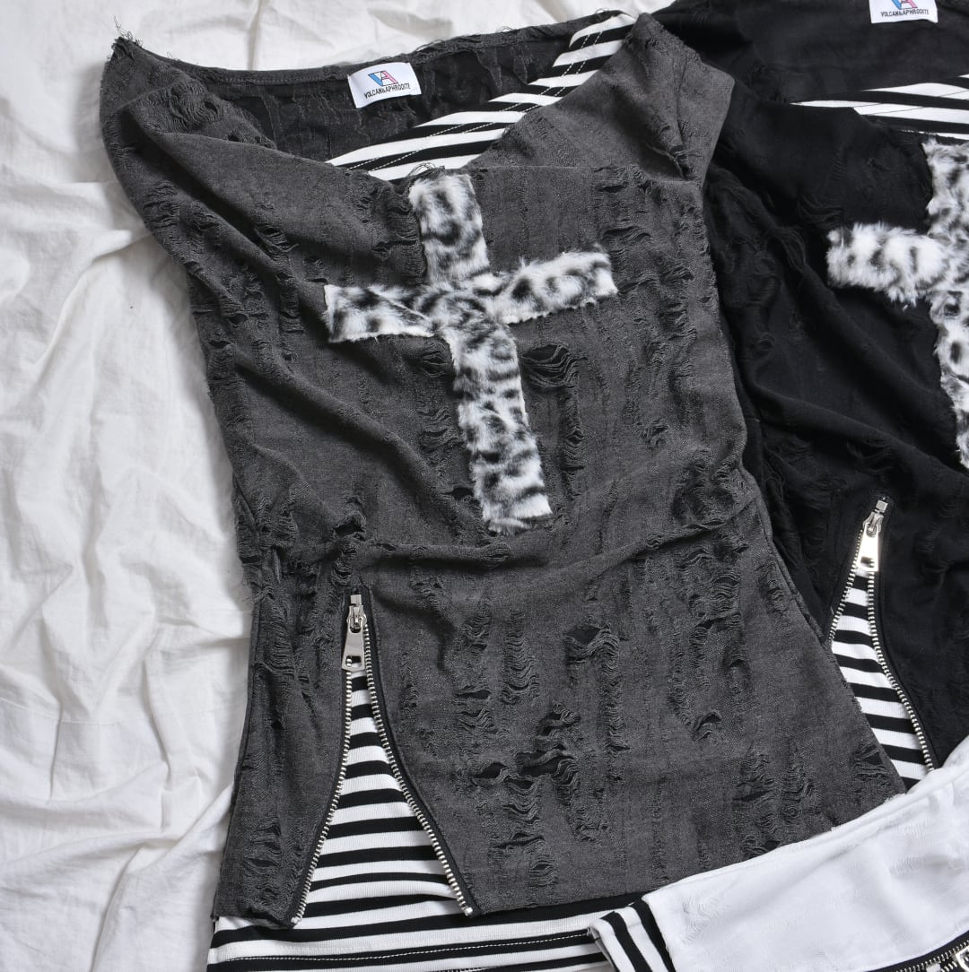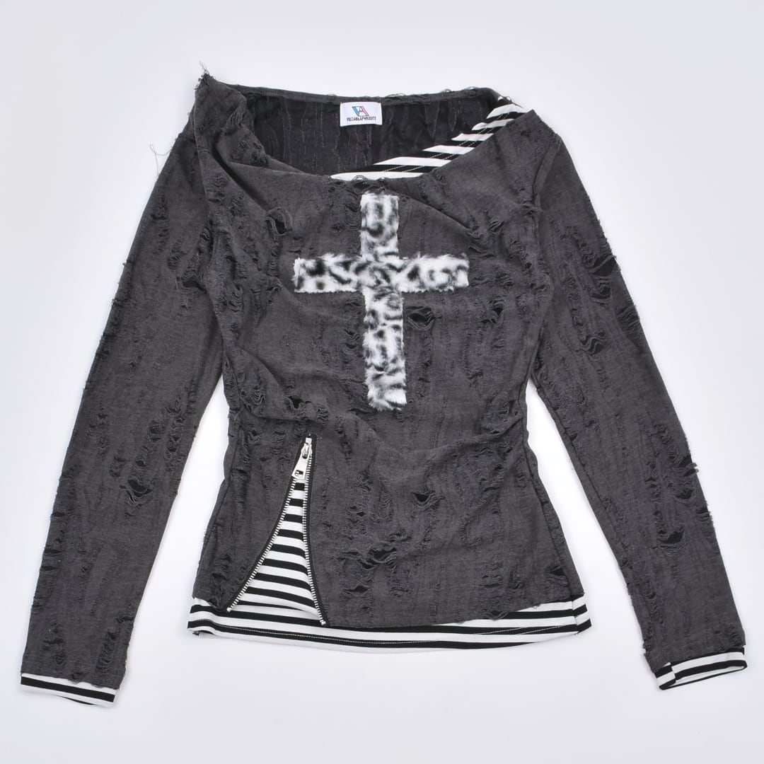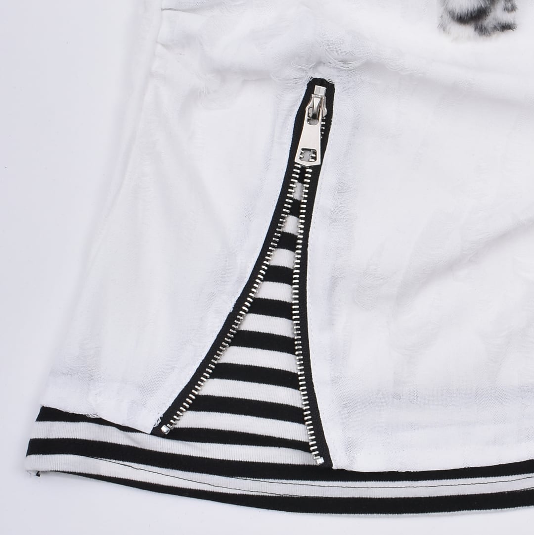 ボーダーカットソーとダメージ系カットソーのフェイクレイヤードデザイン