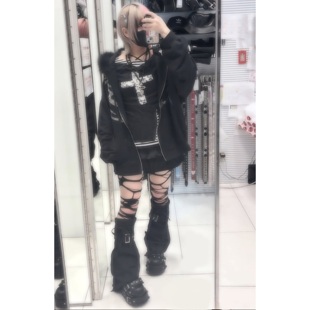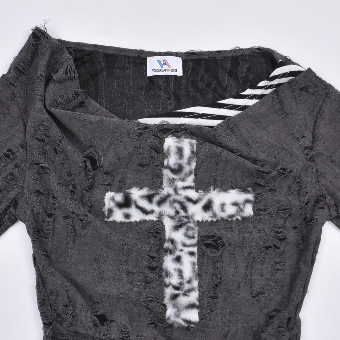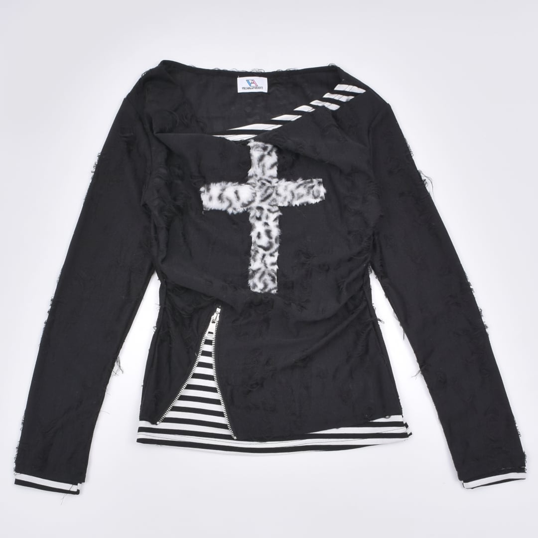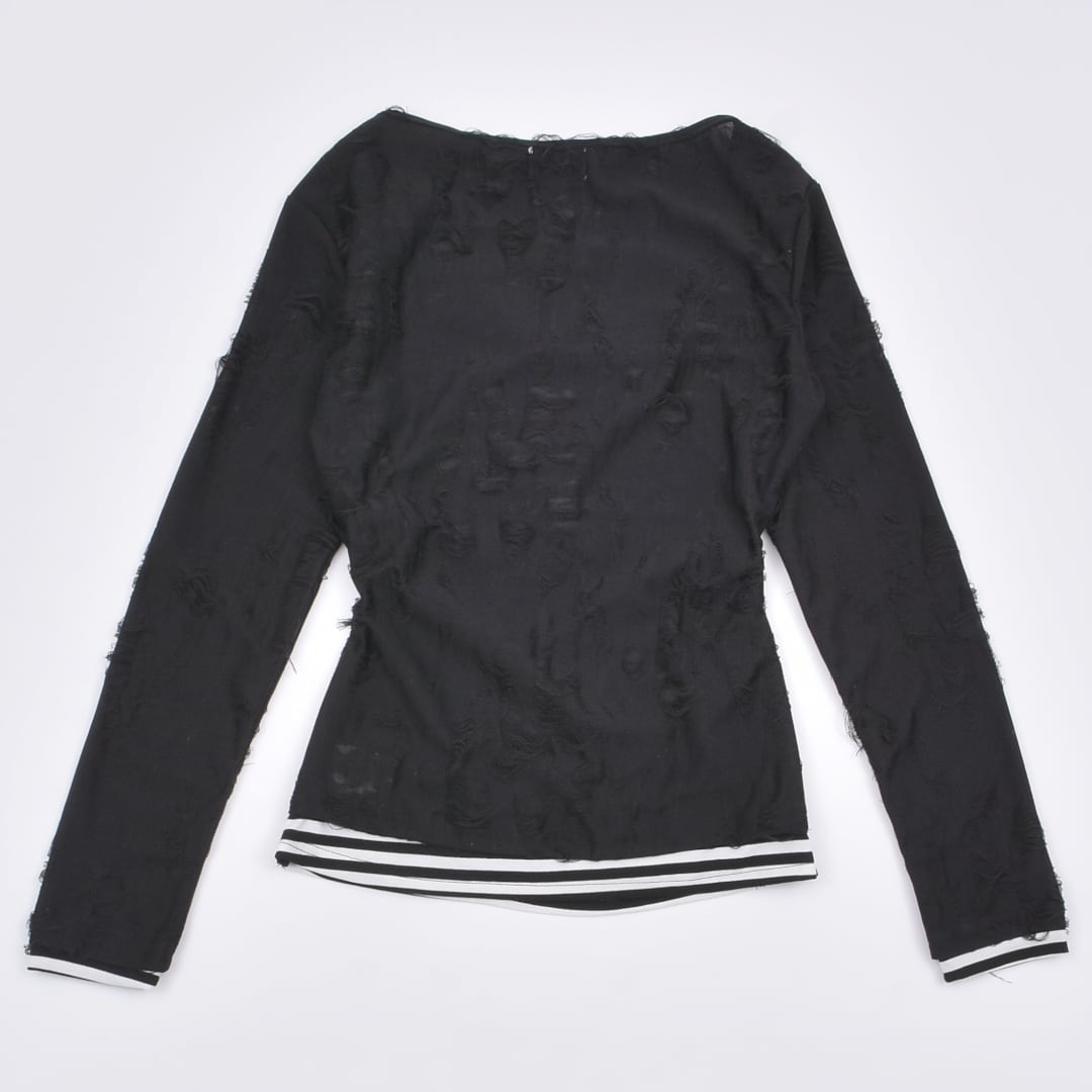 ボーダーカットソーとダメージ系カットソーのフェイクレイヤードデザイン