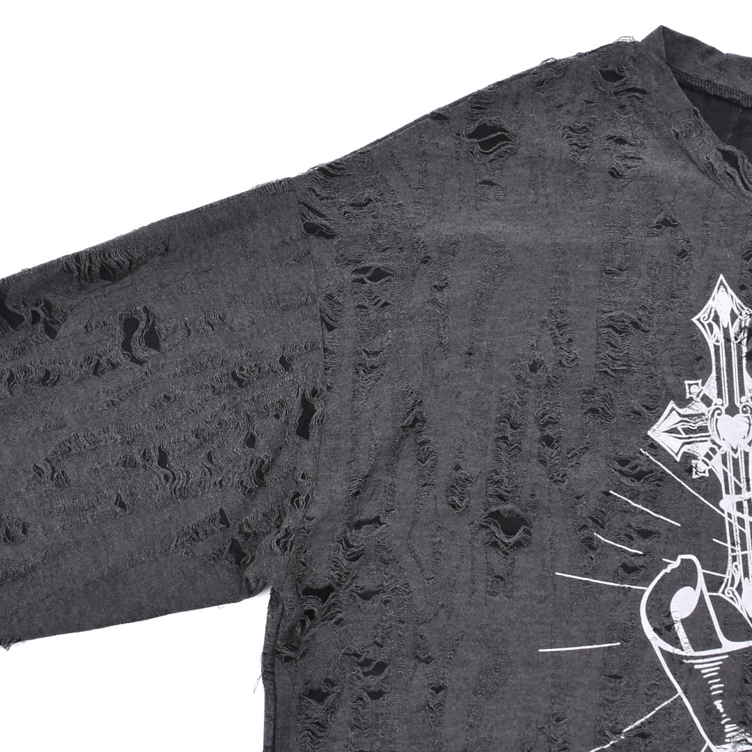ダメージ加工を施したニットライクな生地感が印象的なロンT
