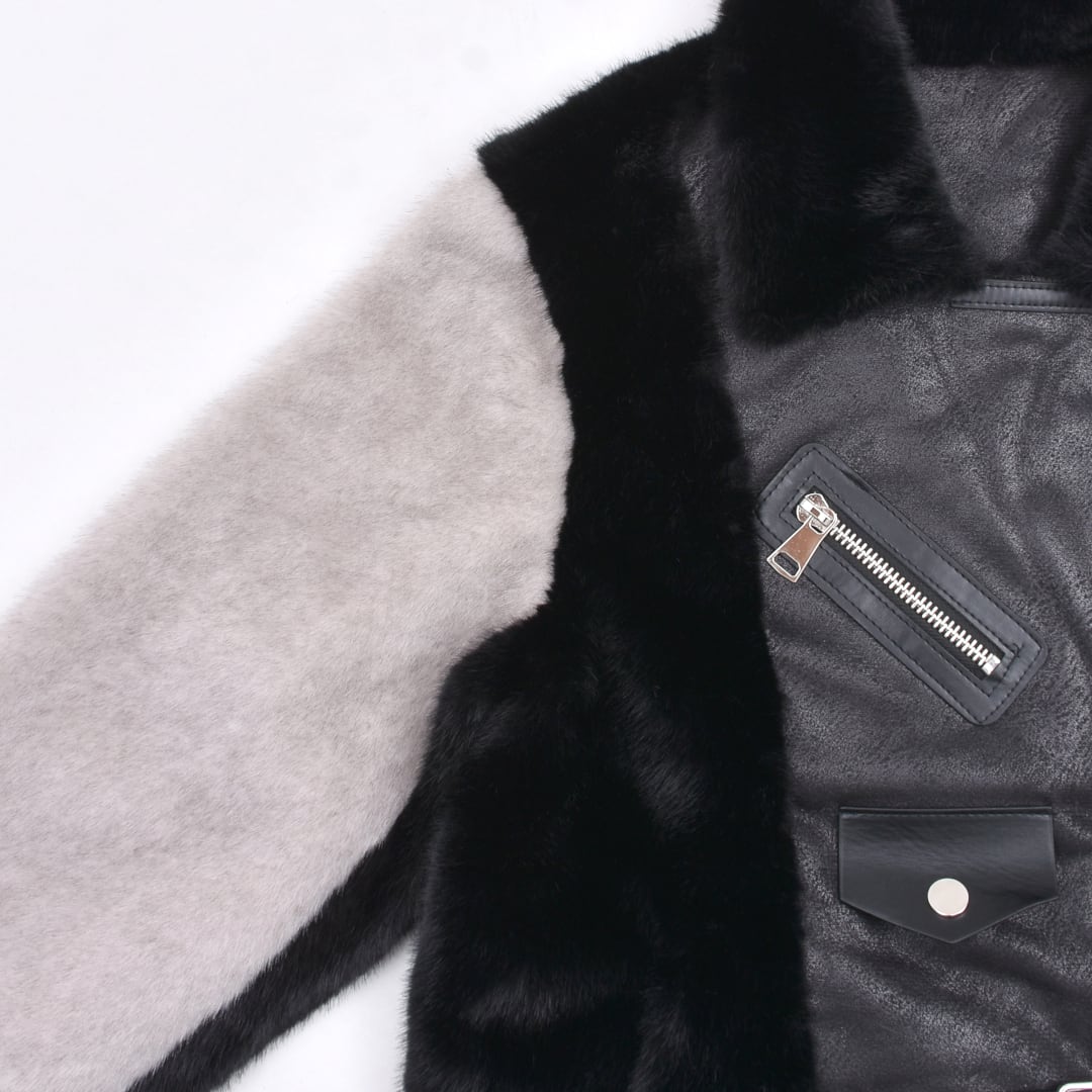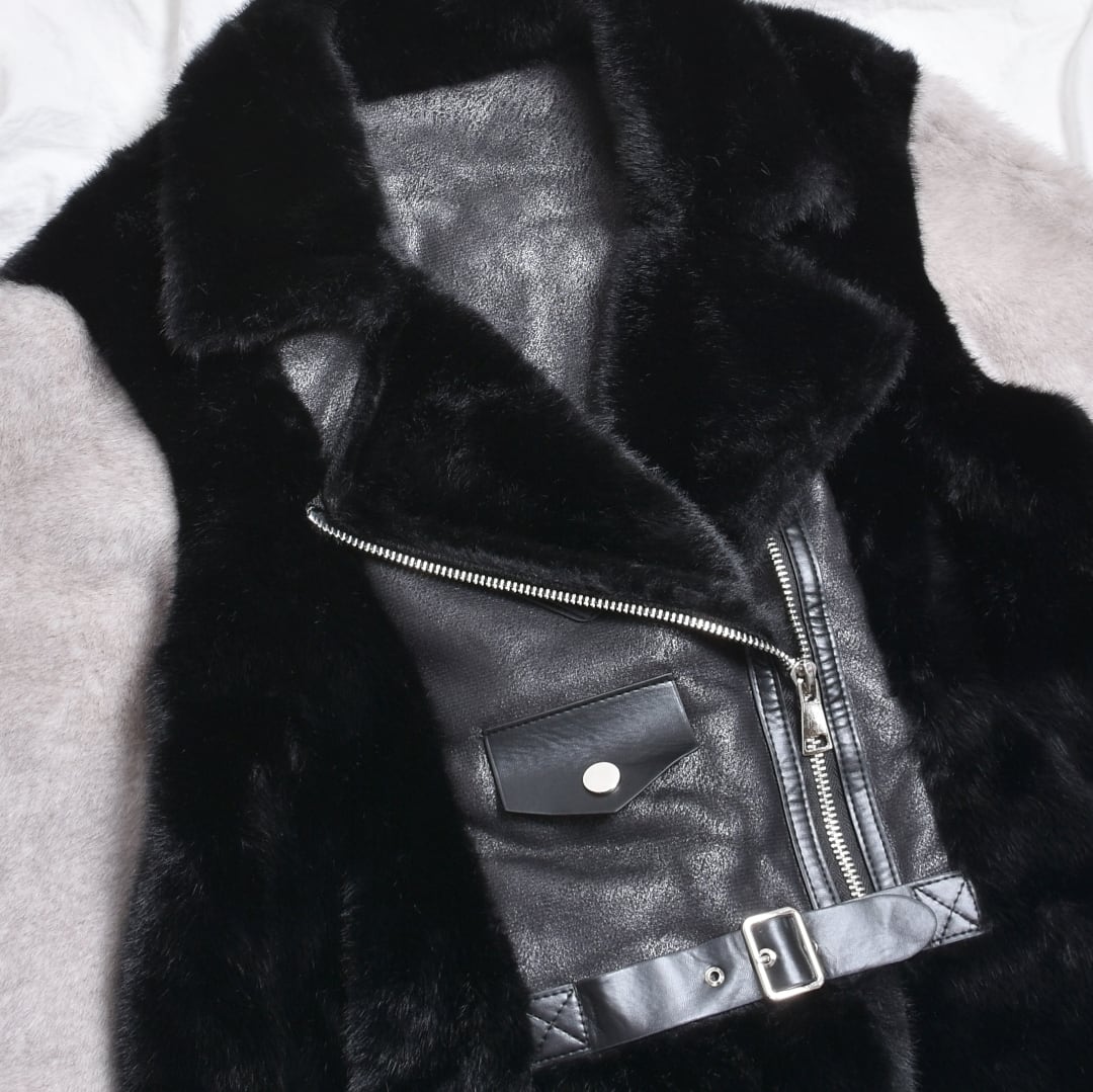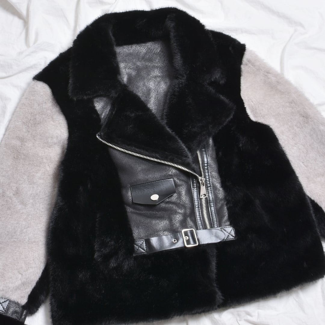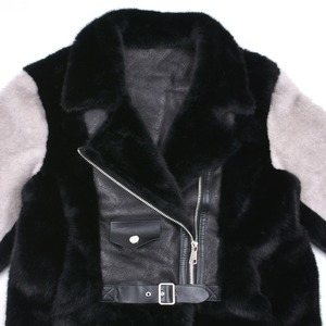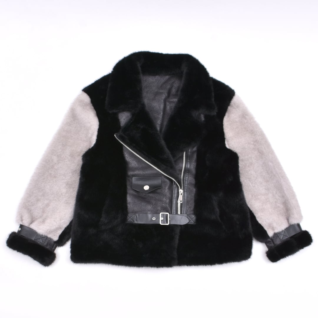 2色のフェイクファーを贅沢に使用したライダースジャケット