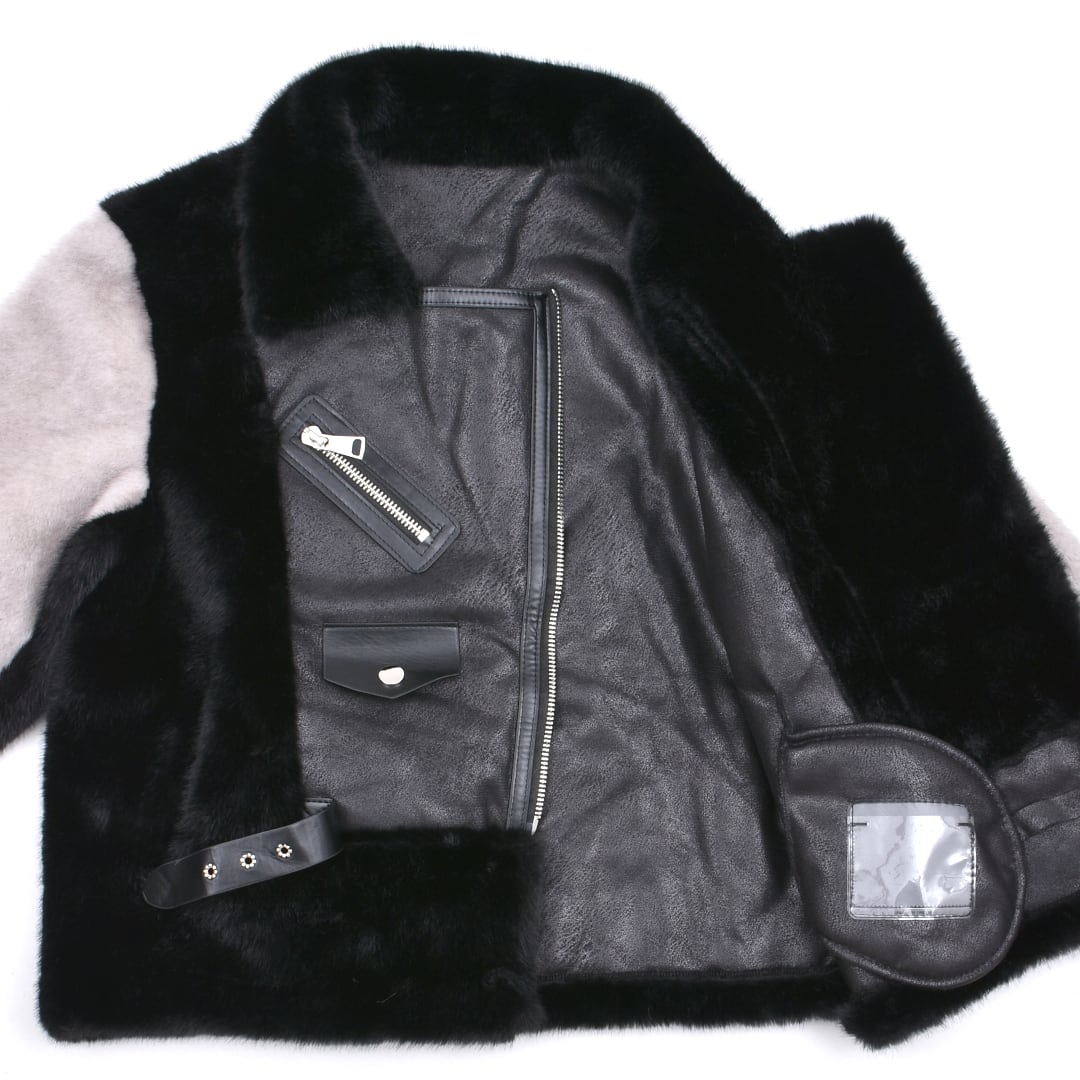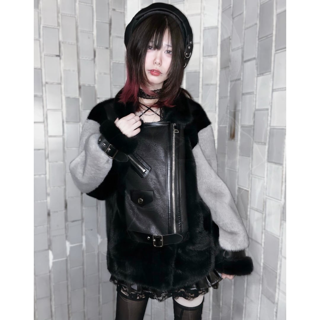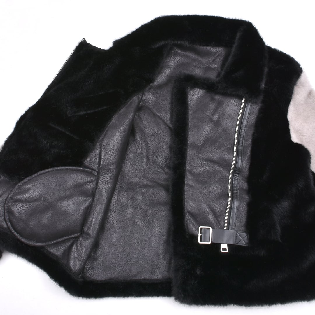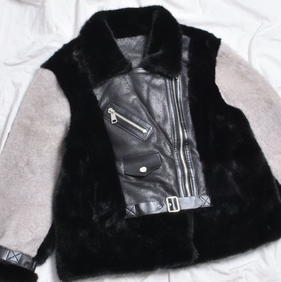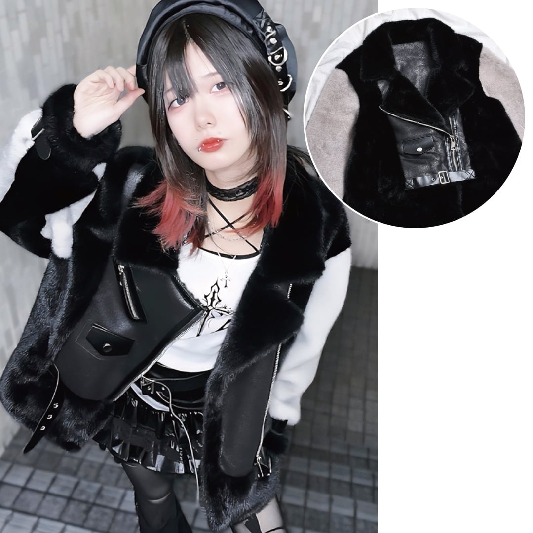 2色のフェイクファーを贅沢に使用したライダースジャケット