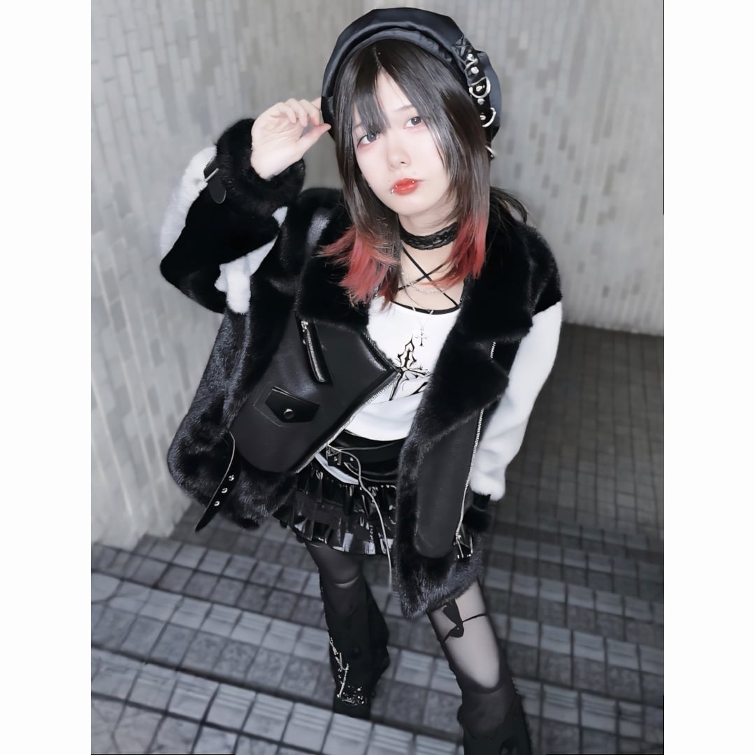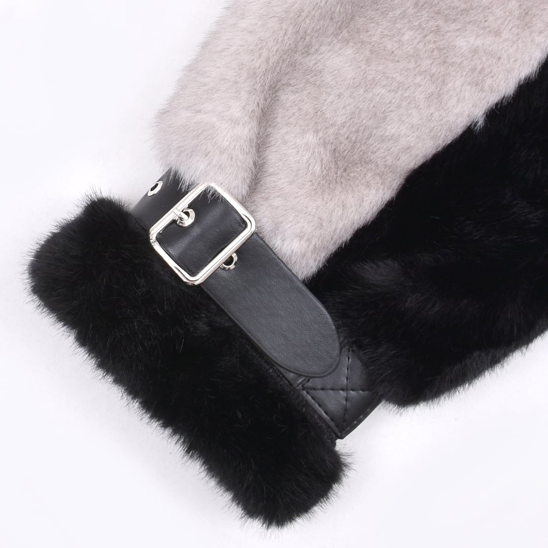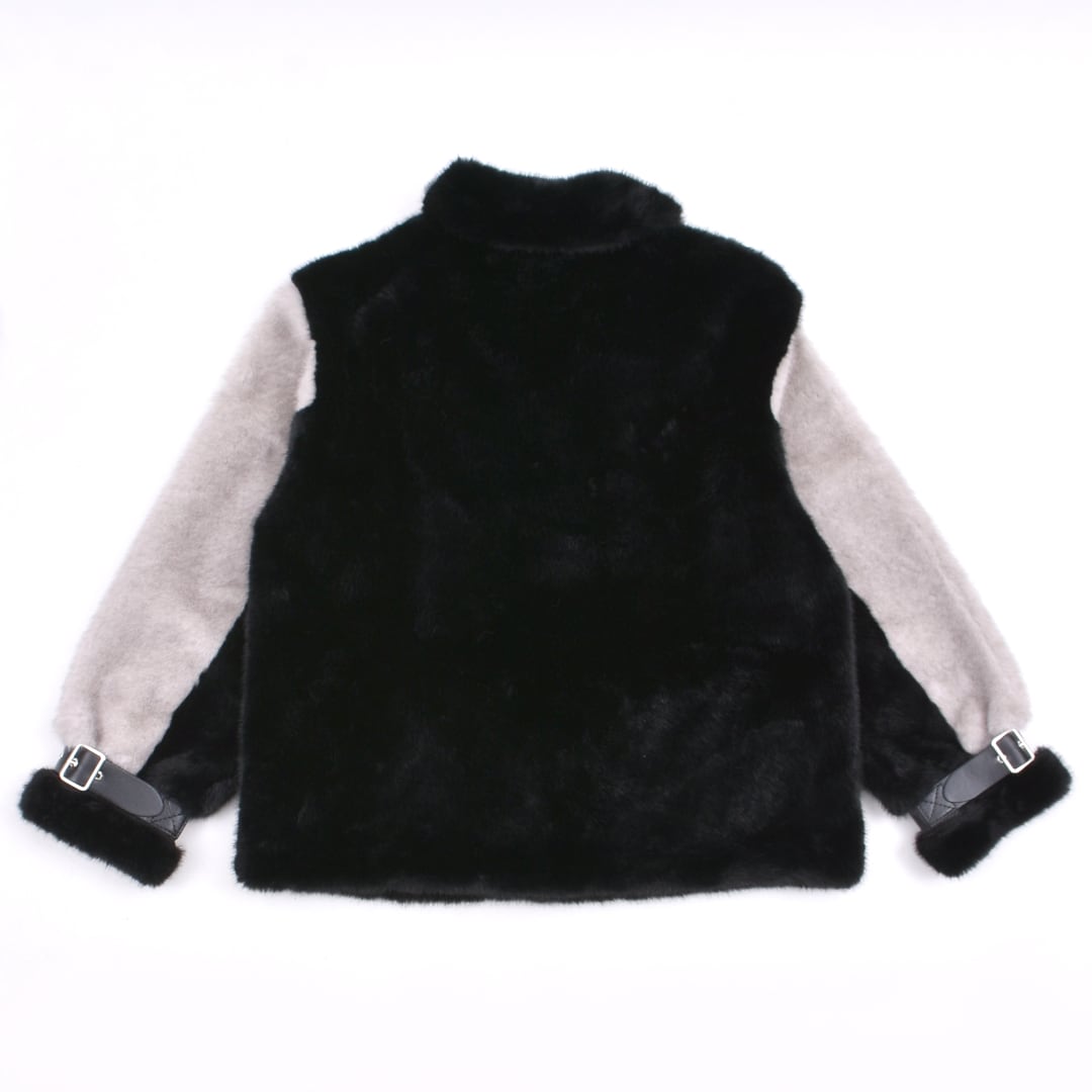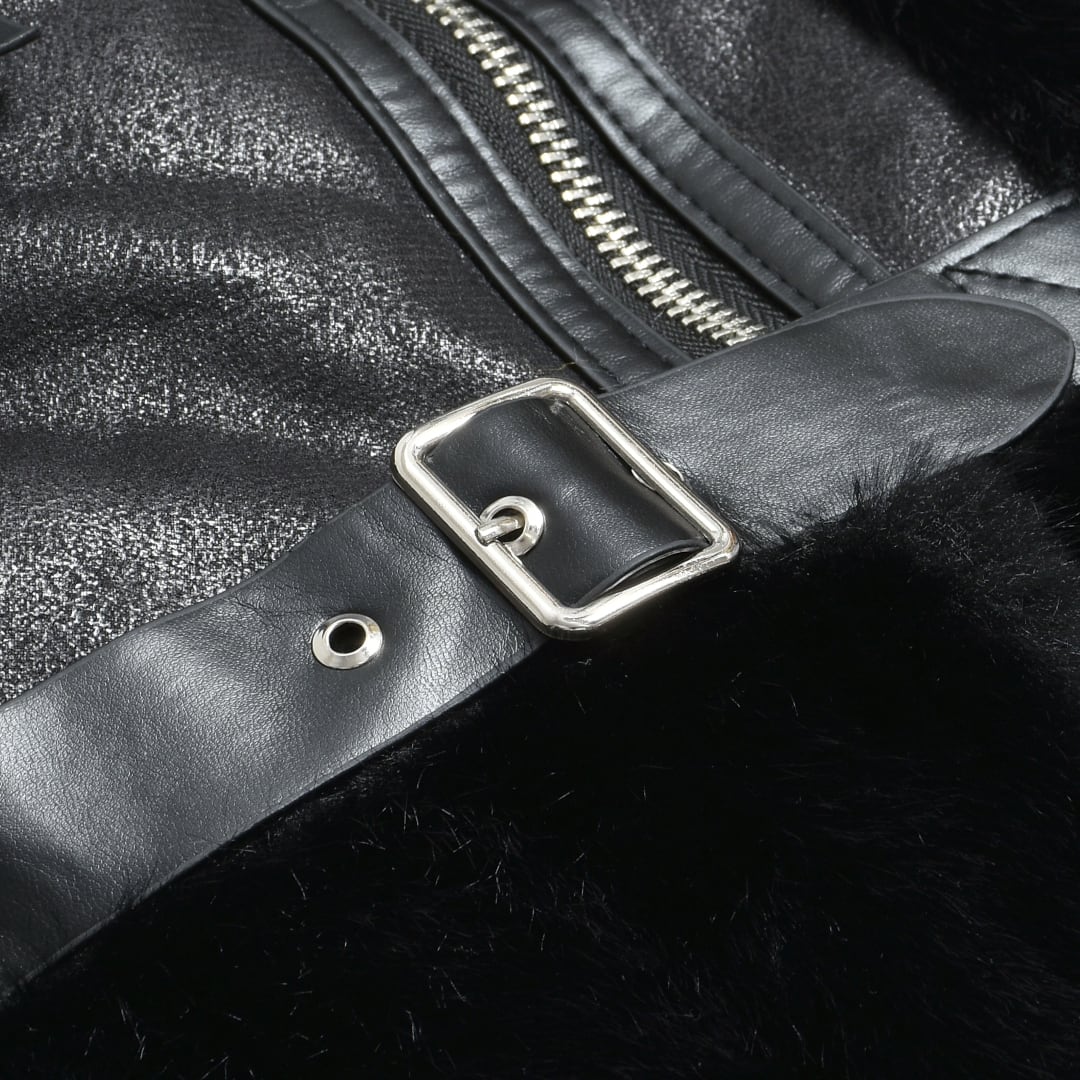 2色のフェイクファーを贅沢に使用したライダースジャケット