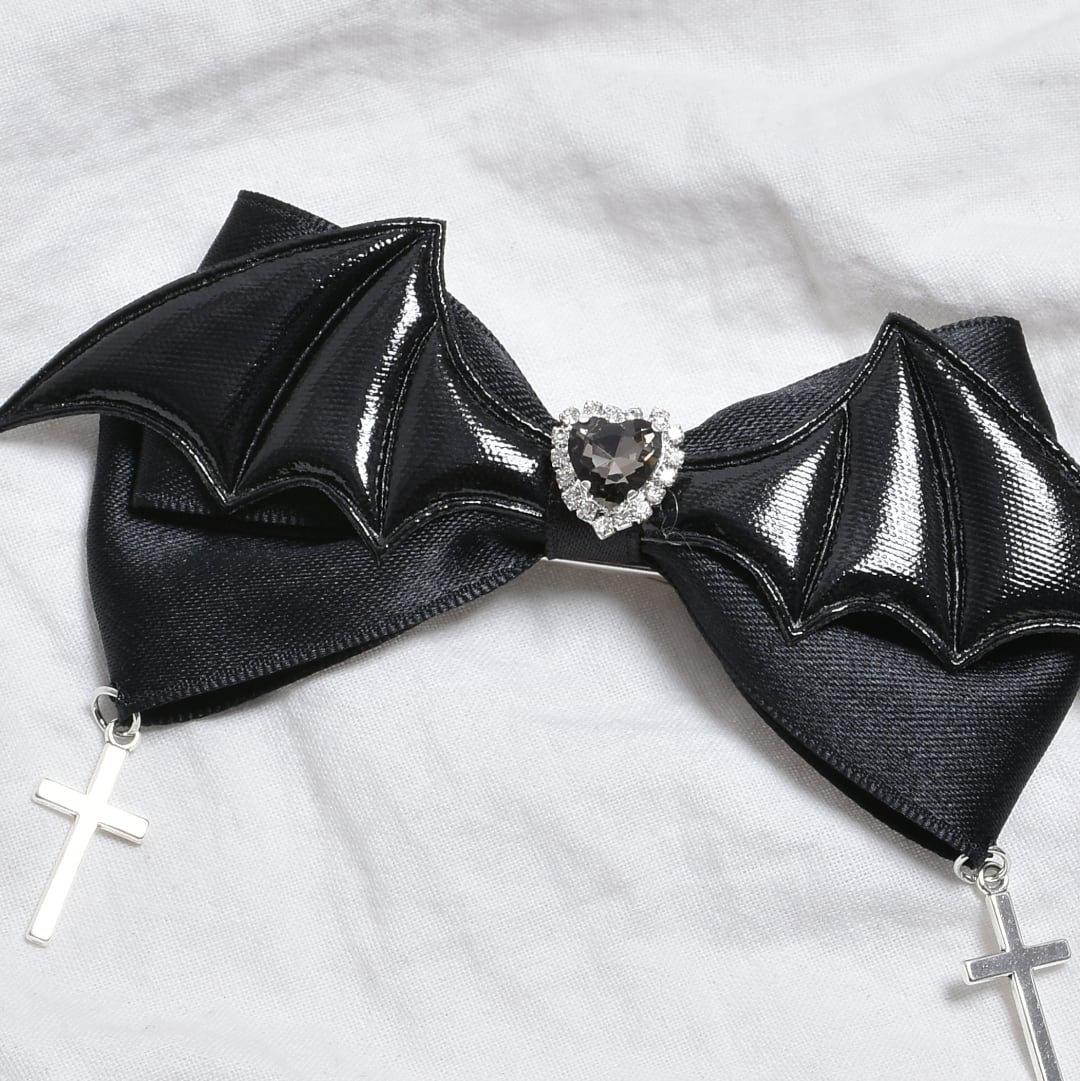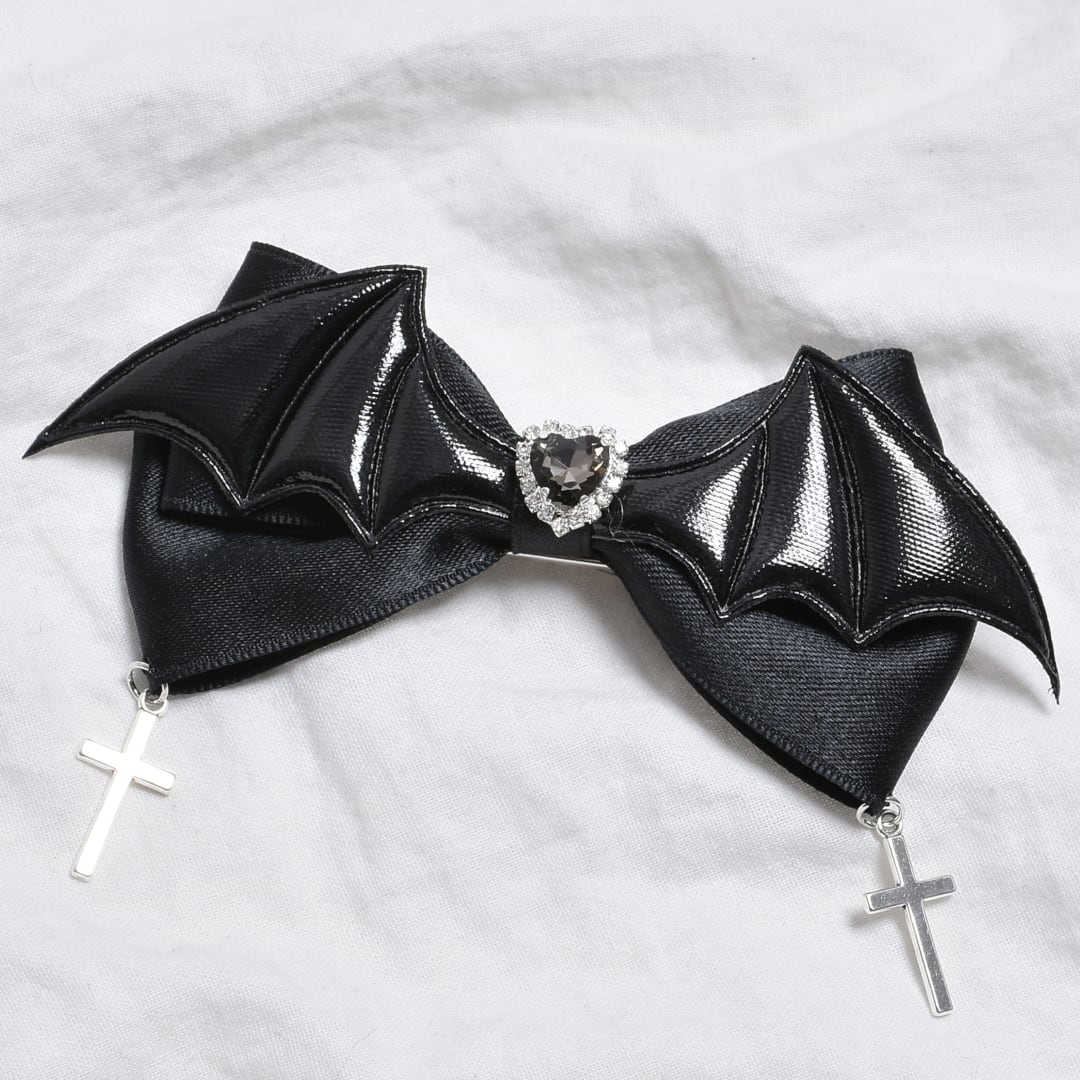 【2/5新着】ラインストーンハート★デビルリボンヘアピン