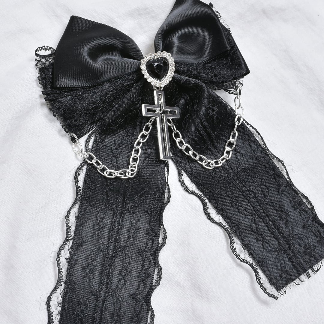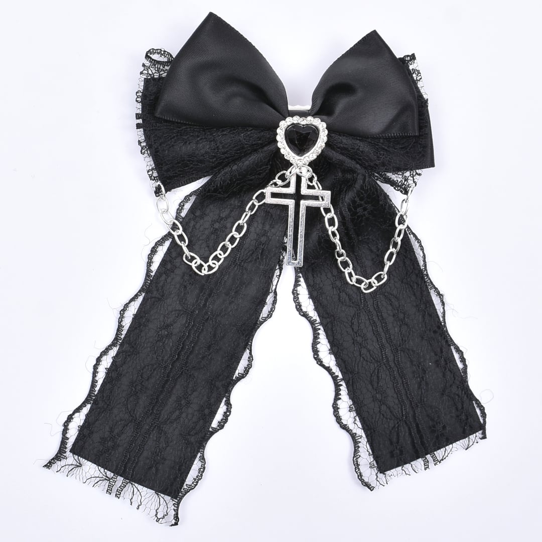 CH ハートクロスレースリボンヘアピン
