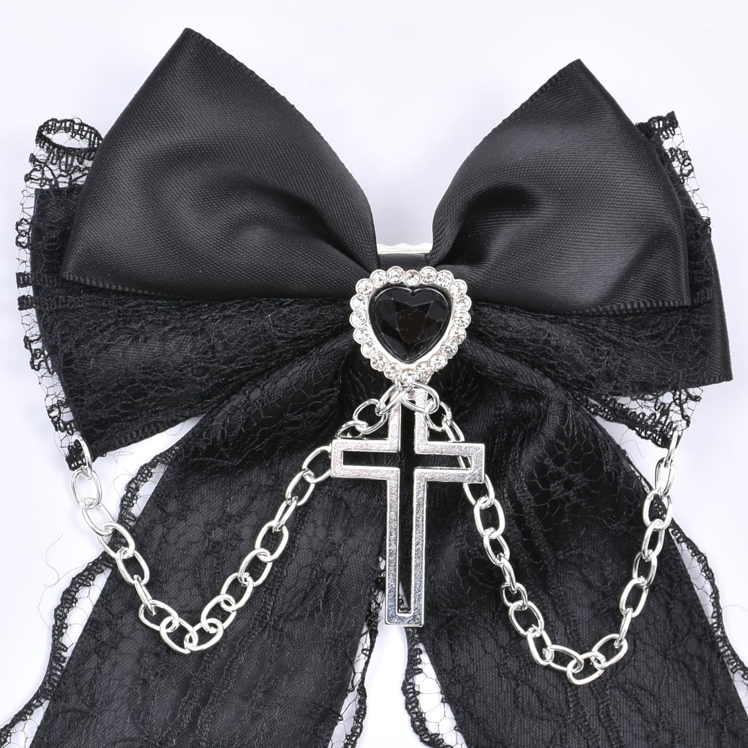 【2/26新着】チェーン×ハート×クロス リボンヘアピン