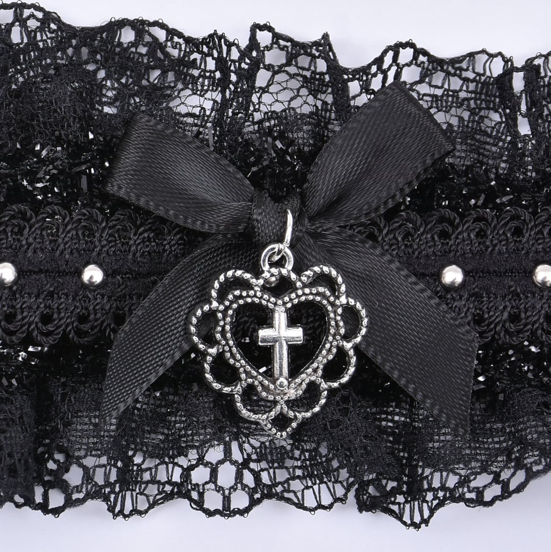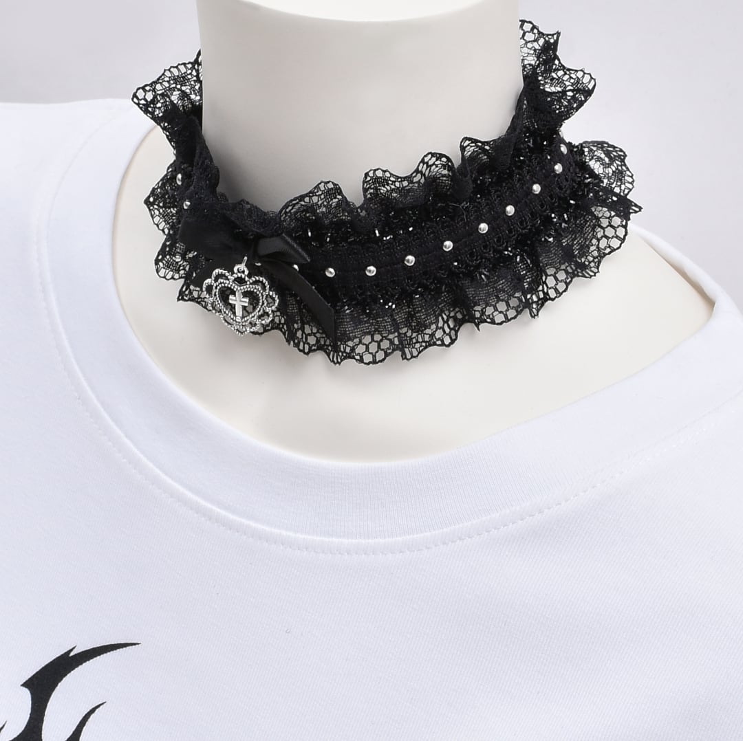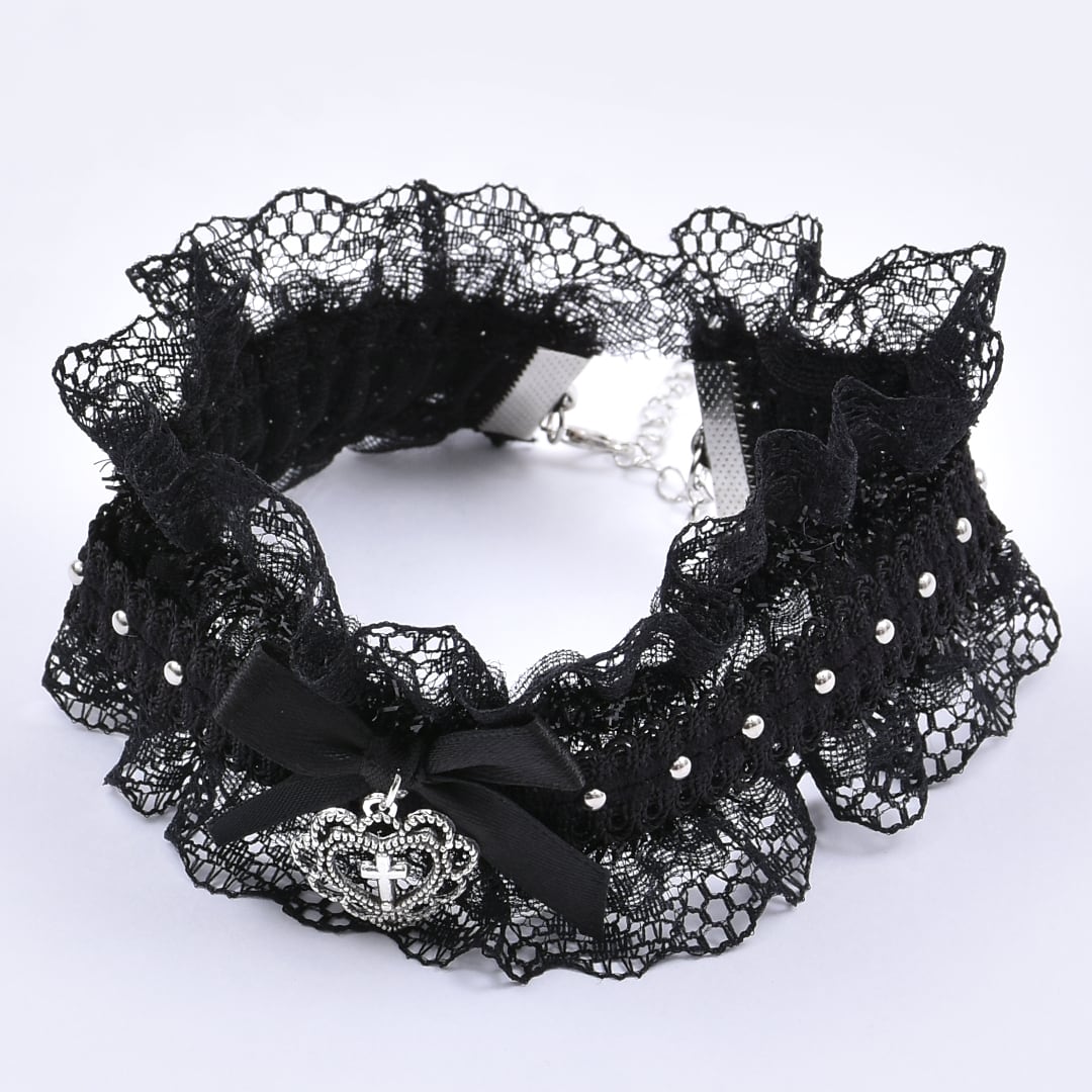 フリルゴシックハートリボンチョーカー