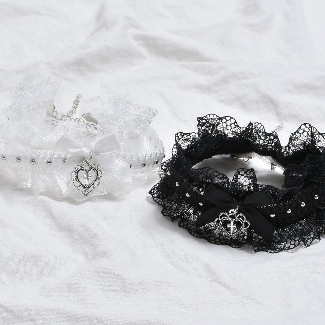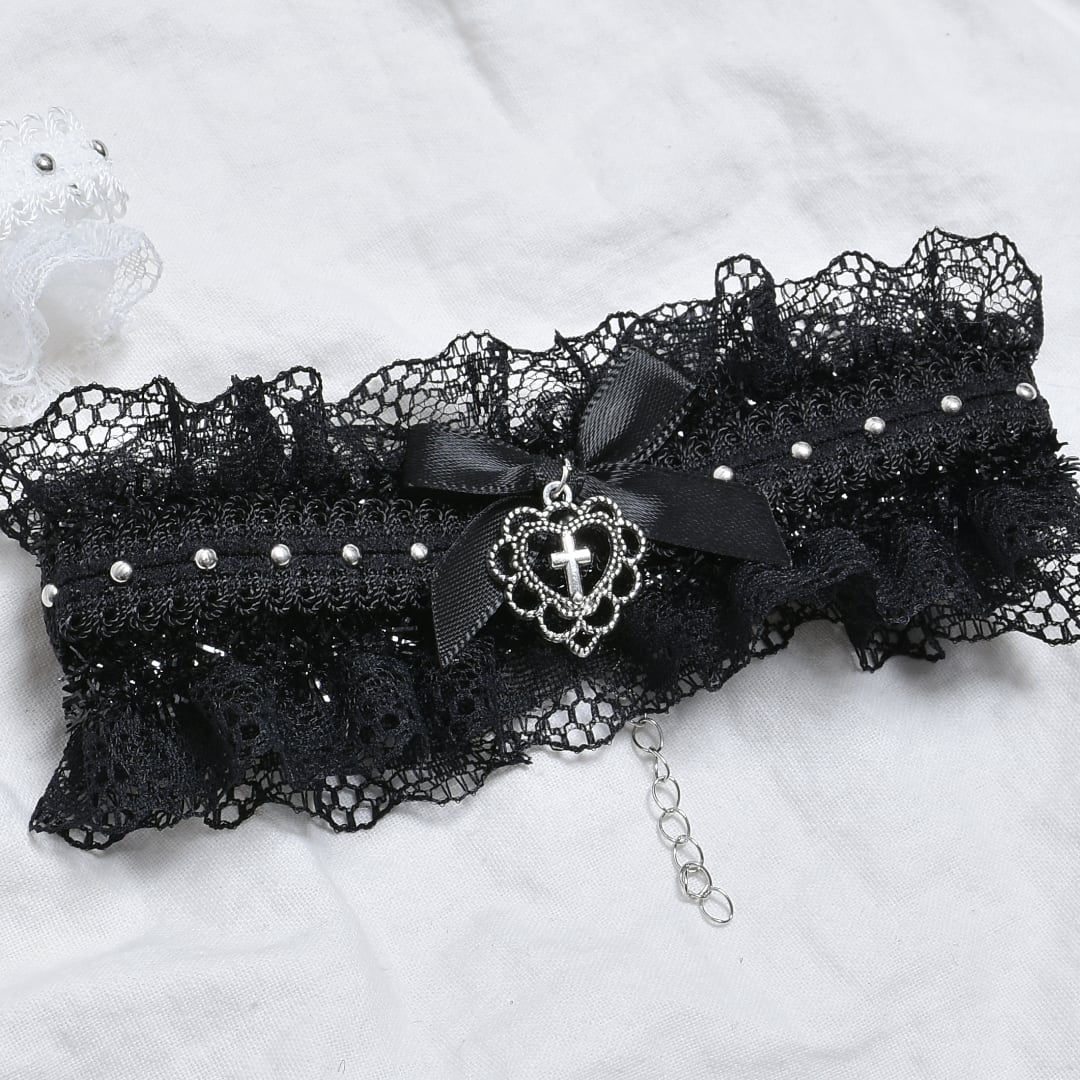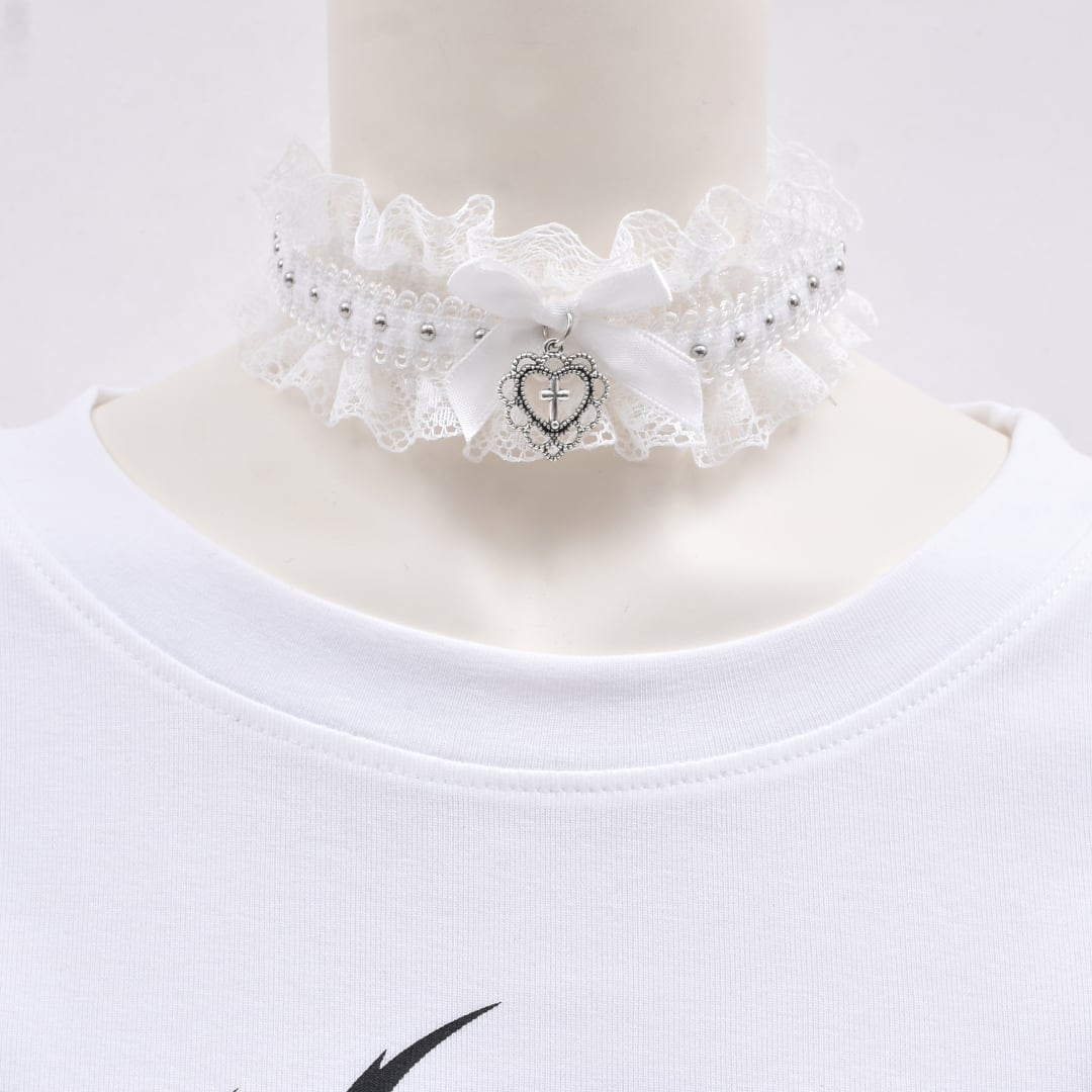 フリルゴシックハートリボンチョーカー