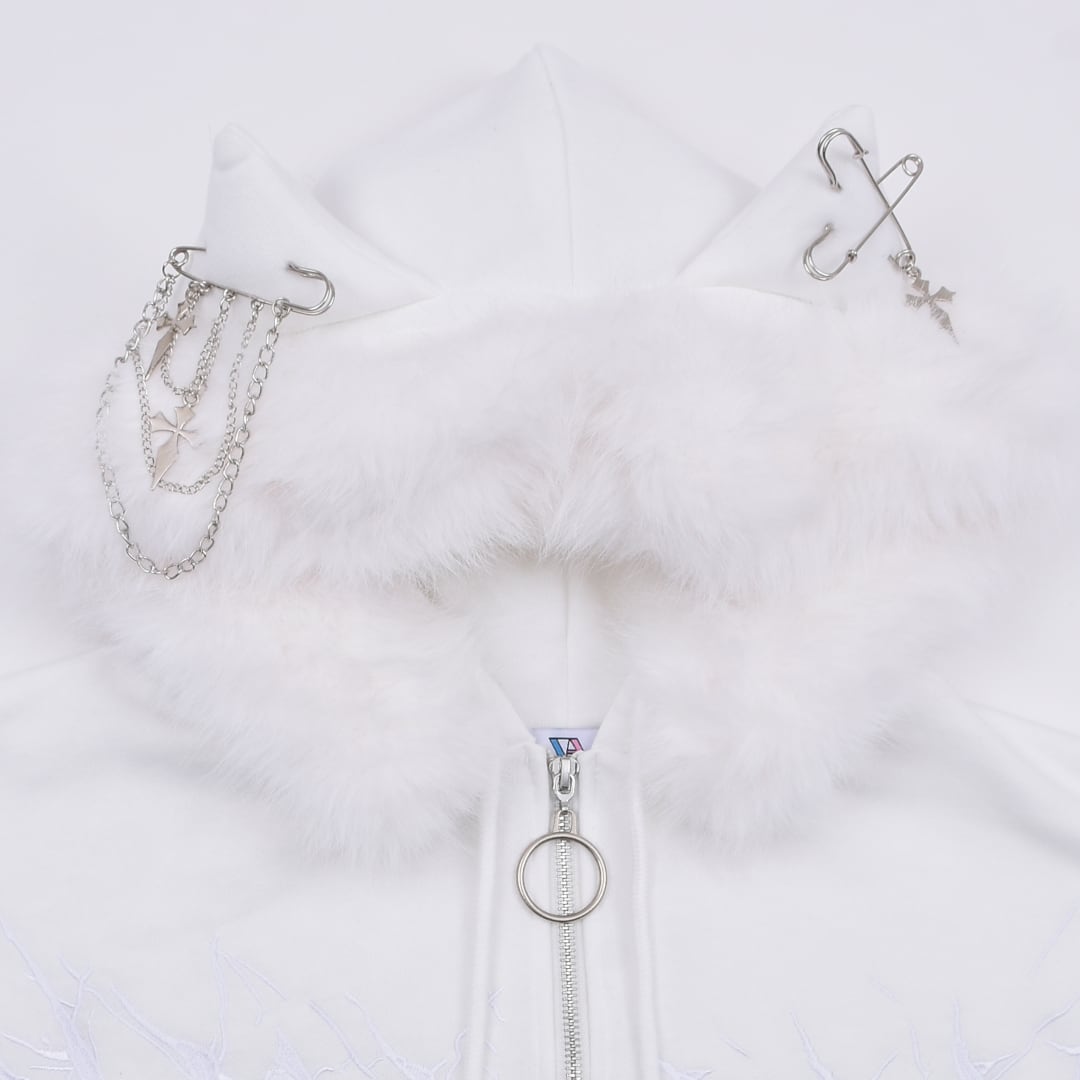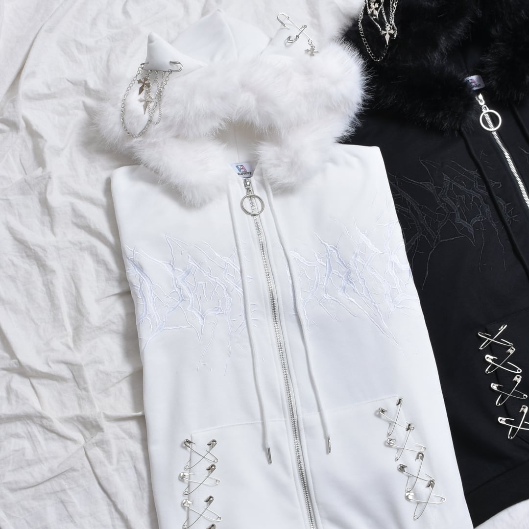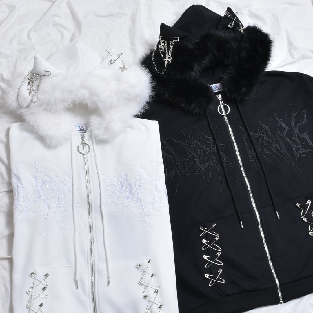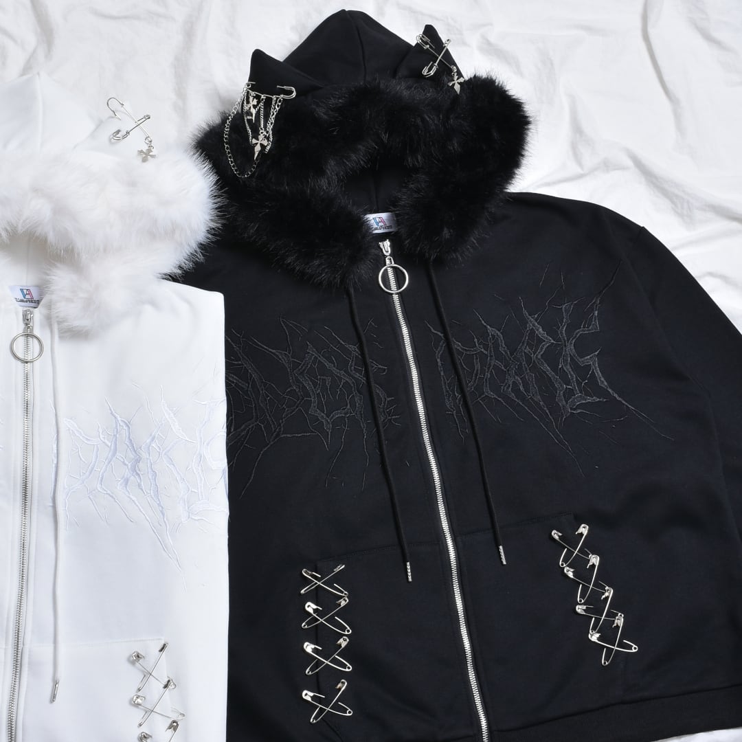 【2/20新着】サブカル刺繍★ネコ耳フードファーZIPパーカー