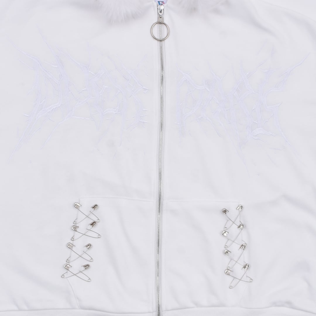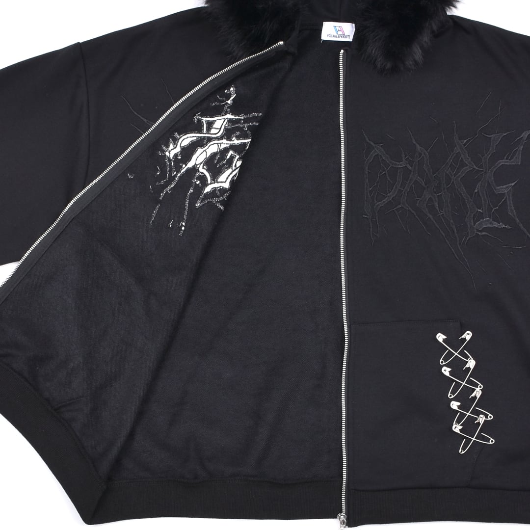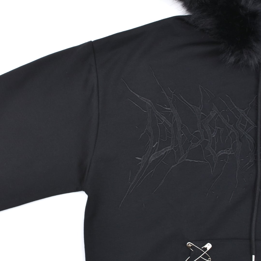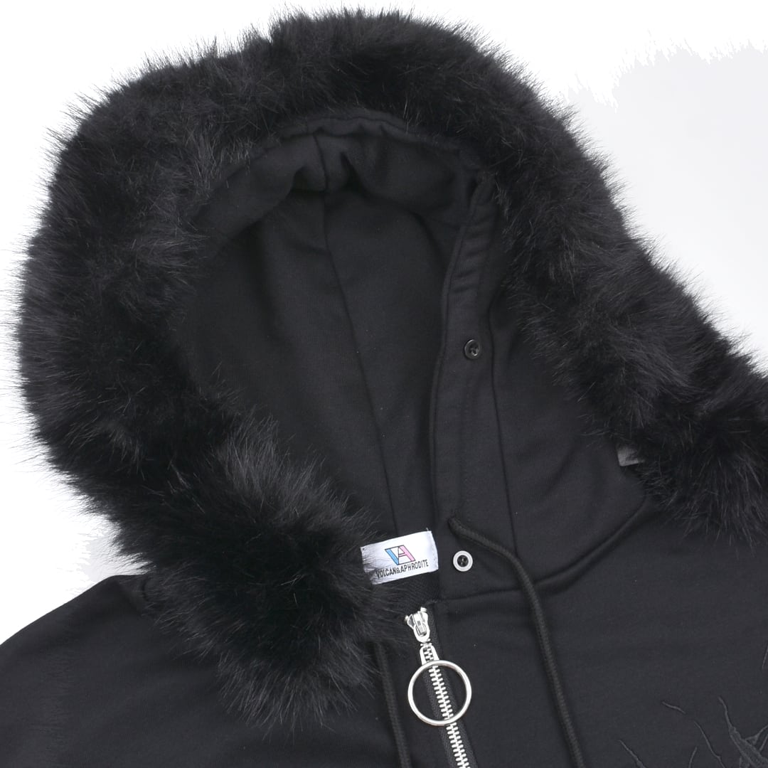 【2/20新着】サブカル刺繍★ネコ耳フードファーZIPパーカー