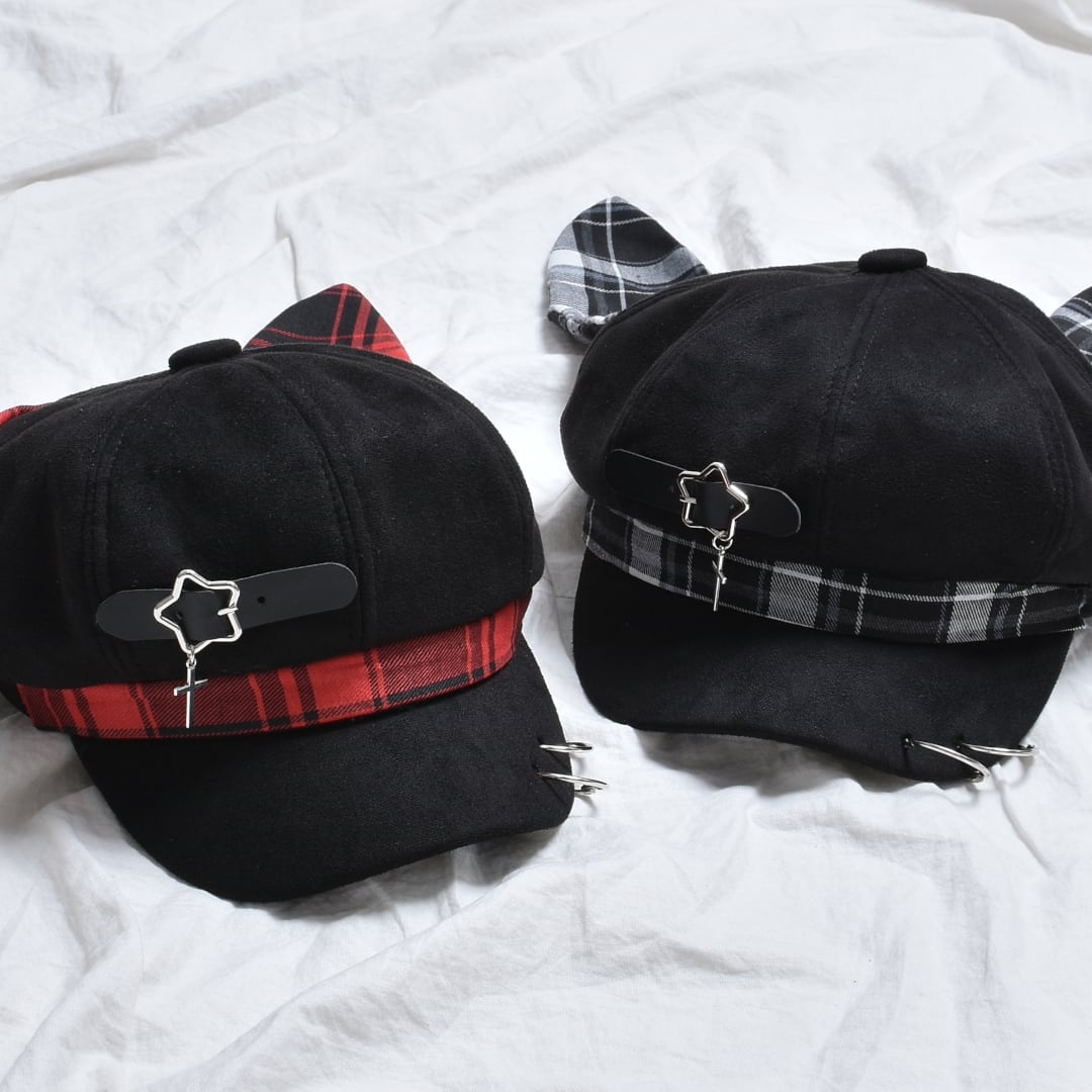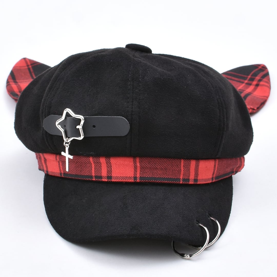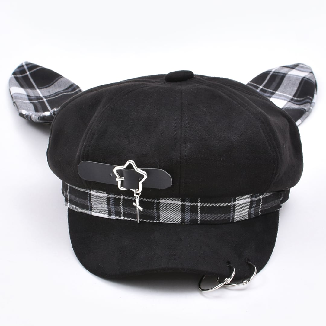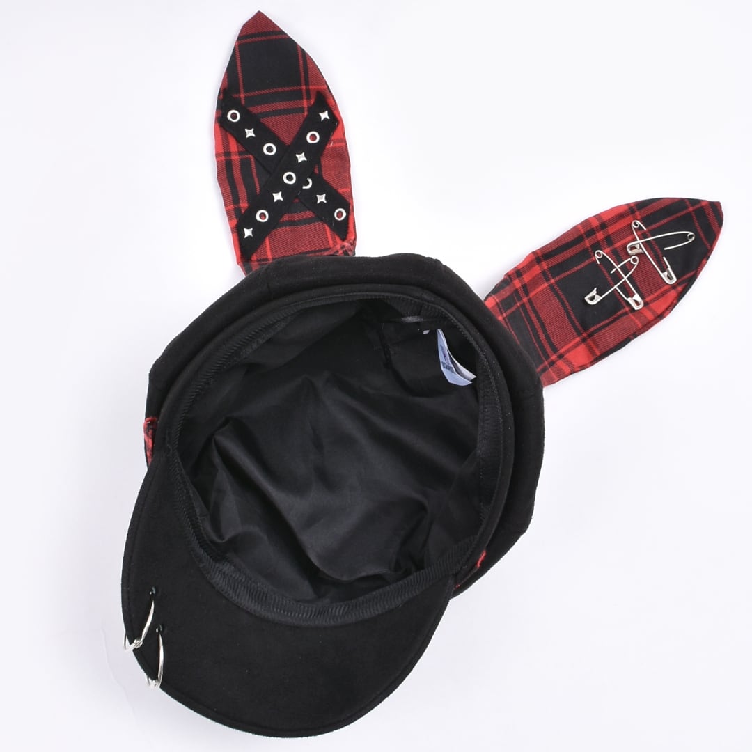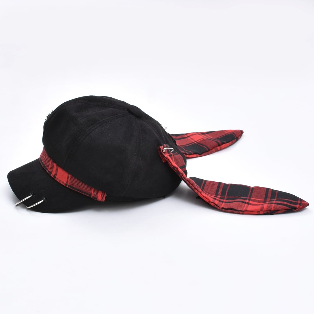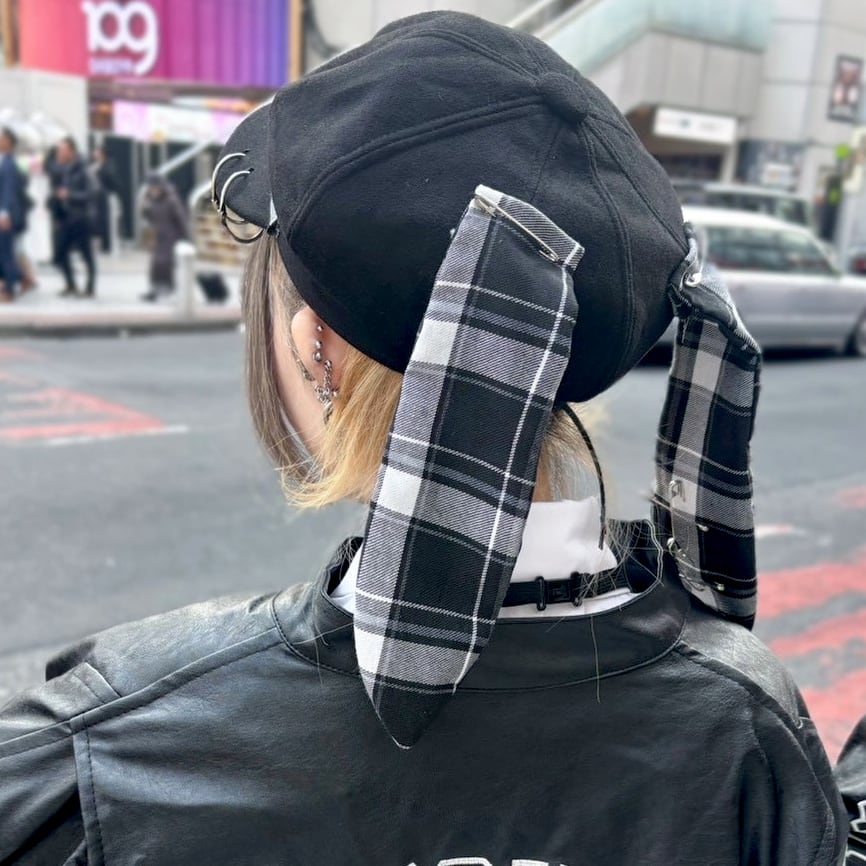チェックの切り替えが可愛いうさ耳付きのキャスケット