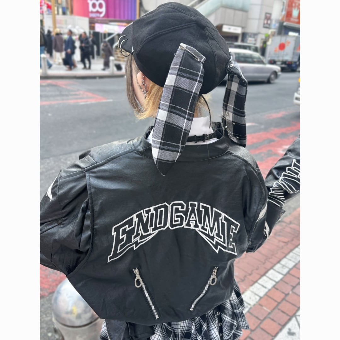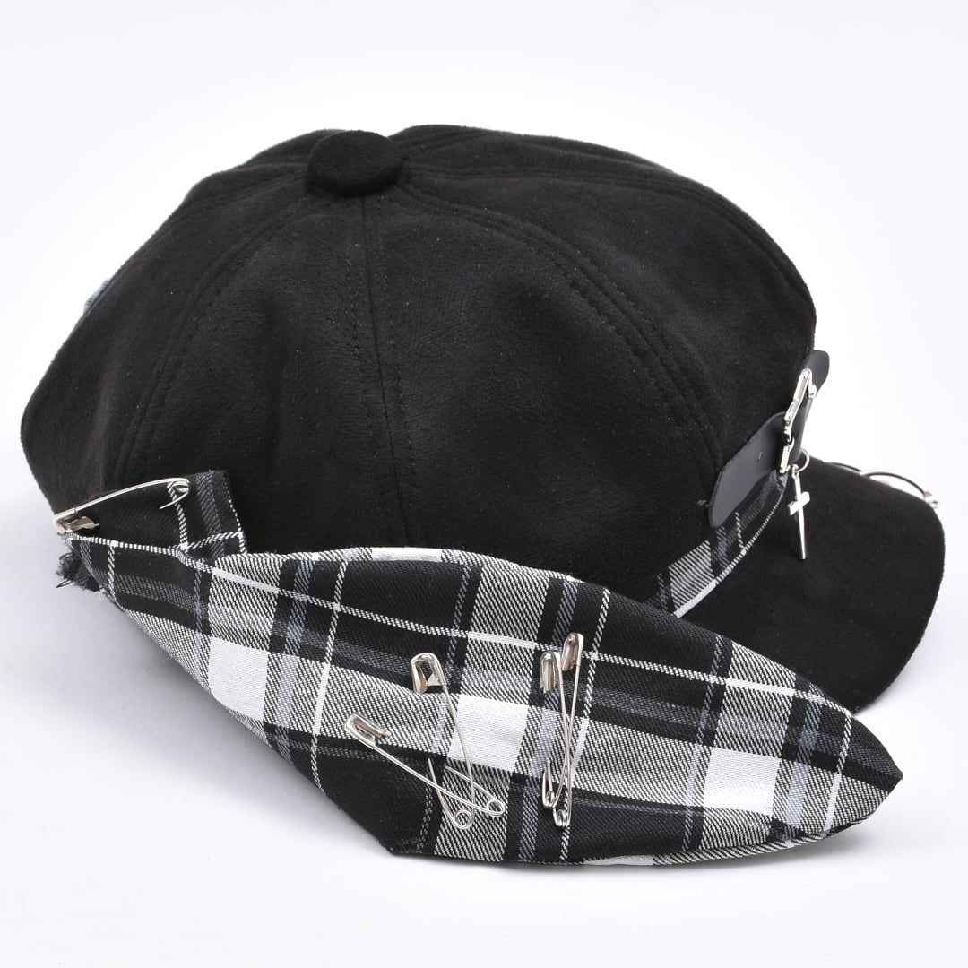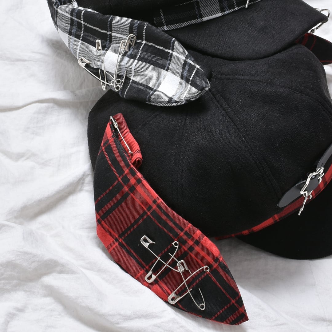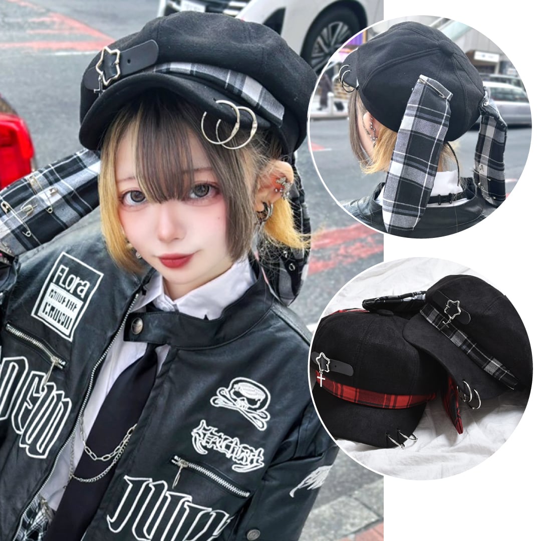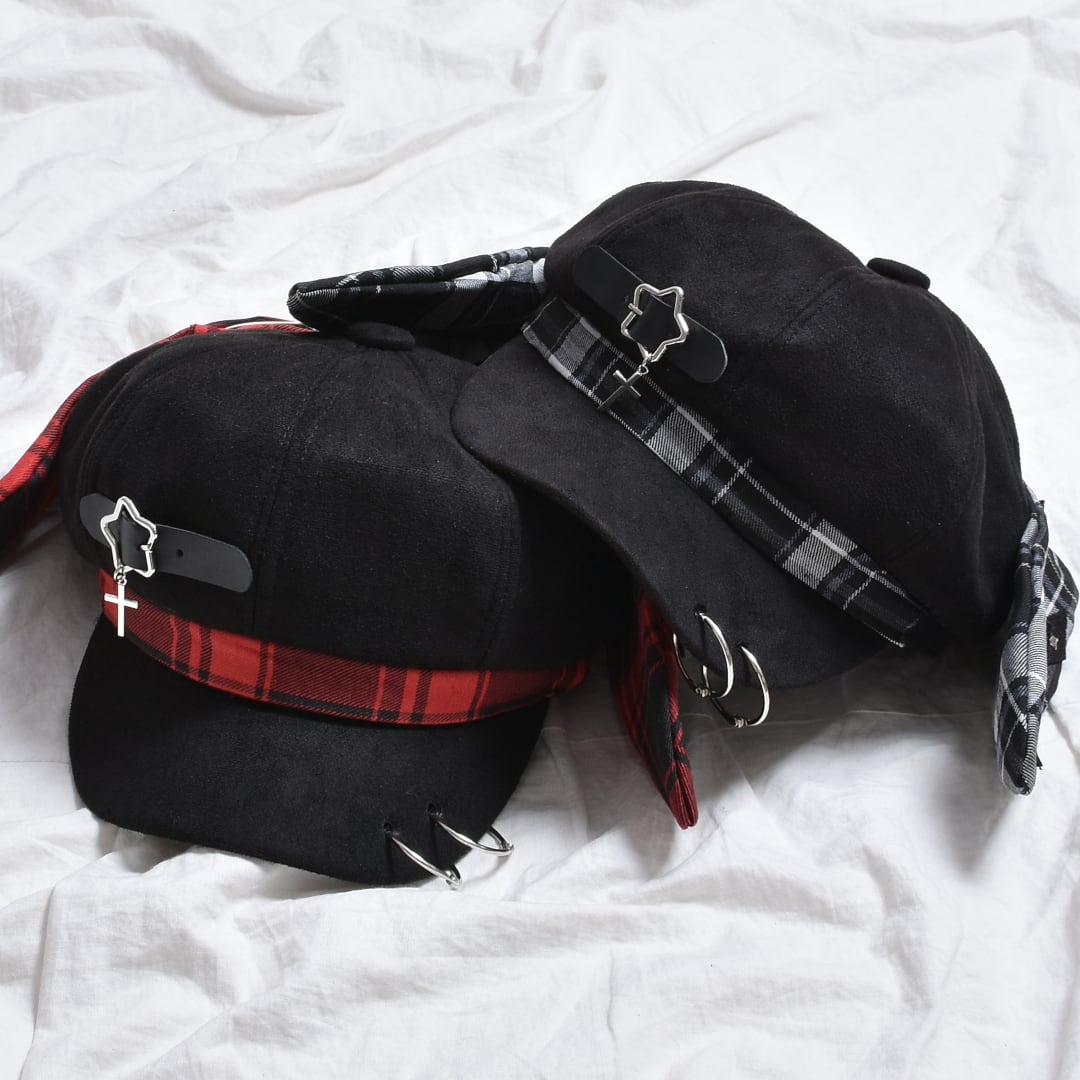 チェックの切り替えが可愛いうさ耳付きのキャスケット