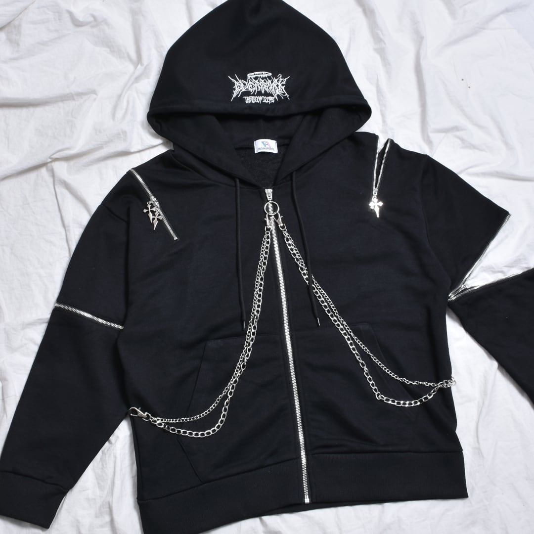 【2/19新着】サブカルフード刺繍★チェーン付きZIPパーカー