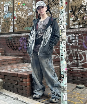 ダーティな汚れ、ペイント加工がインパクトあるデニム
