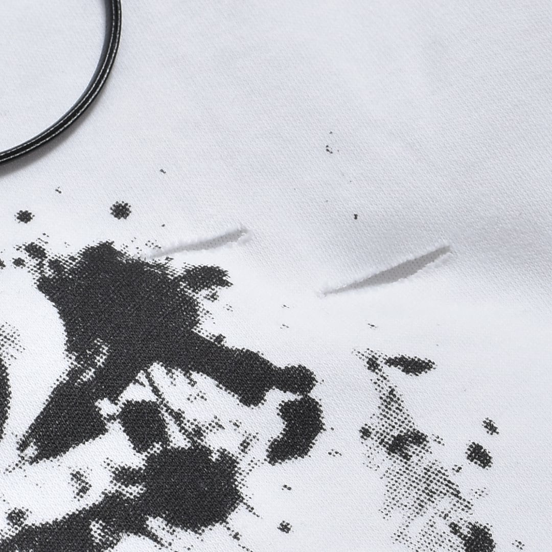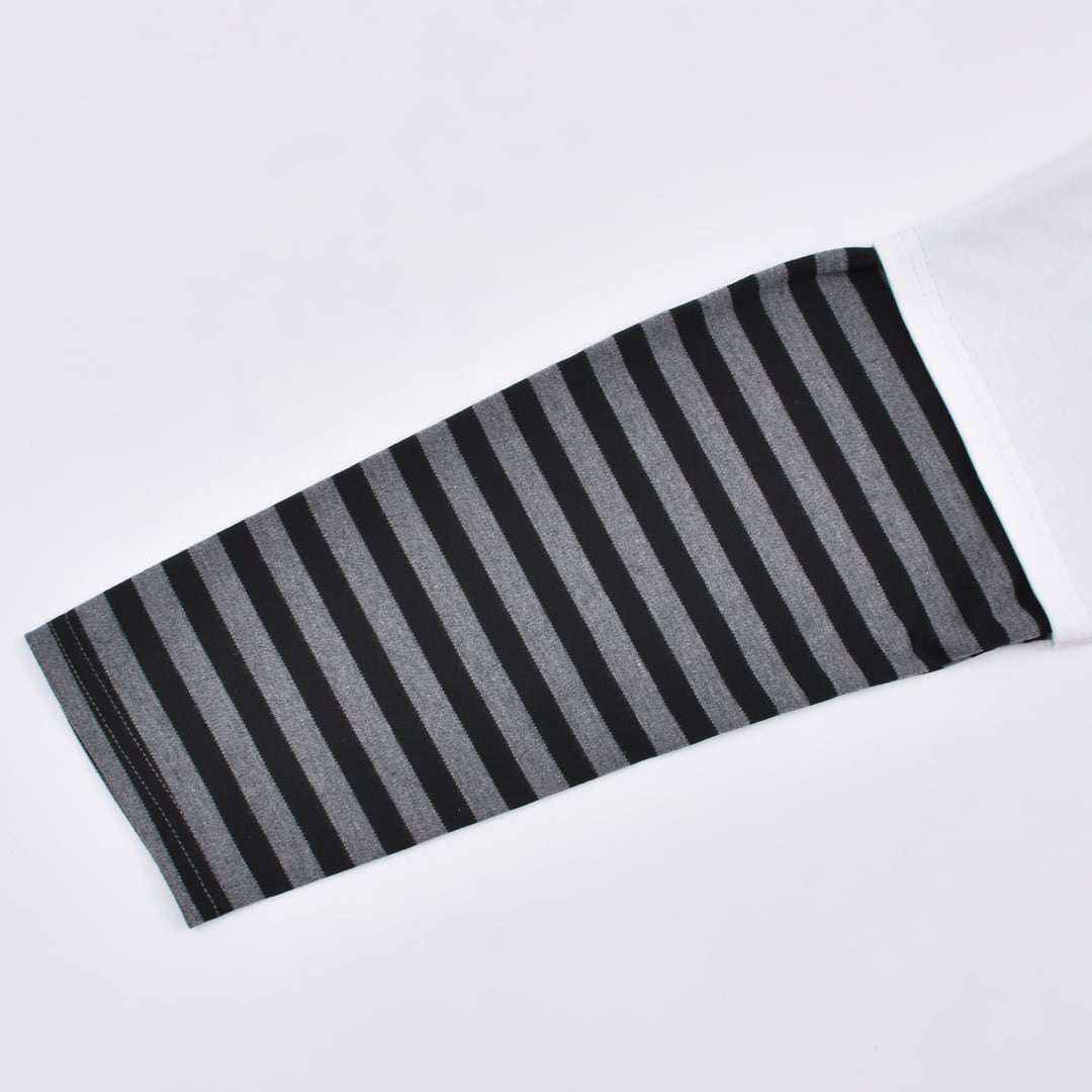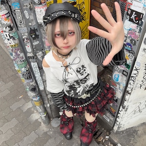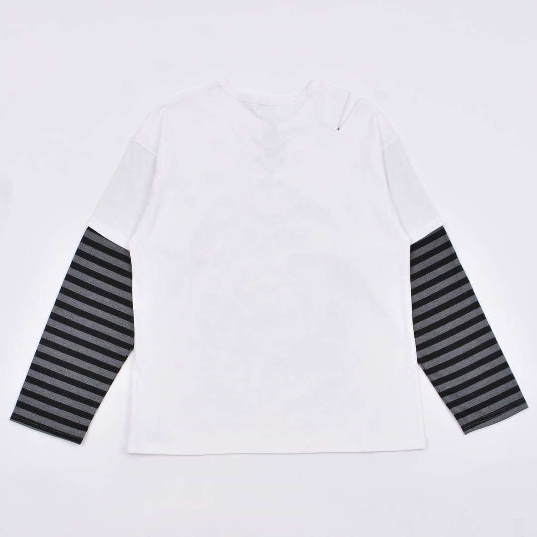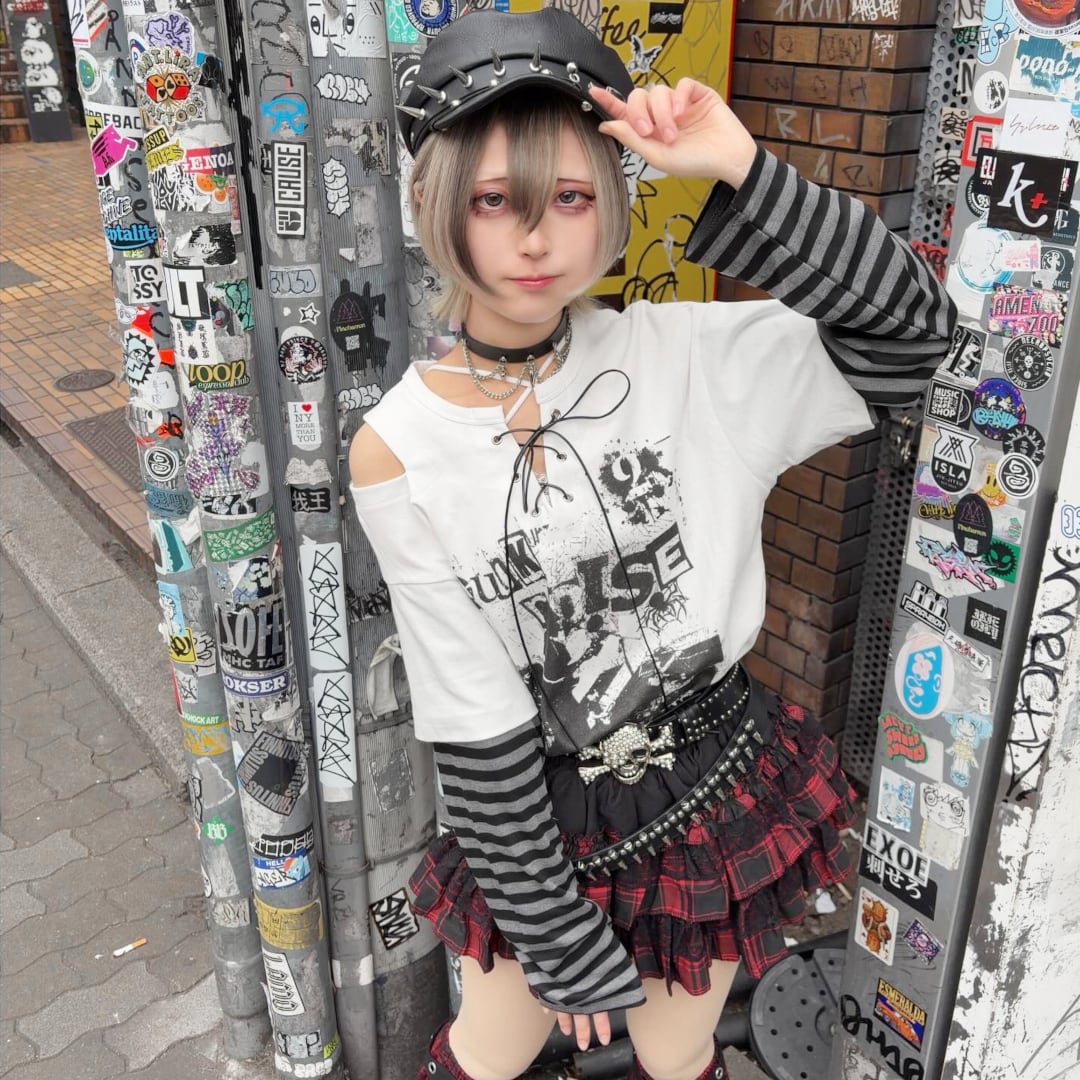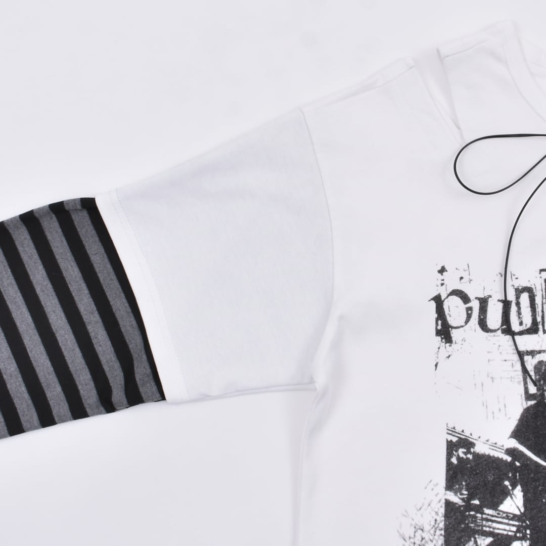 ボーダー柄の切り替えやパンクなモノクロイラストもポイント