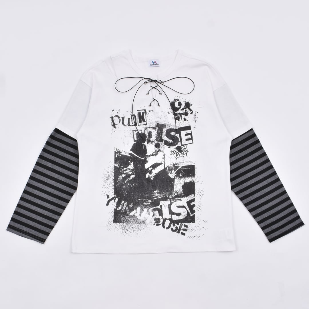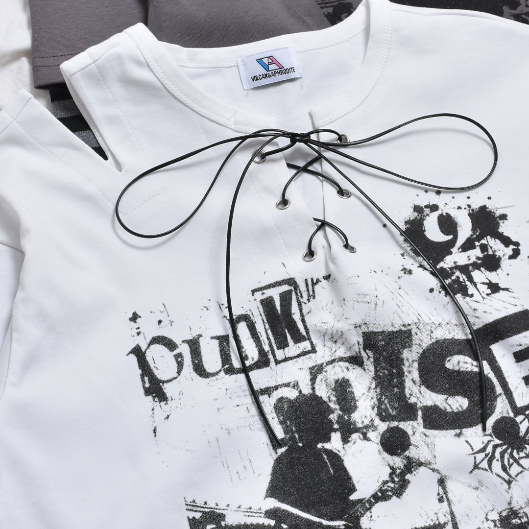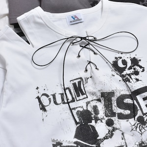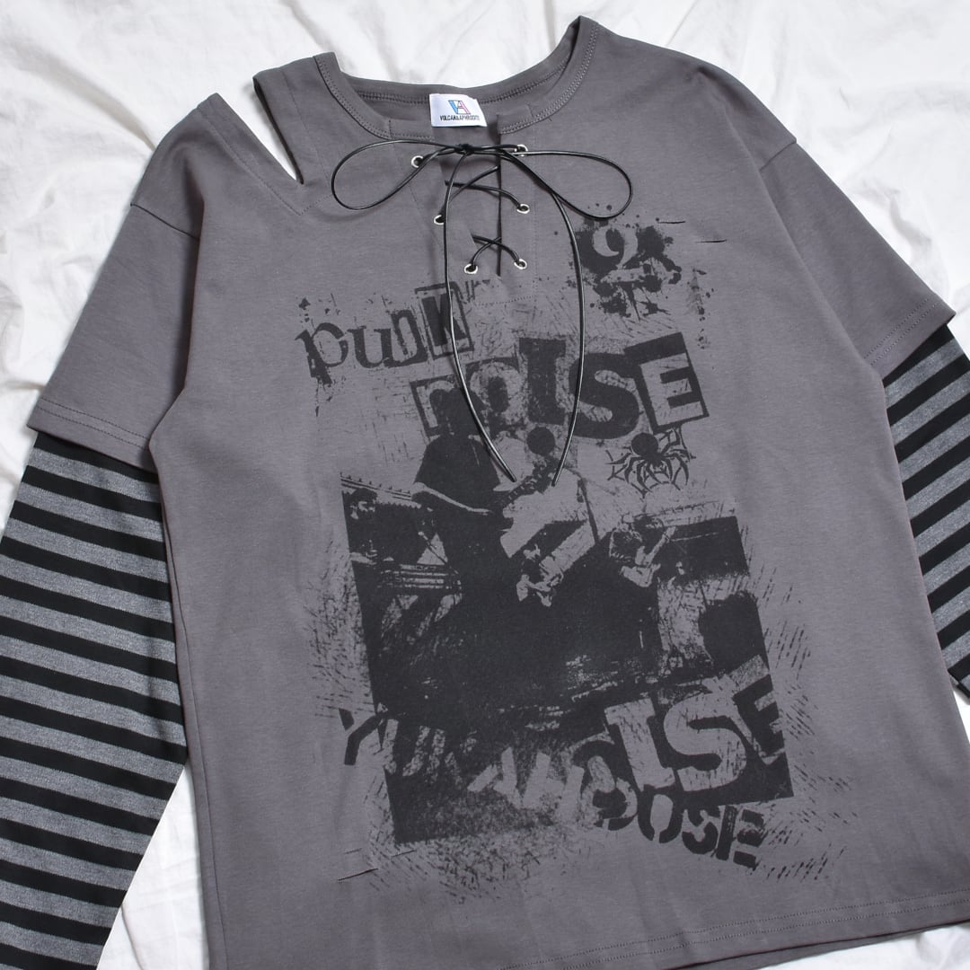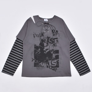 レースアップデザインや肩の切り込みデザインが個性的なロンT