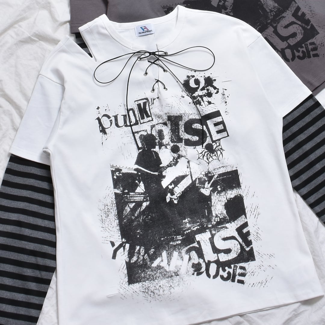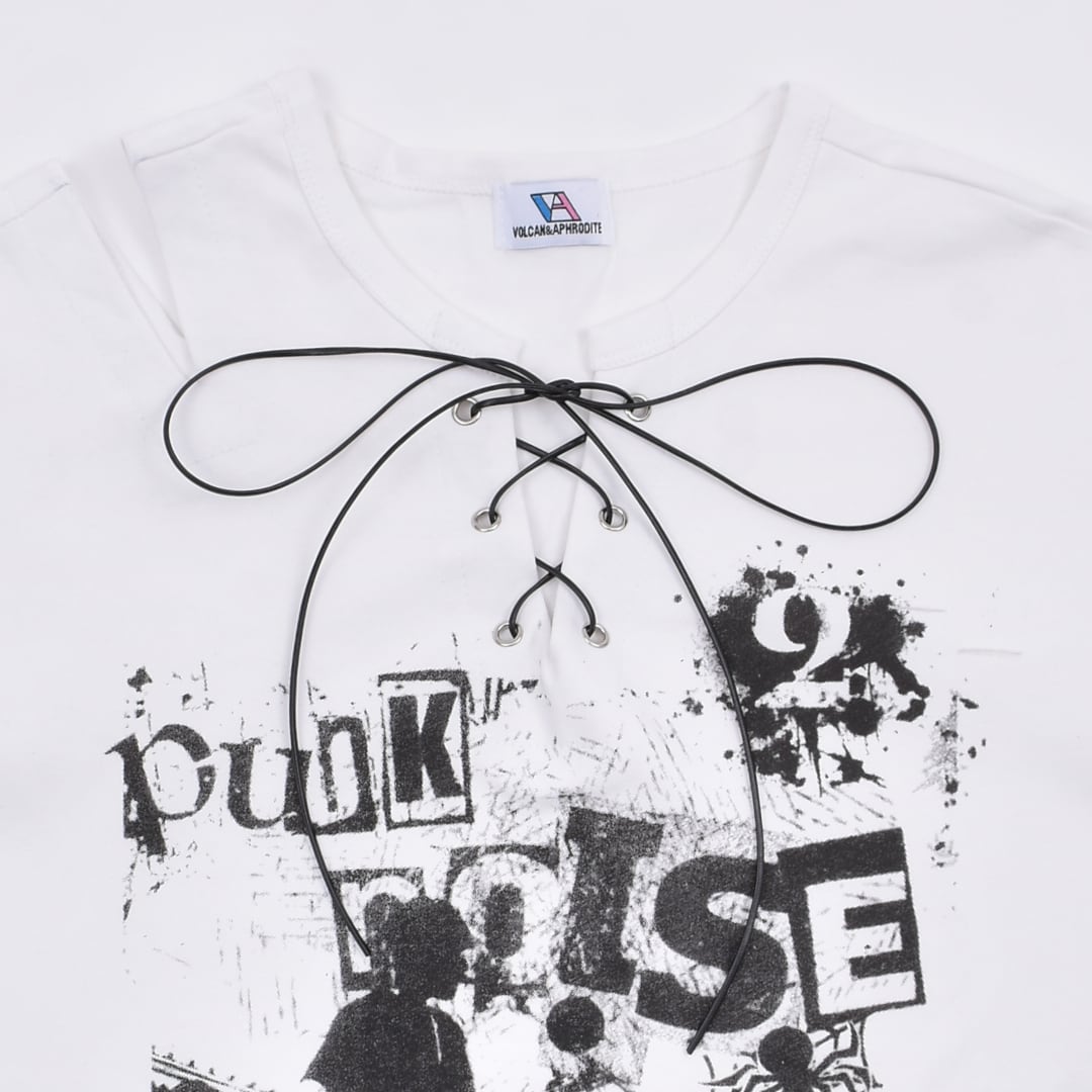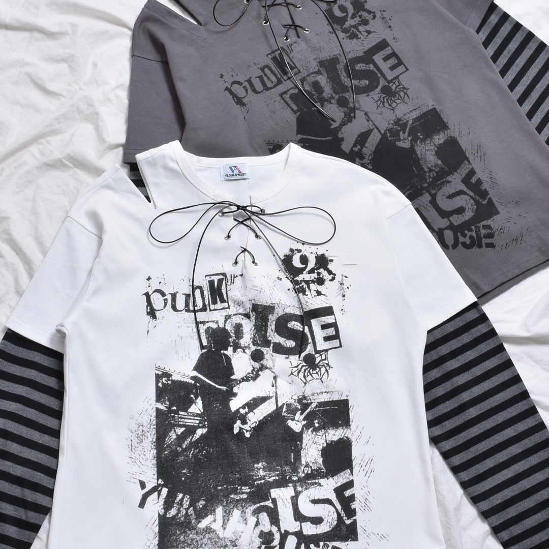 レースアップデザインや肩の切り込みデザインが個性的なロンT