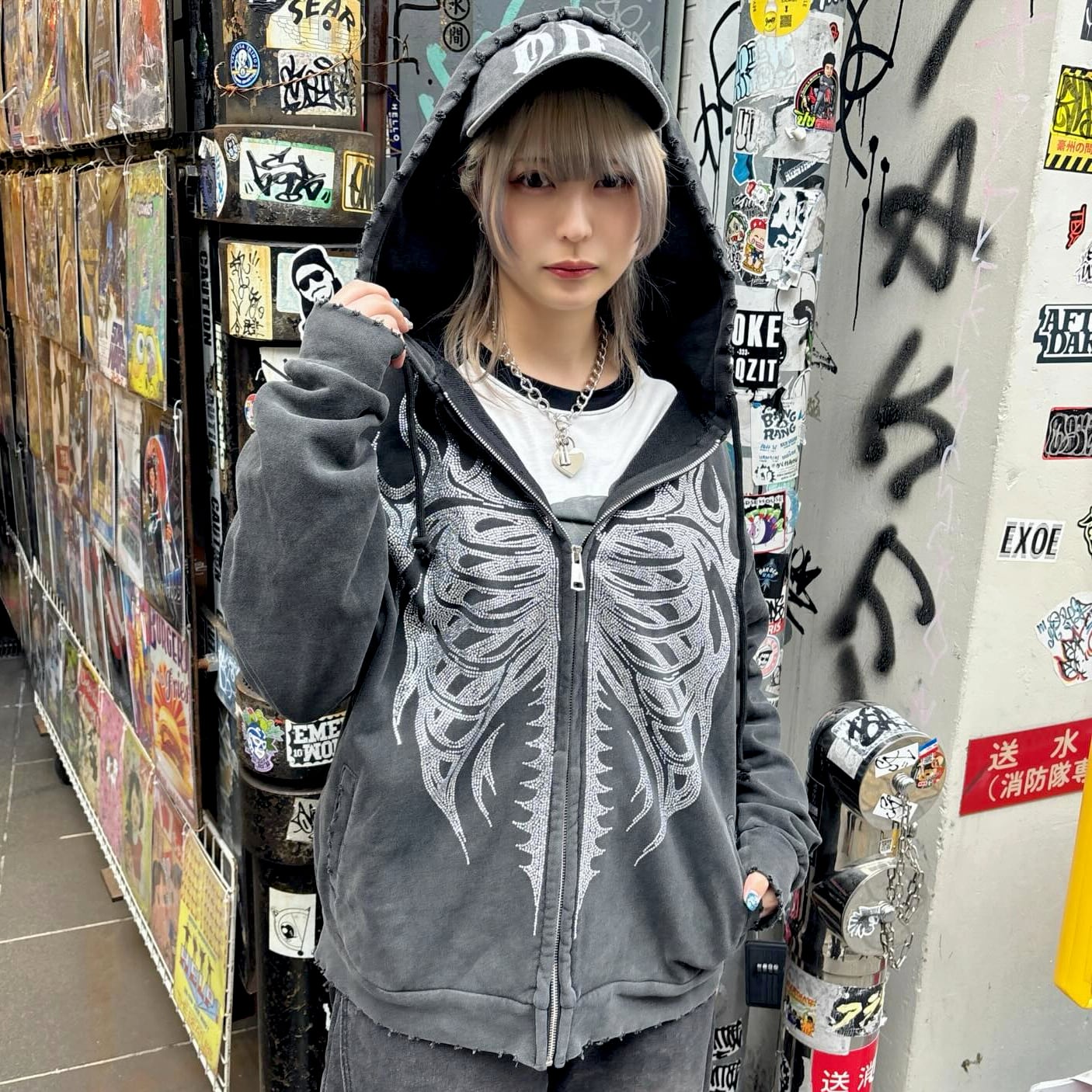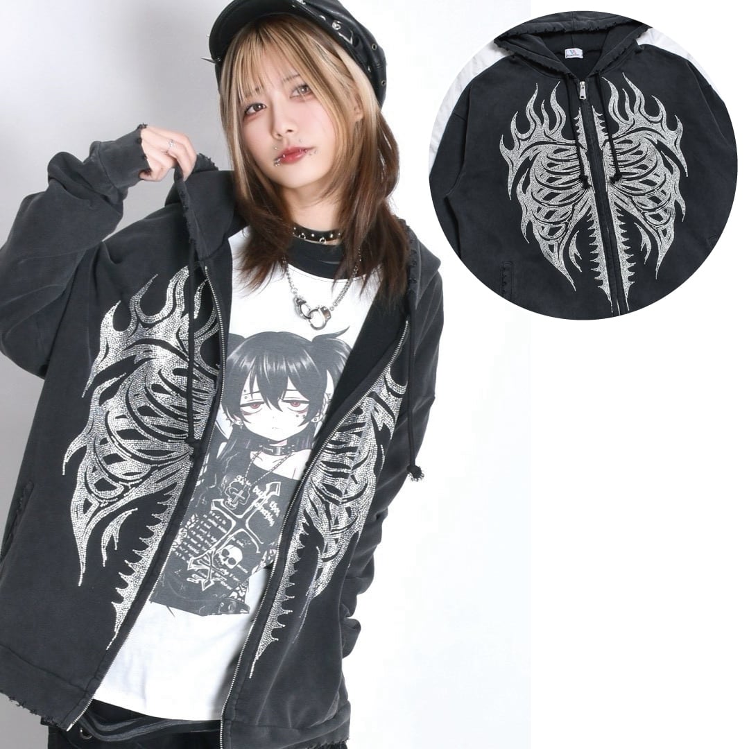 【2/19新着】ラインストーン★BONEピグメントZIPパーカー