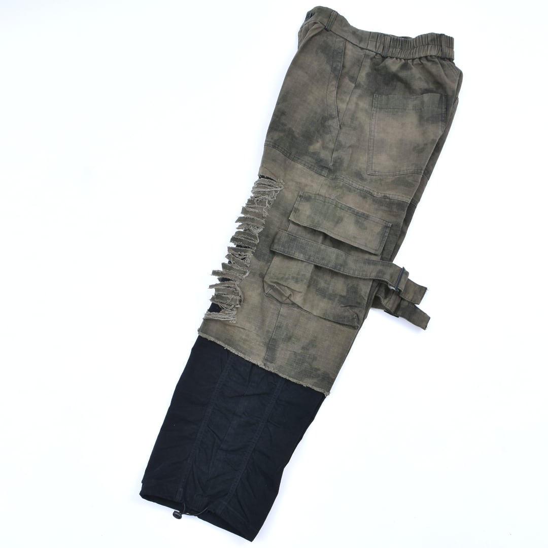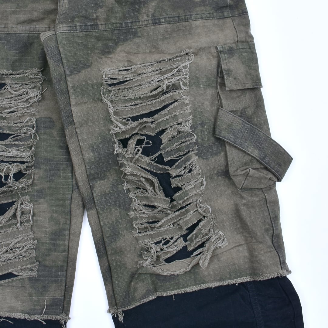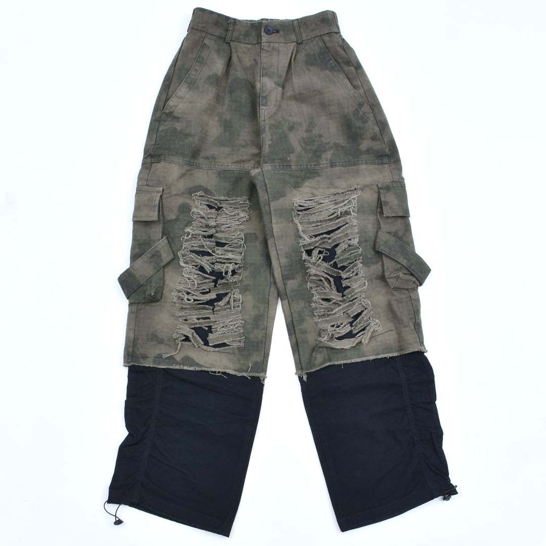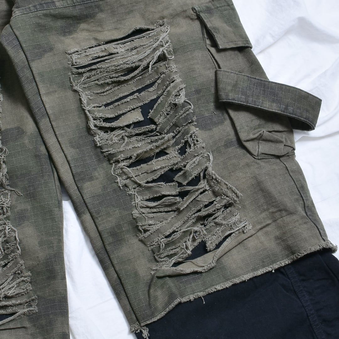 激しいダメージ加工、レイヤードしているかのような切り替えデザインがインパクトを放つデザイン