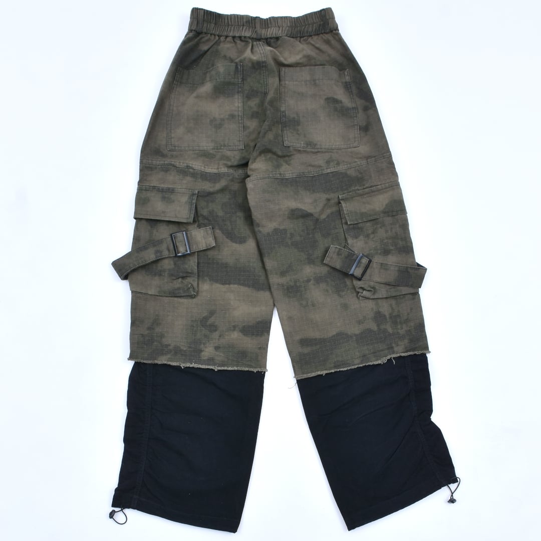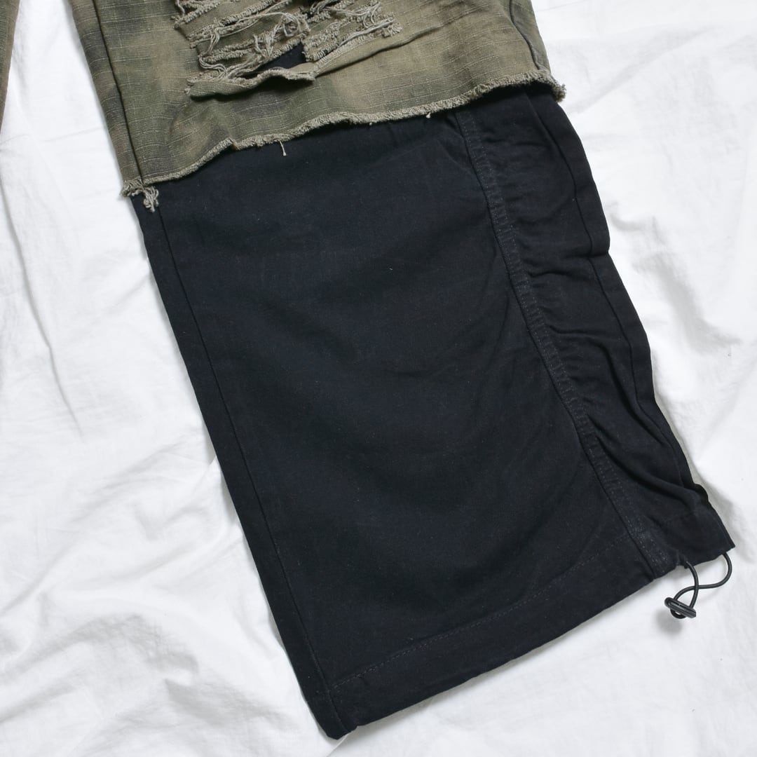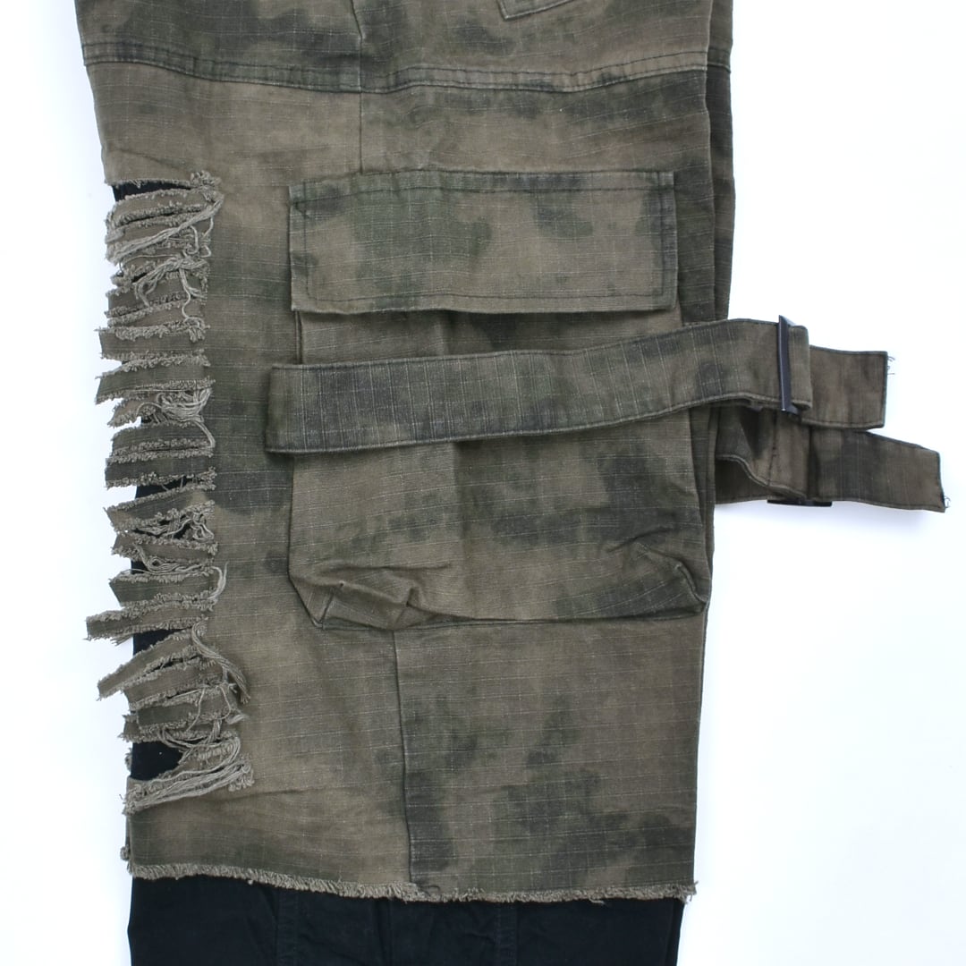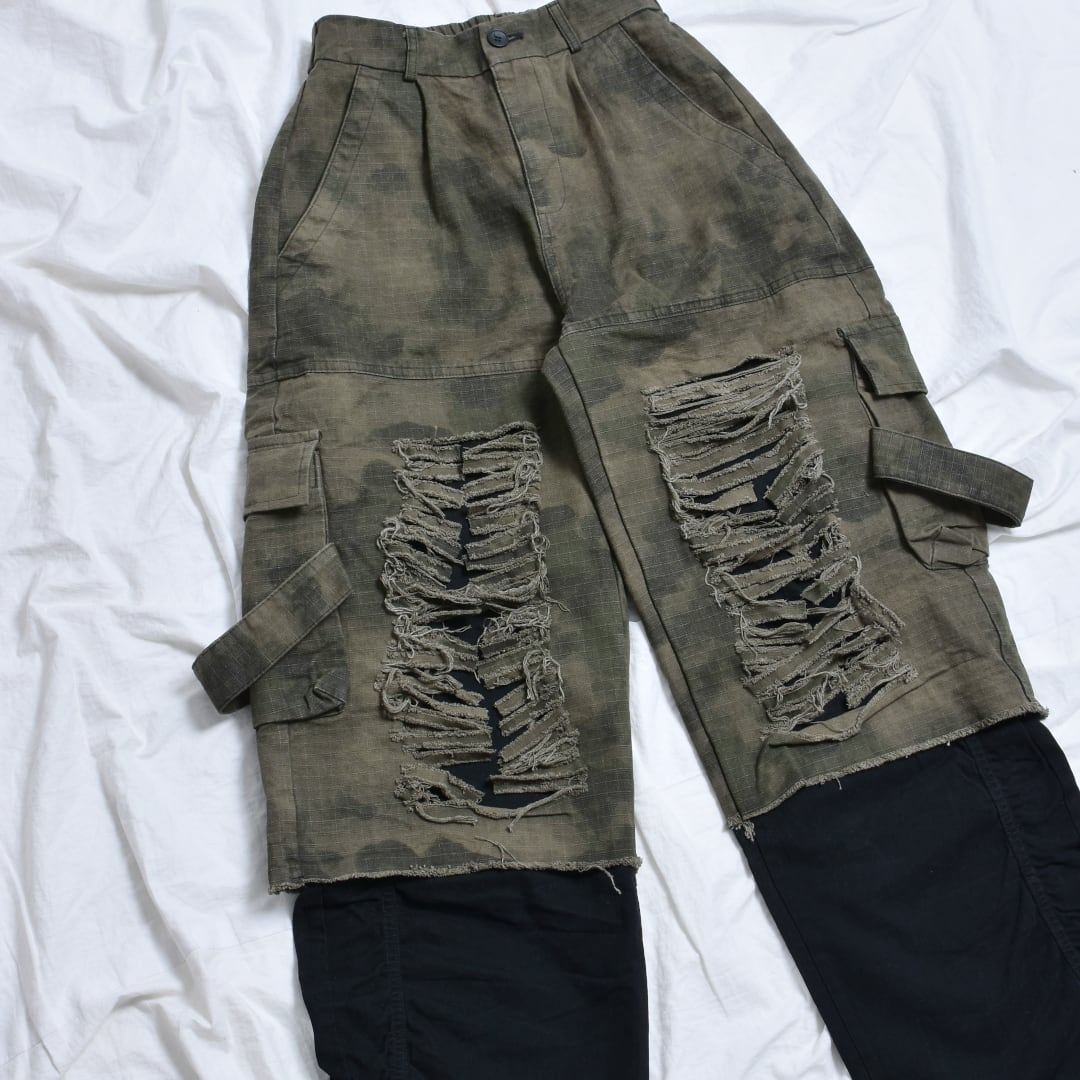 激しいダメージ加工、レイヤードしているかのような切り替えデザインがインパクトを放つデザイン
